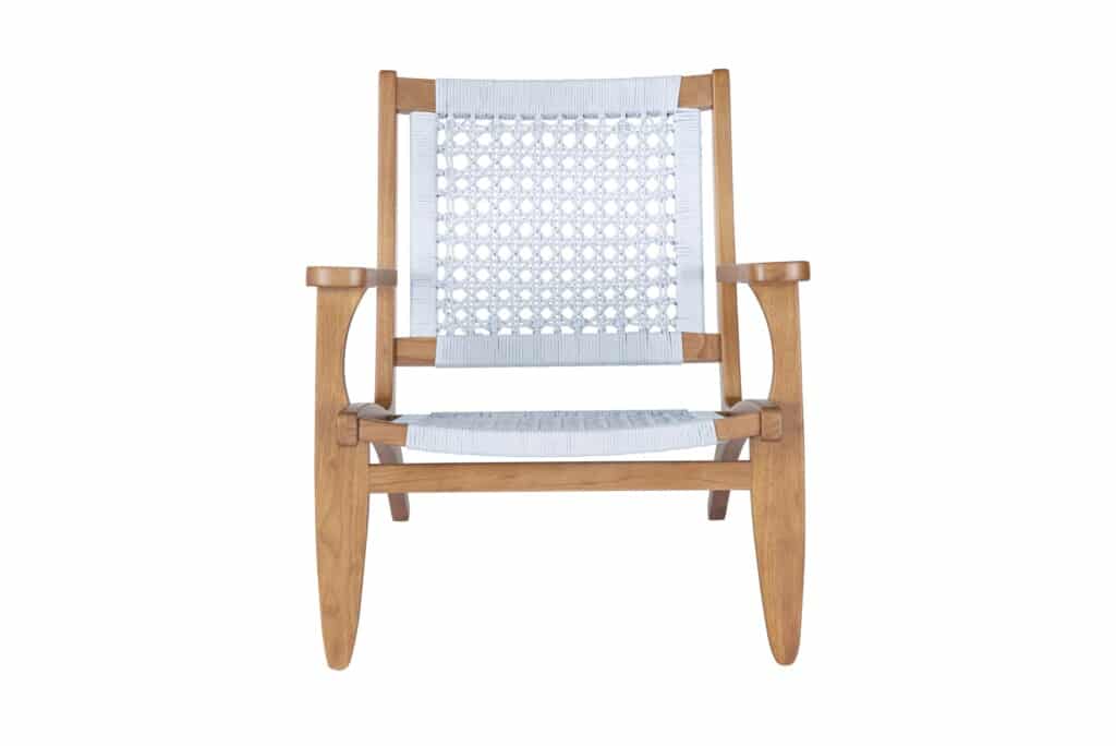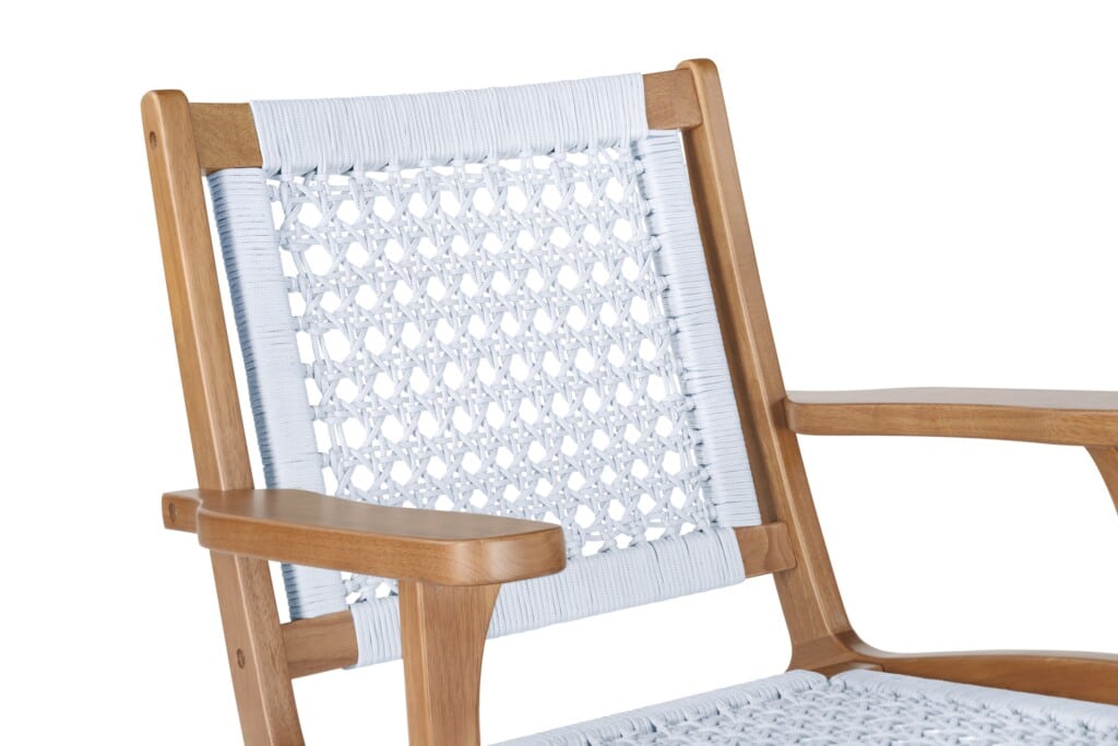 - The seat and back are made with a hexagon woven rope design to create an airy look