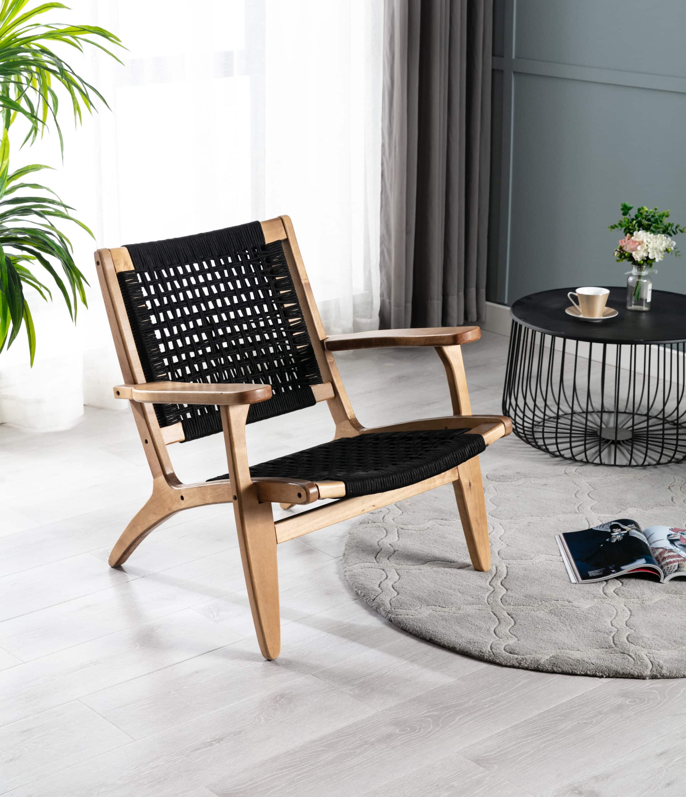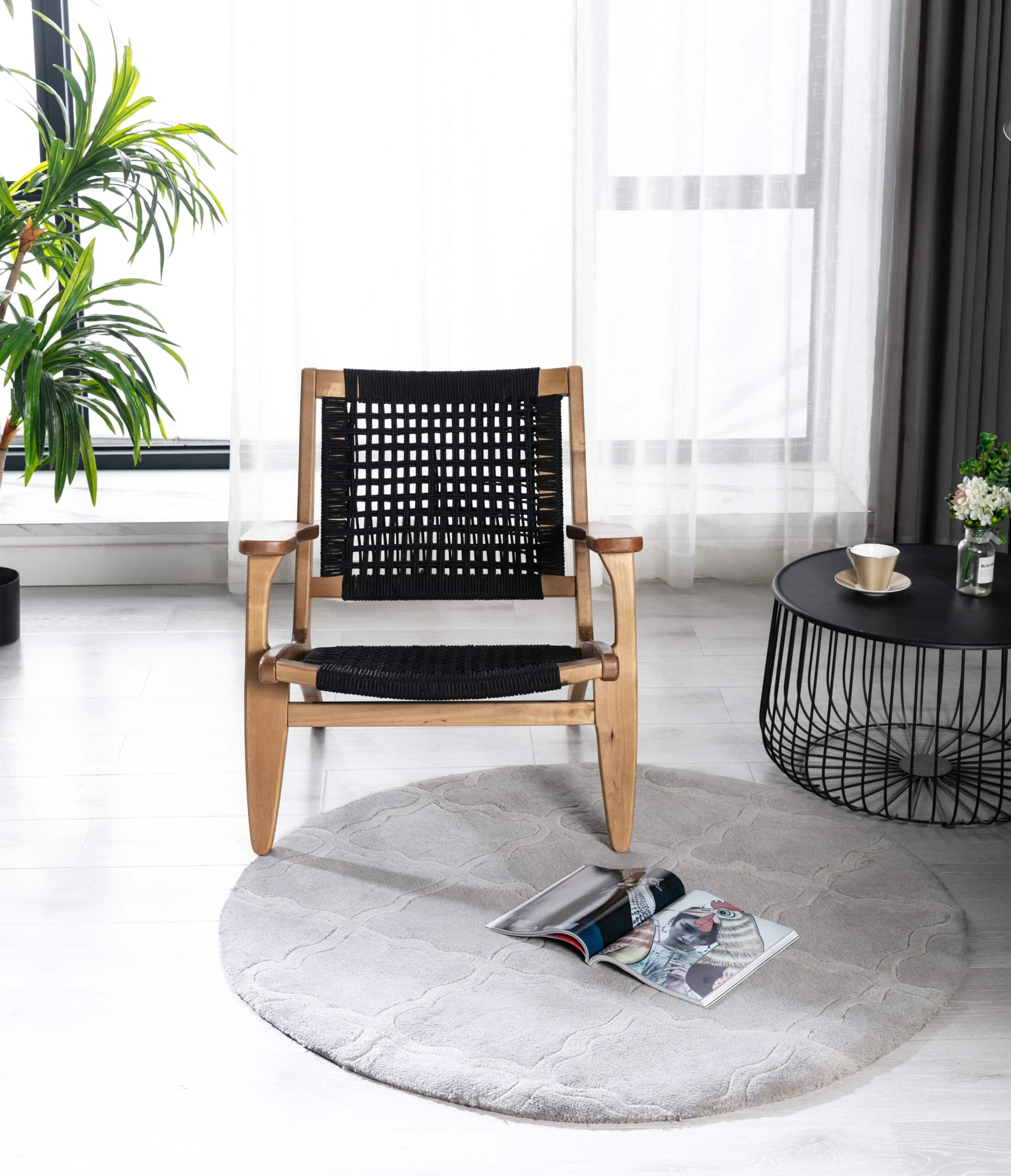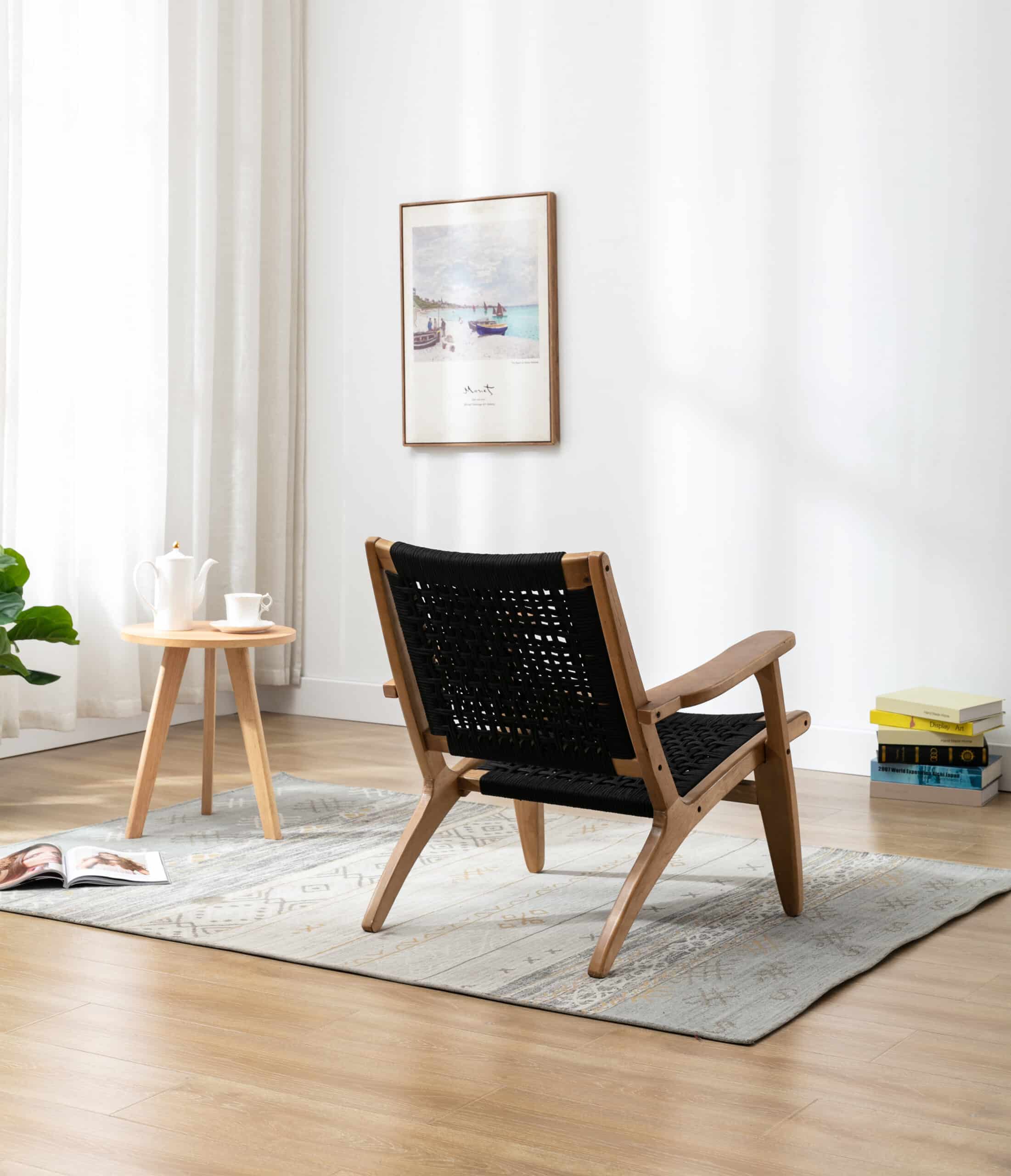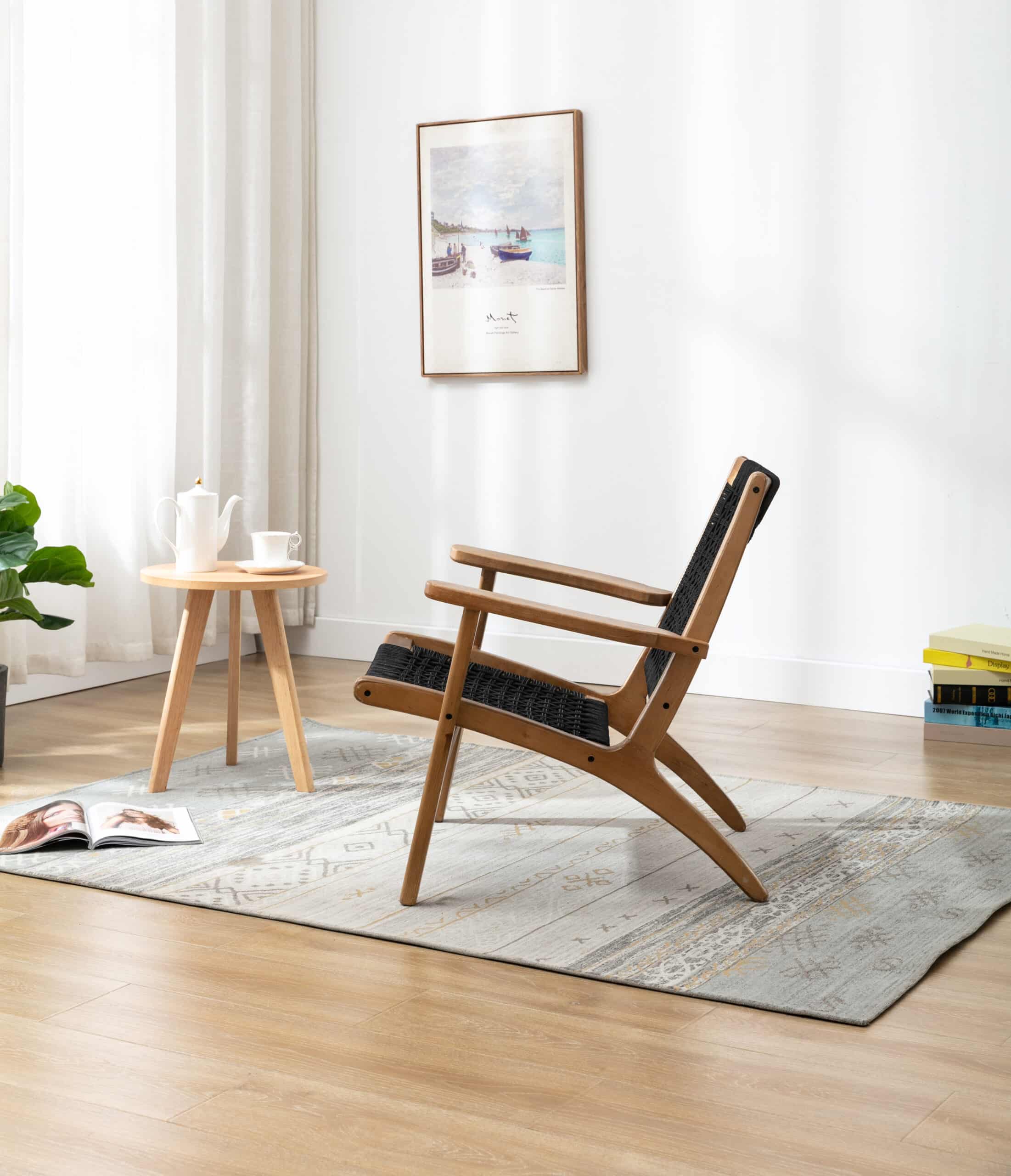 - Rope woven backrest and seat