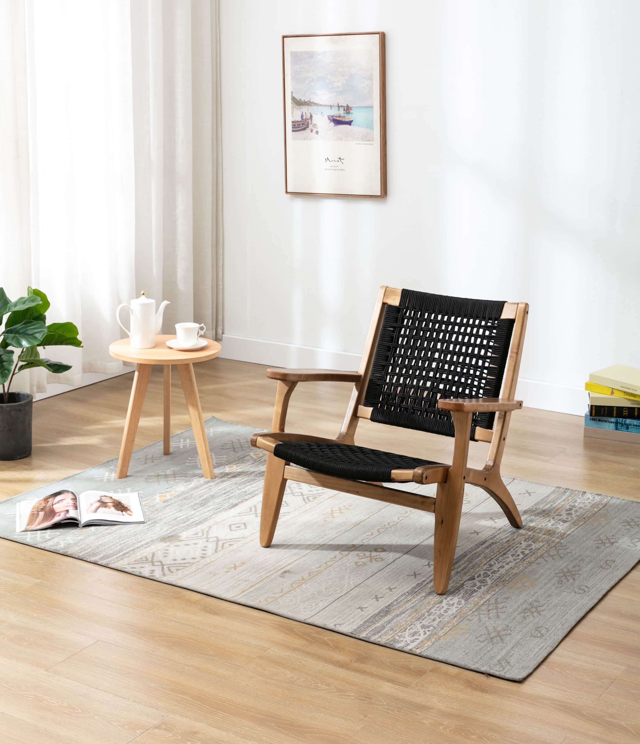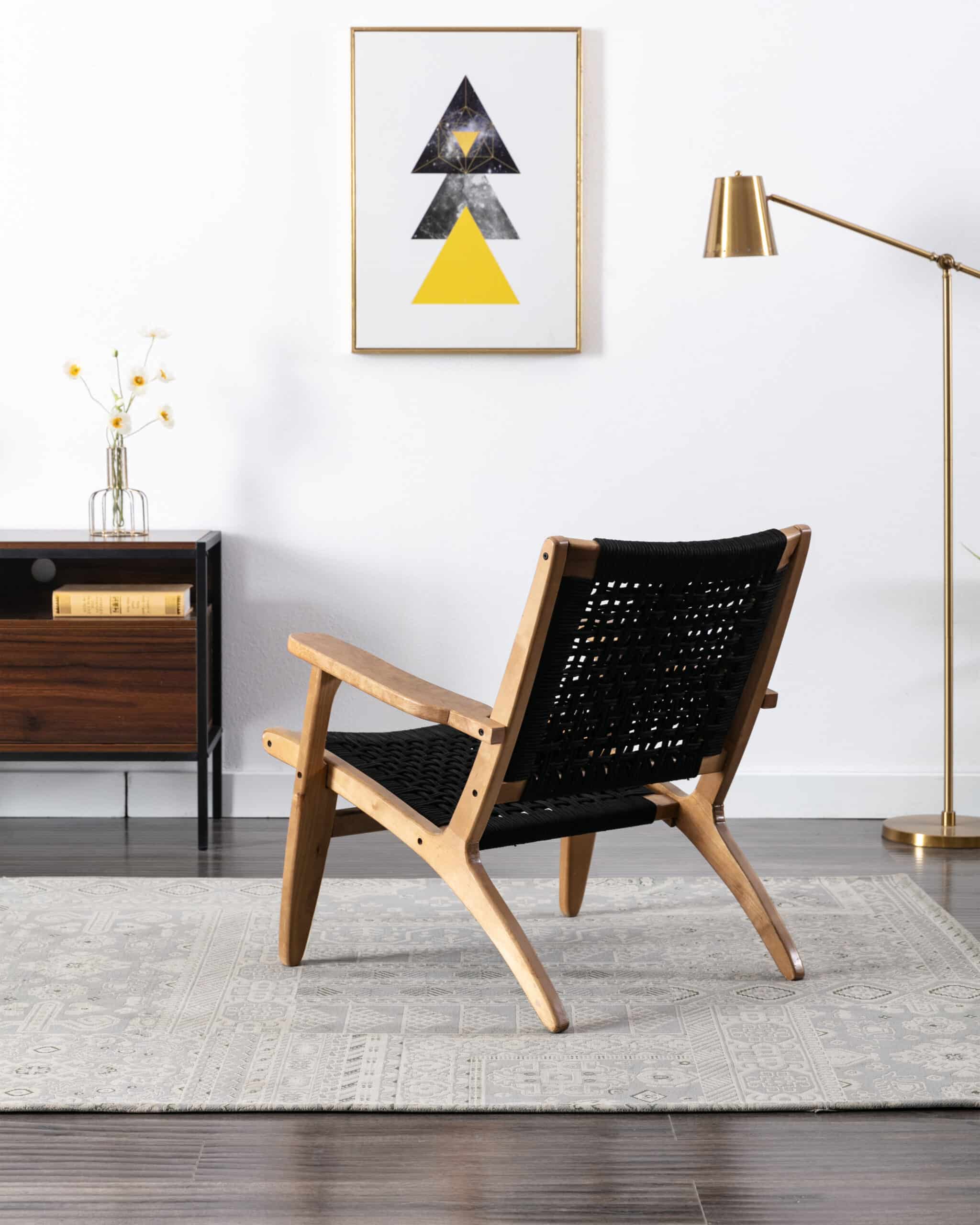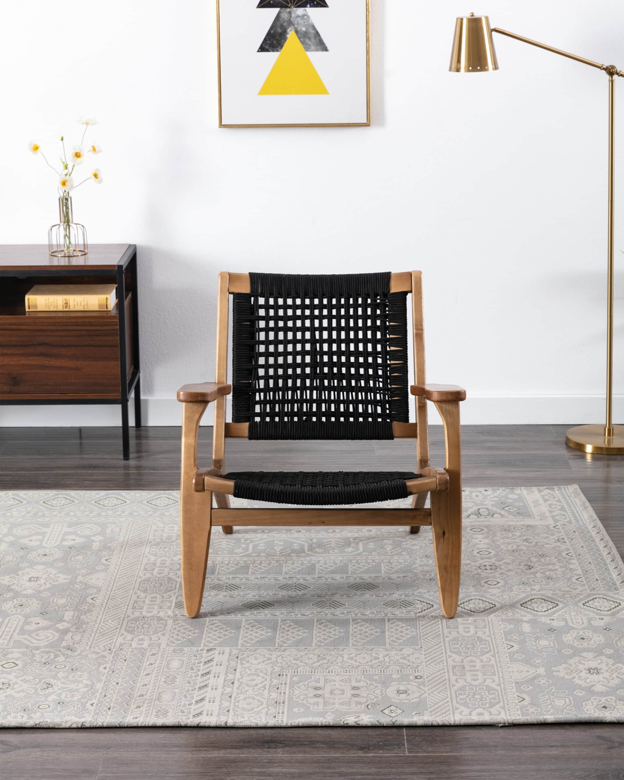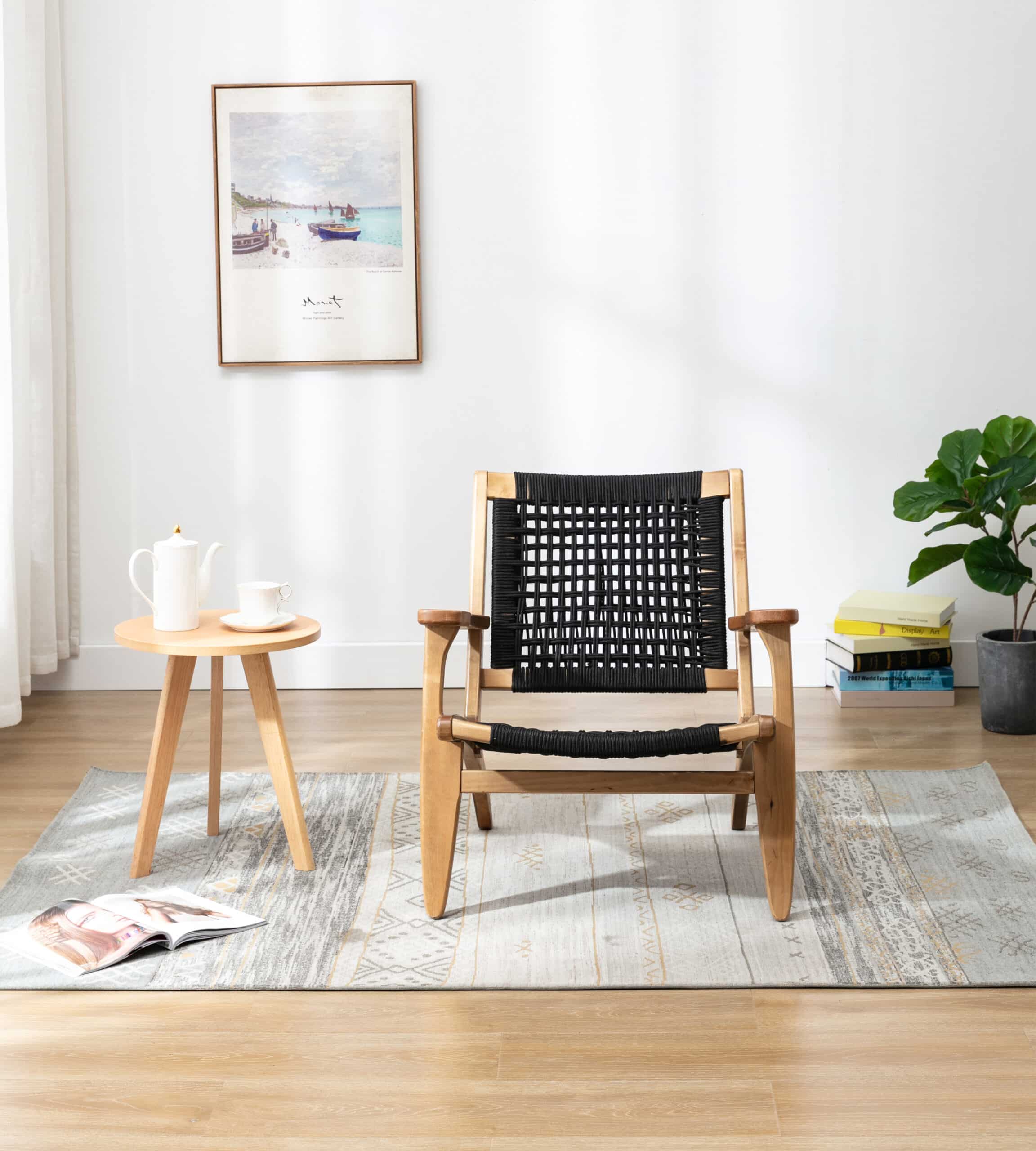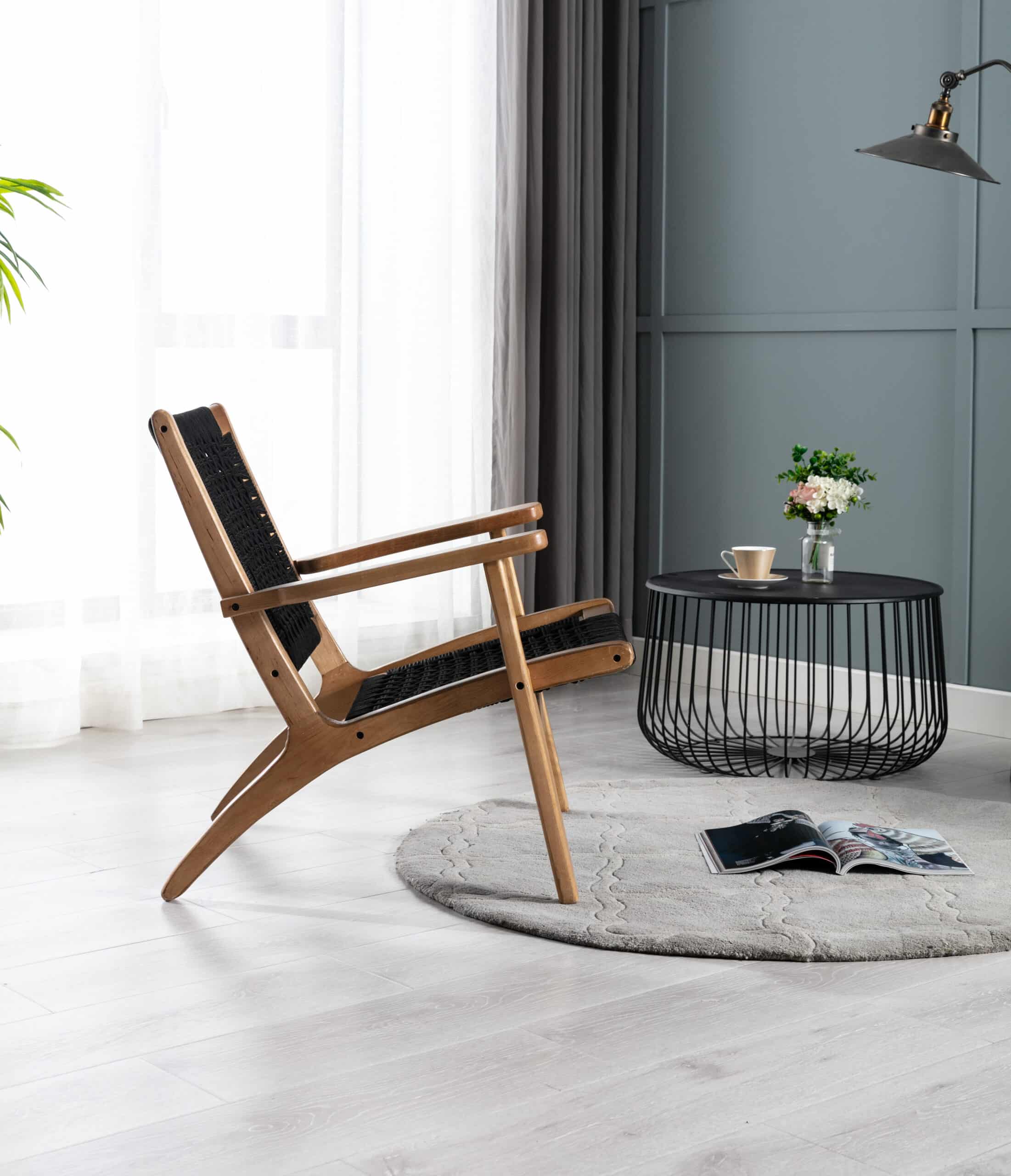 - Rope woven backrest and seat