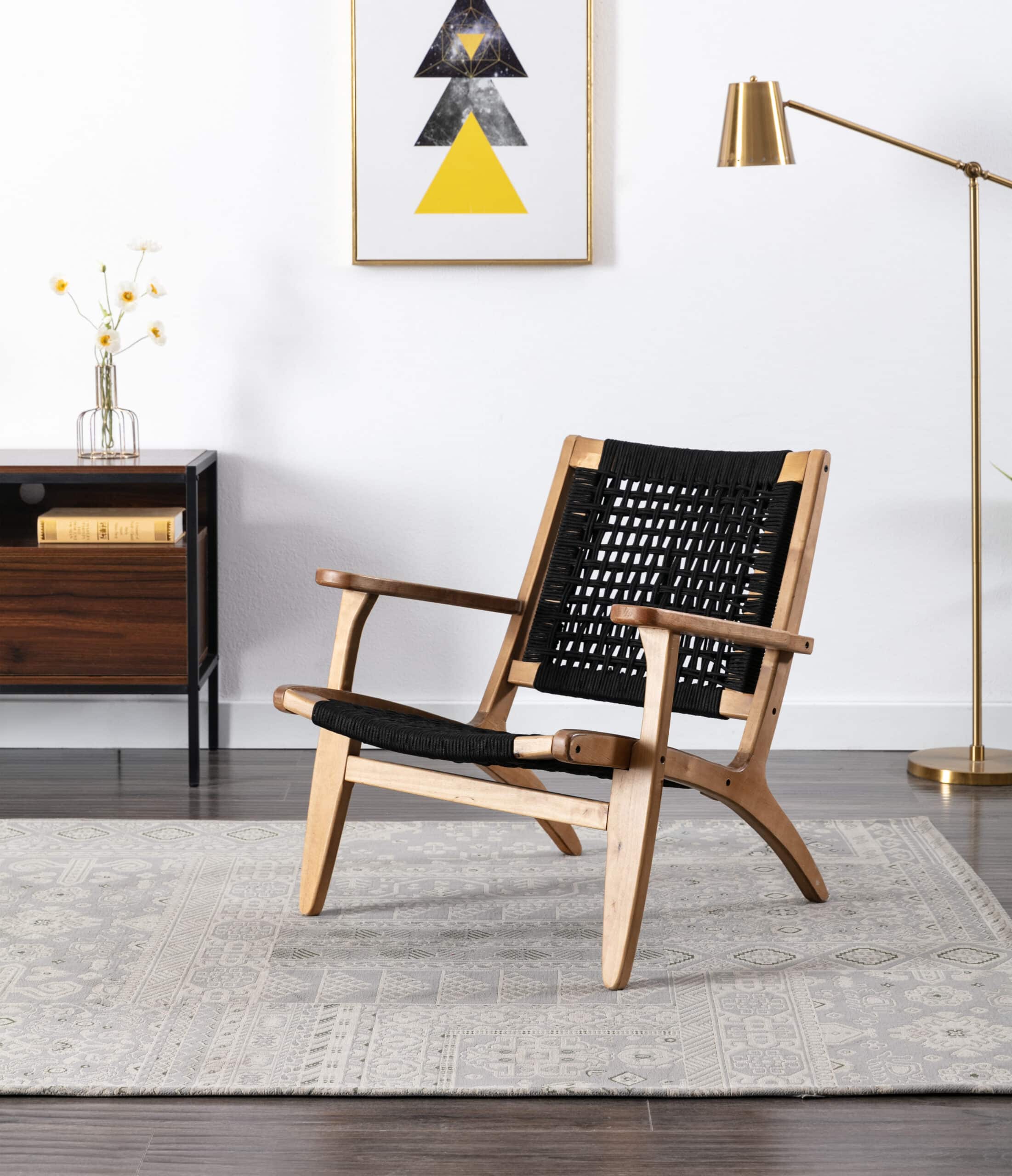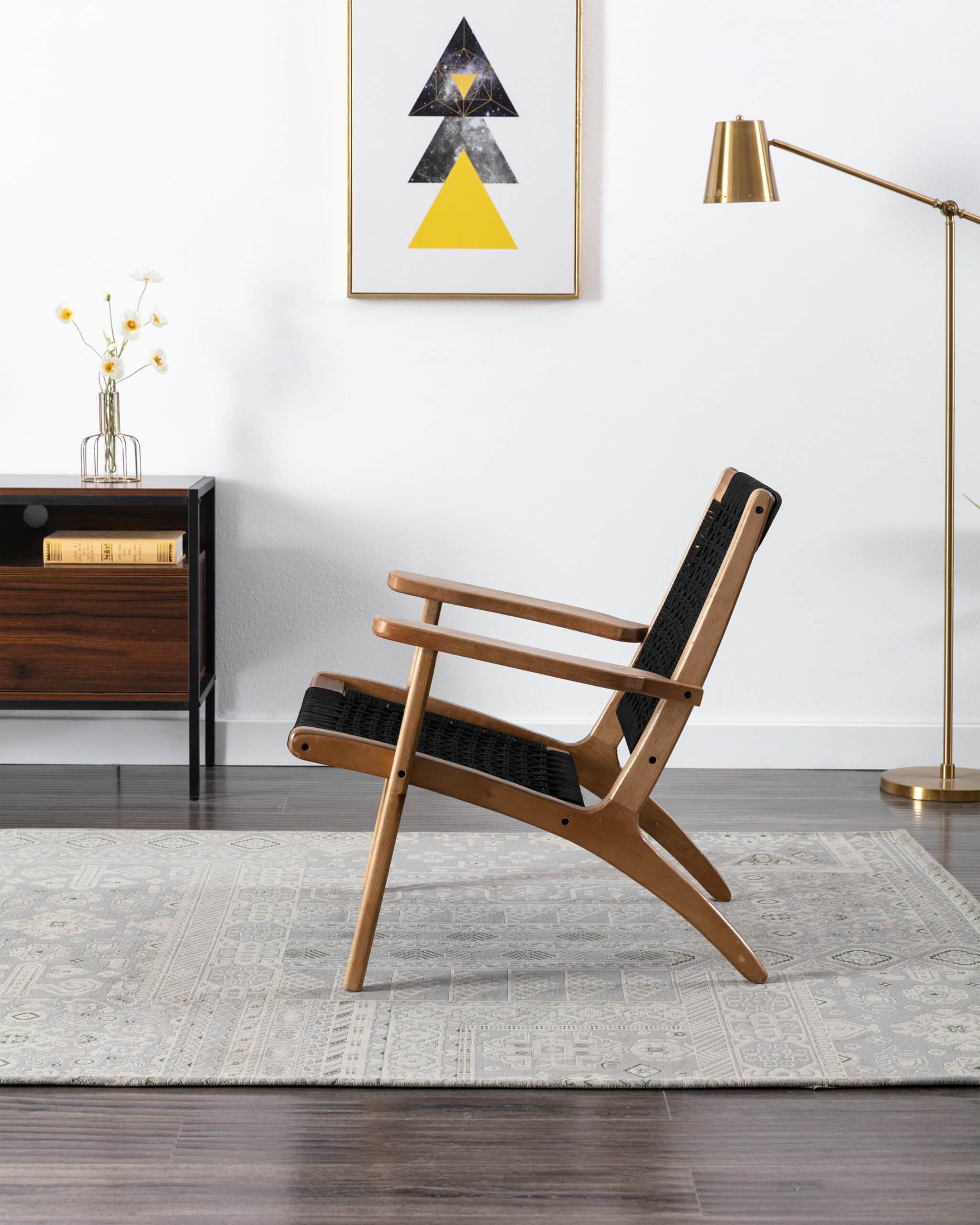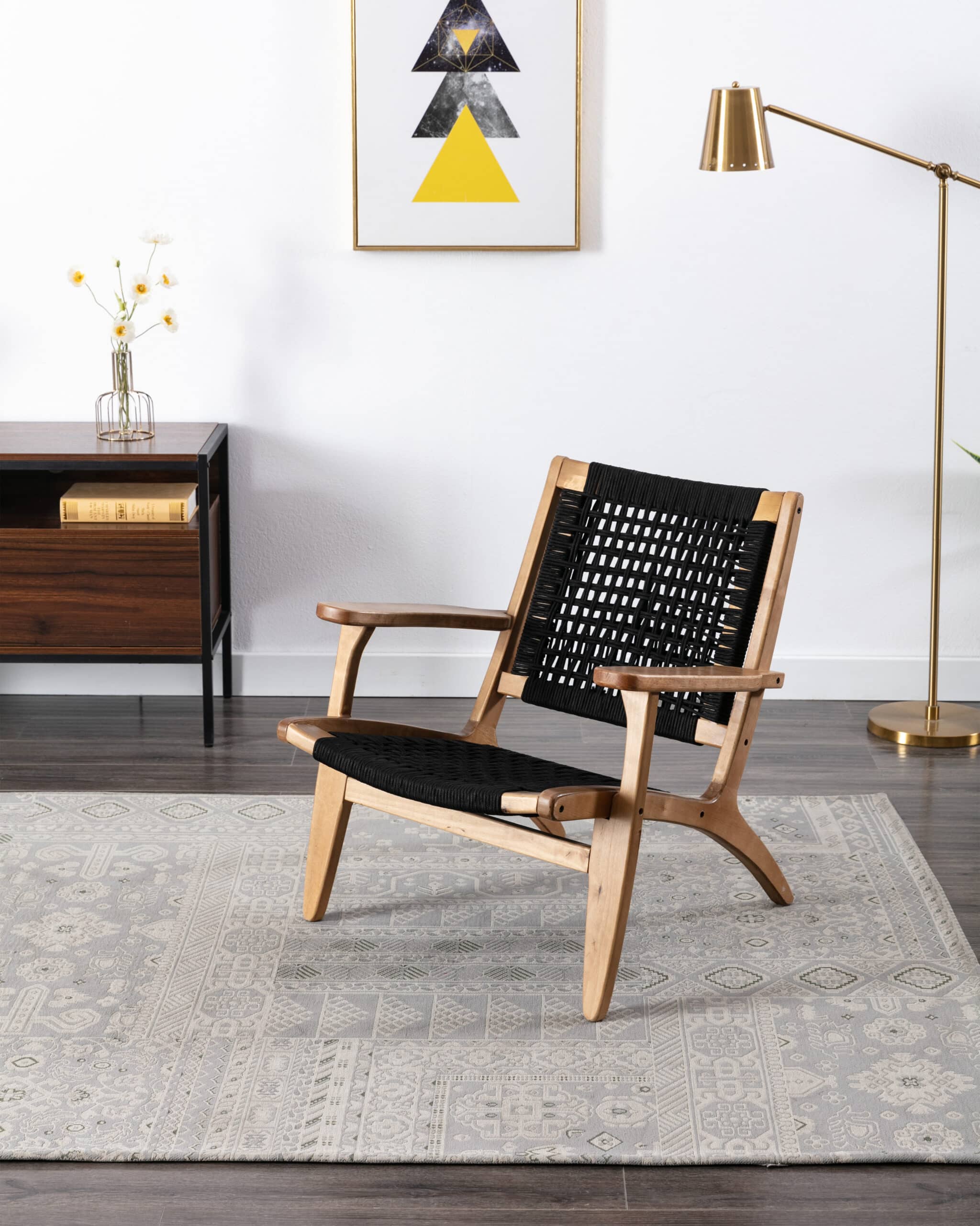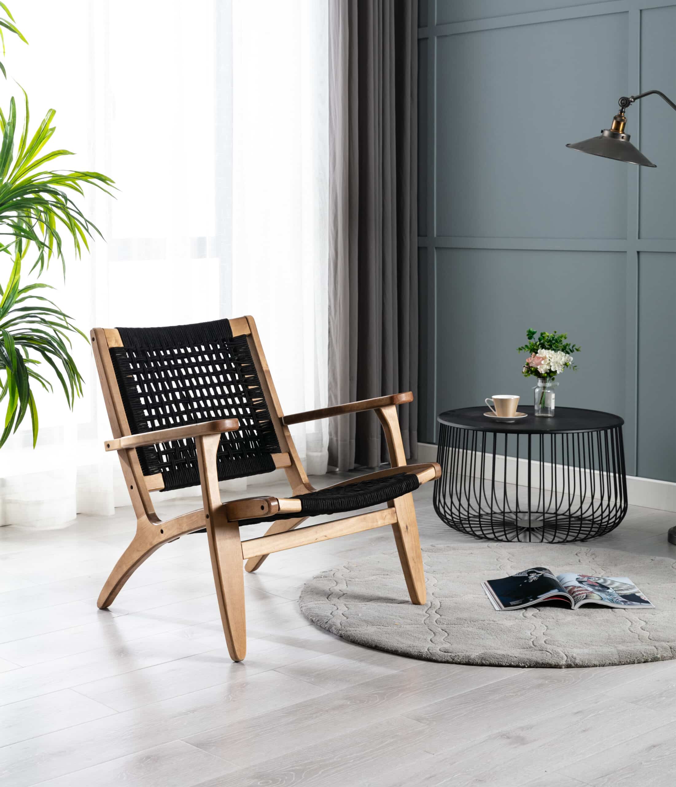 - Rope woven backrest and seat