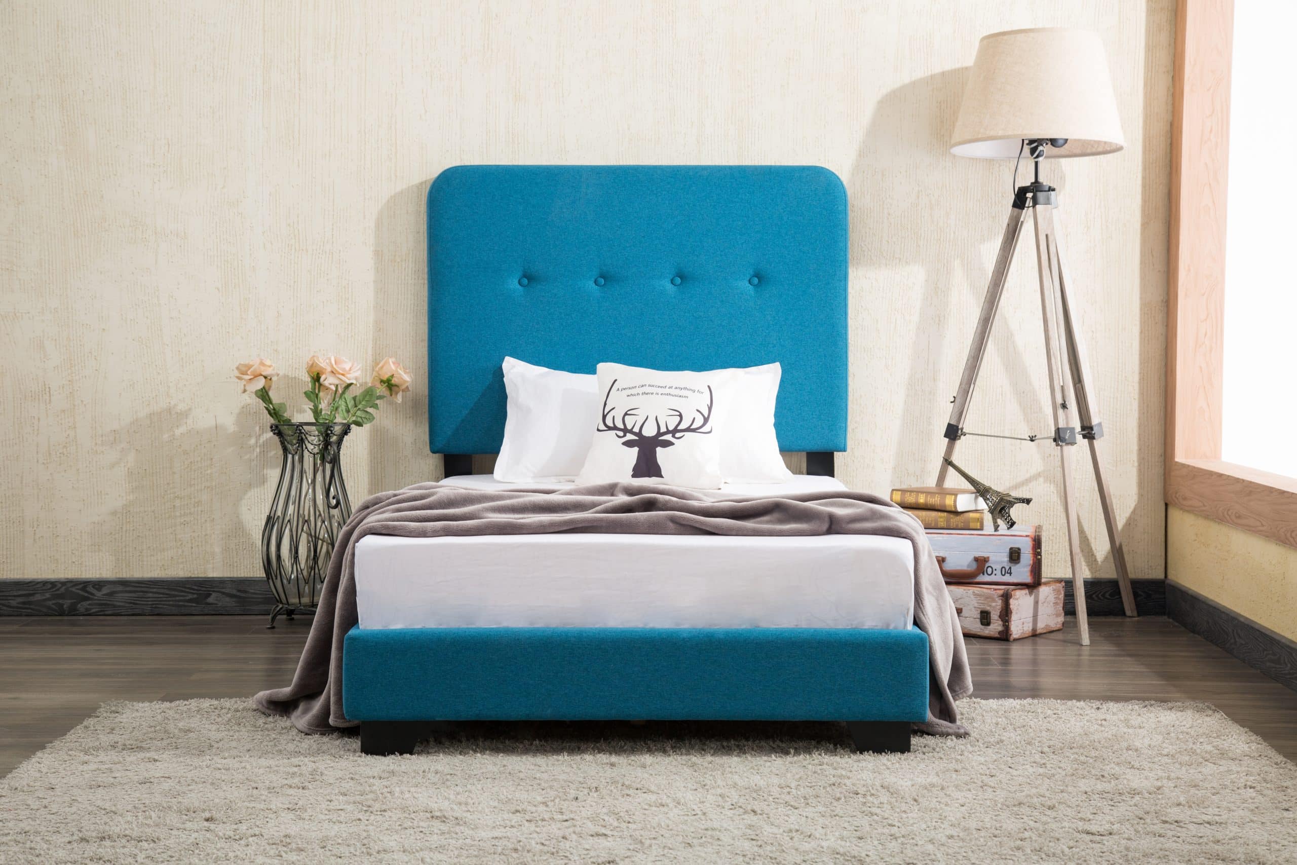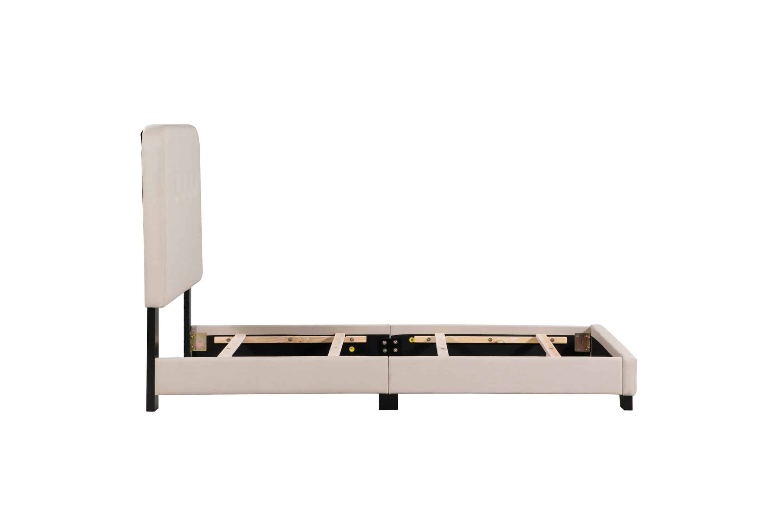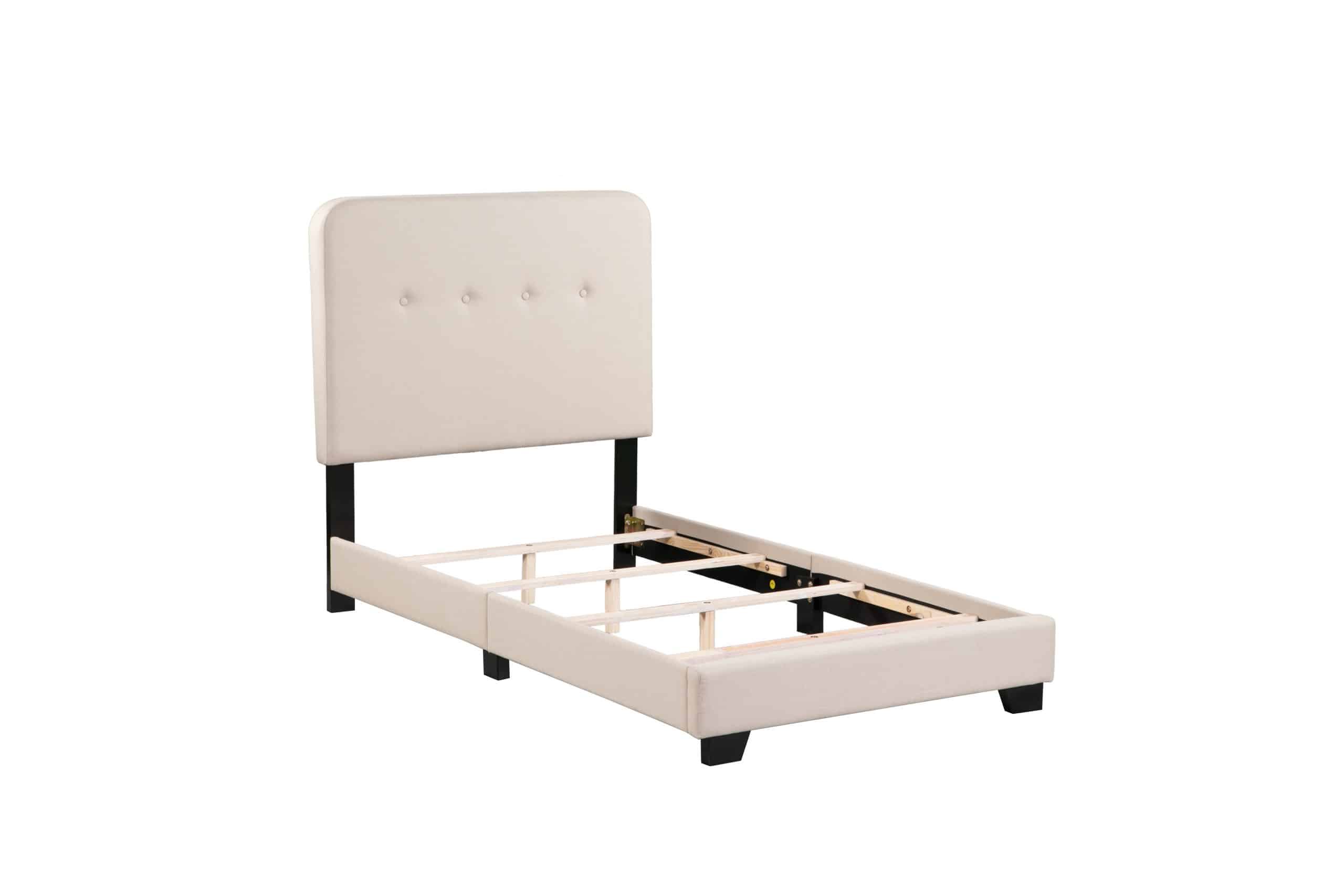 The Helene Bed In A Box proves that you don’t need to sacrifice style for simplicity. This modern bed is crafted from pine wood with tufted fabric upholstery. It includes everything you’ll need: headboard, footboard, slats, rails, and feet. For your convenience, every component arrives together in one neatly organized box. Choose your preferred size and upholstery color to make this bed perfect for your space.