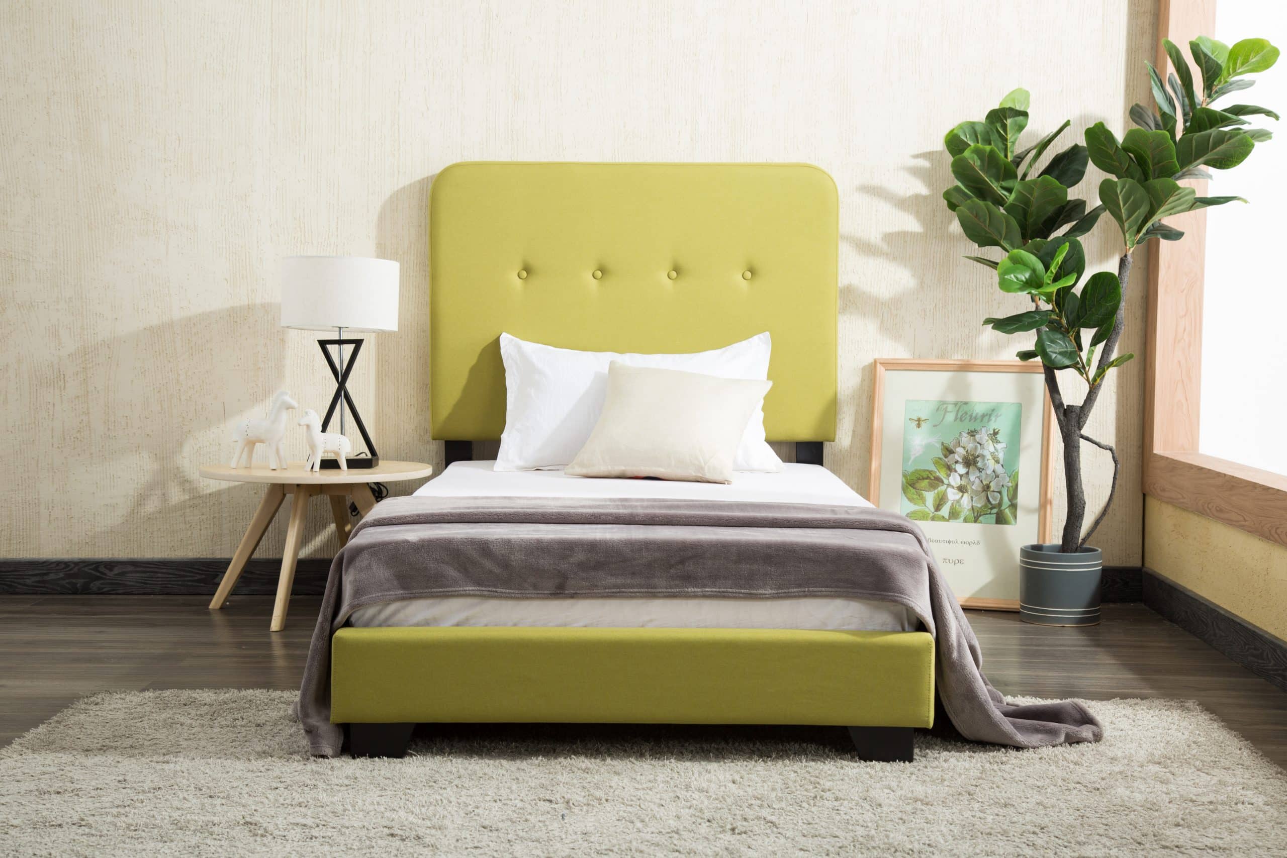 - Tufted headboard