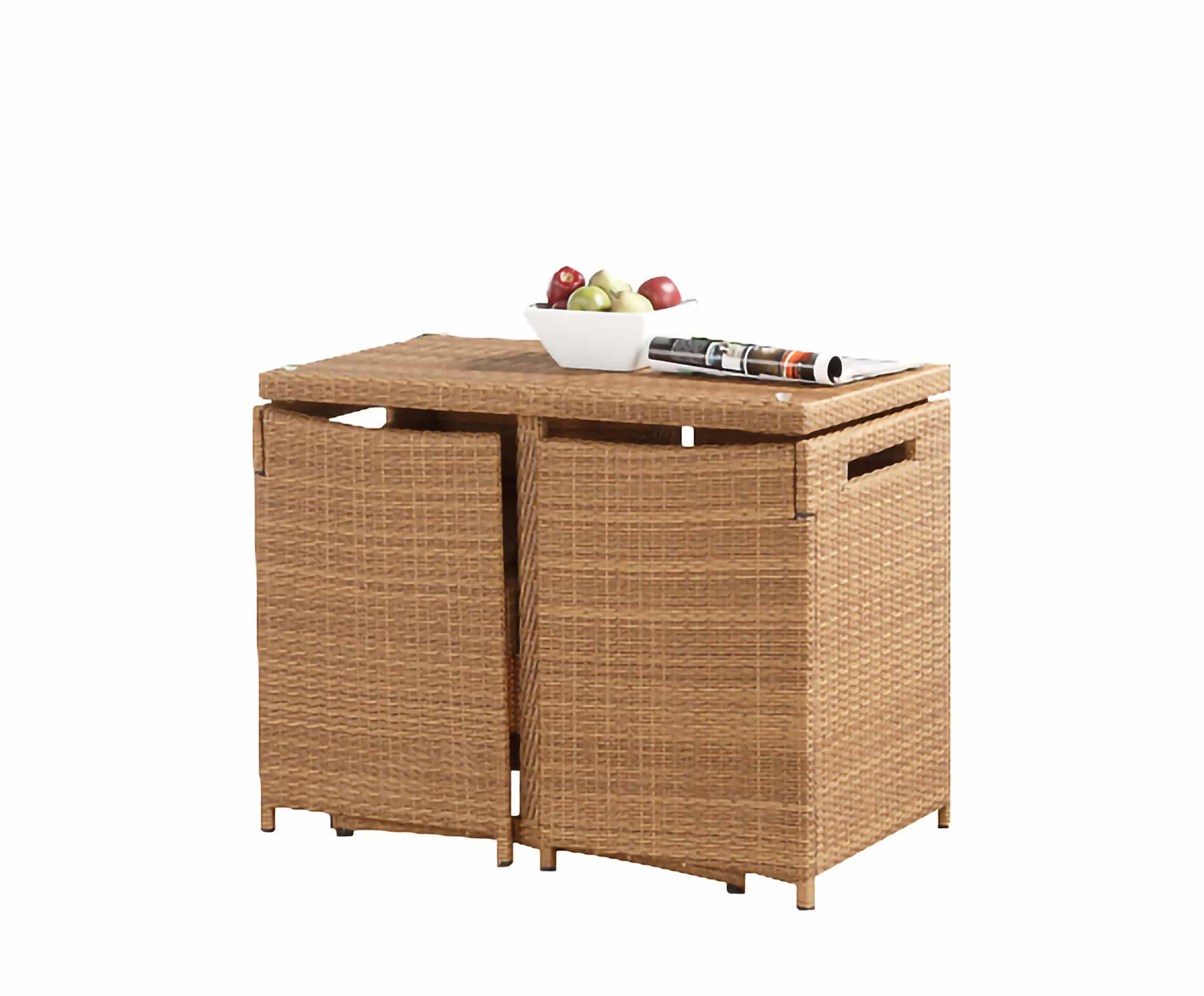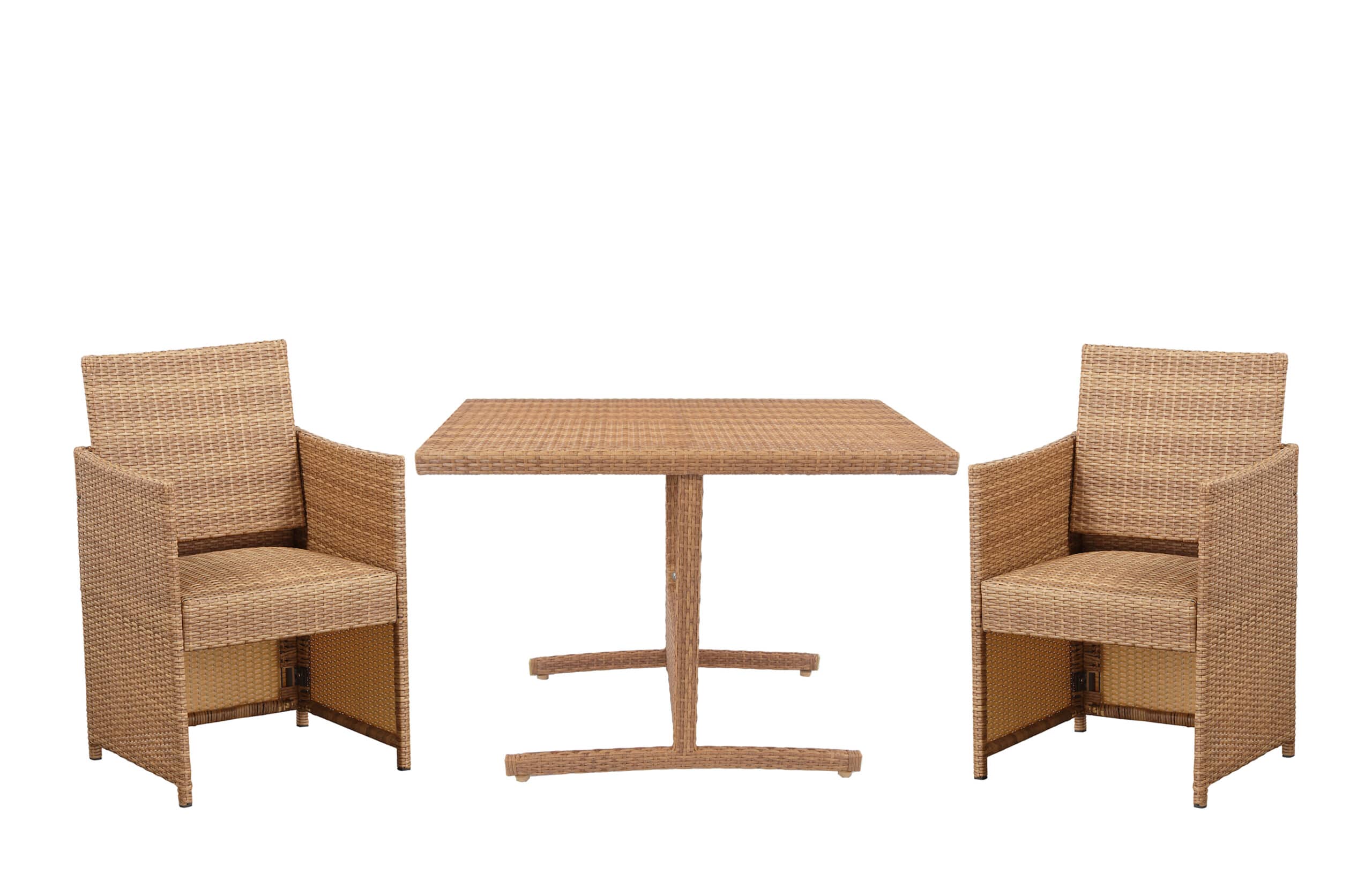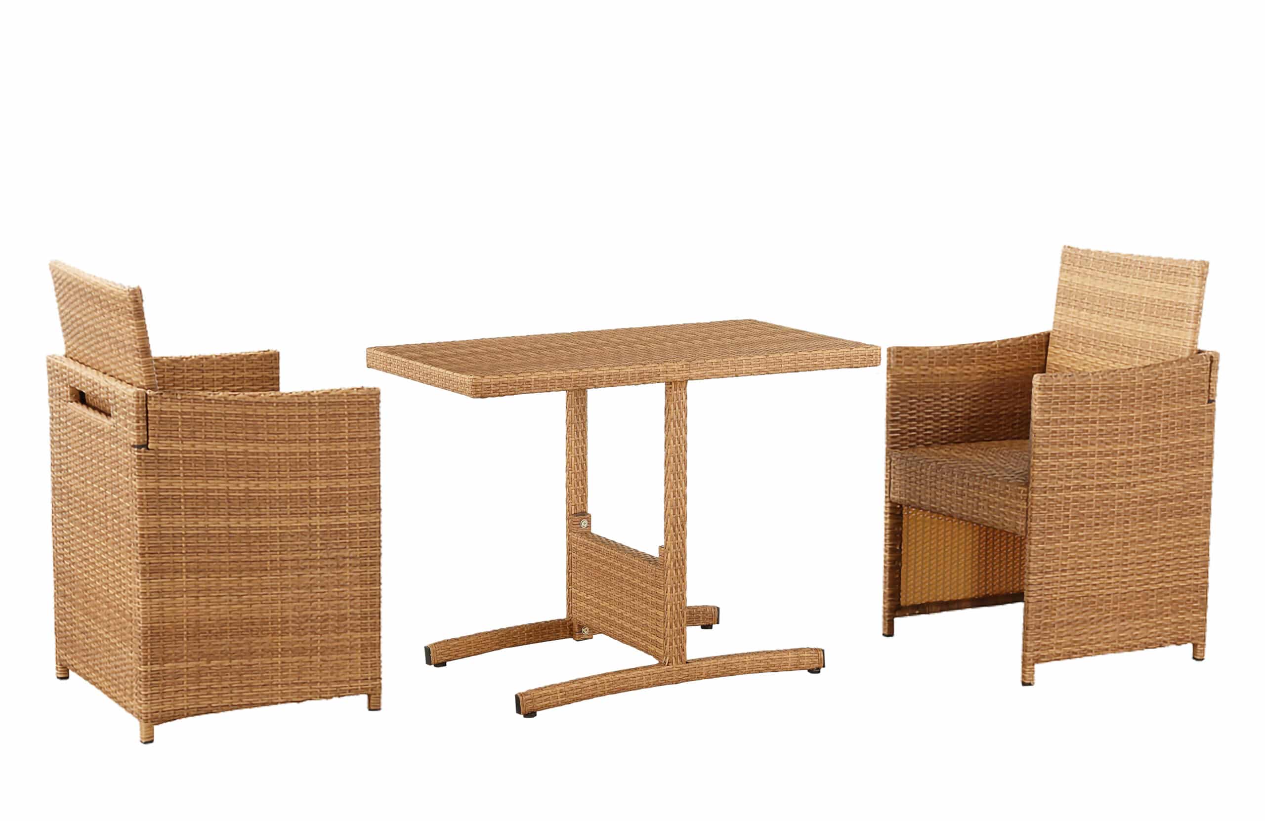 - Includes: 1 rattan rectangular dining table, and 2 matching rattan chairs