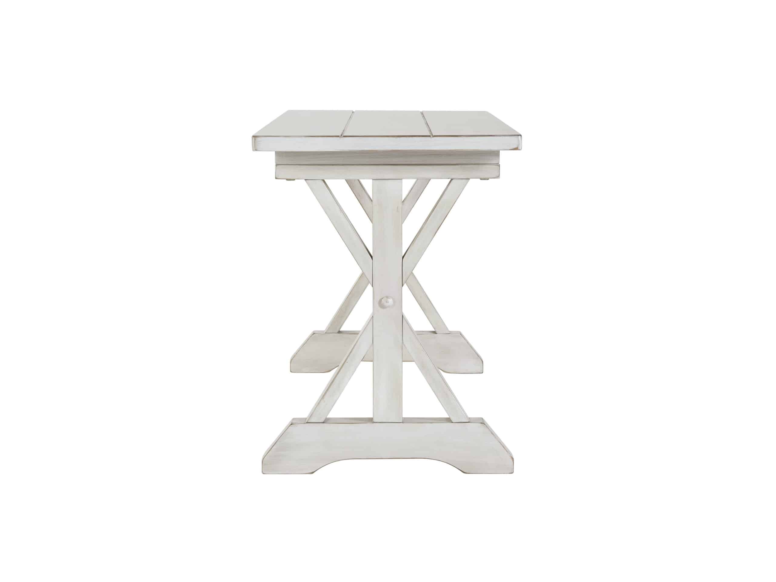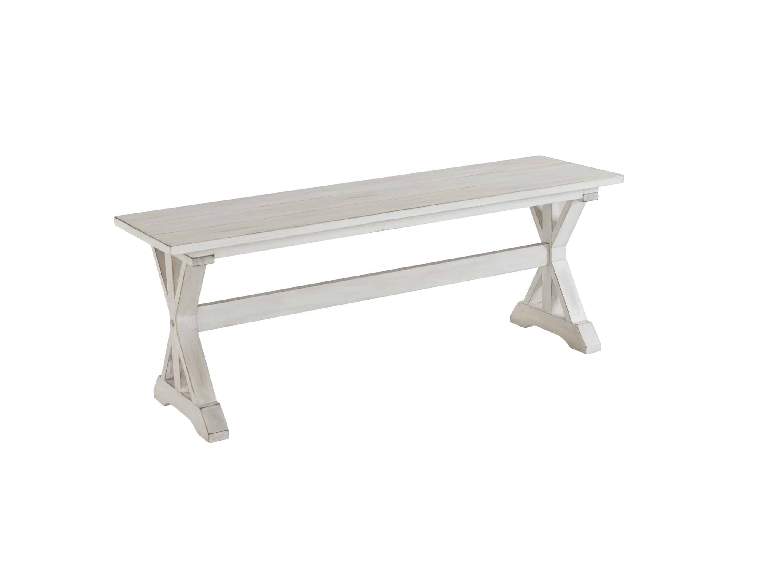 - This dining room bench features a beautiful antique white finish. Its versatile design exudes timeless elegance and effortlessly complements a variety of home decor styles.