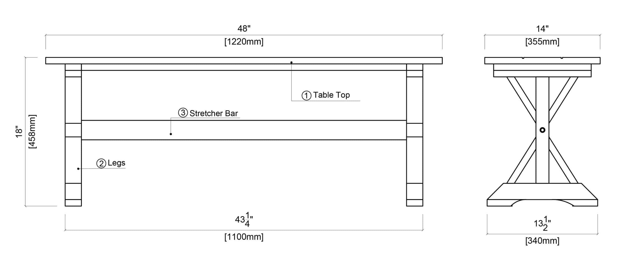 Dimensions: 48"w x 18.25"h x 14"d