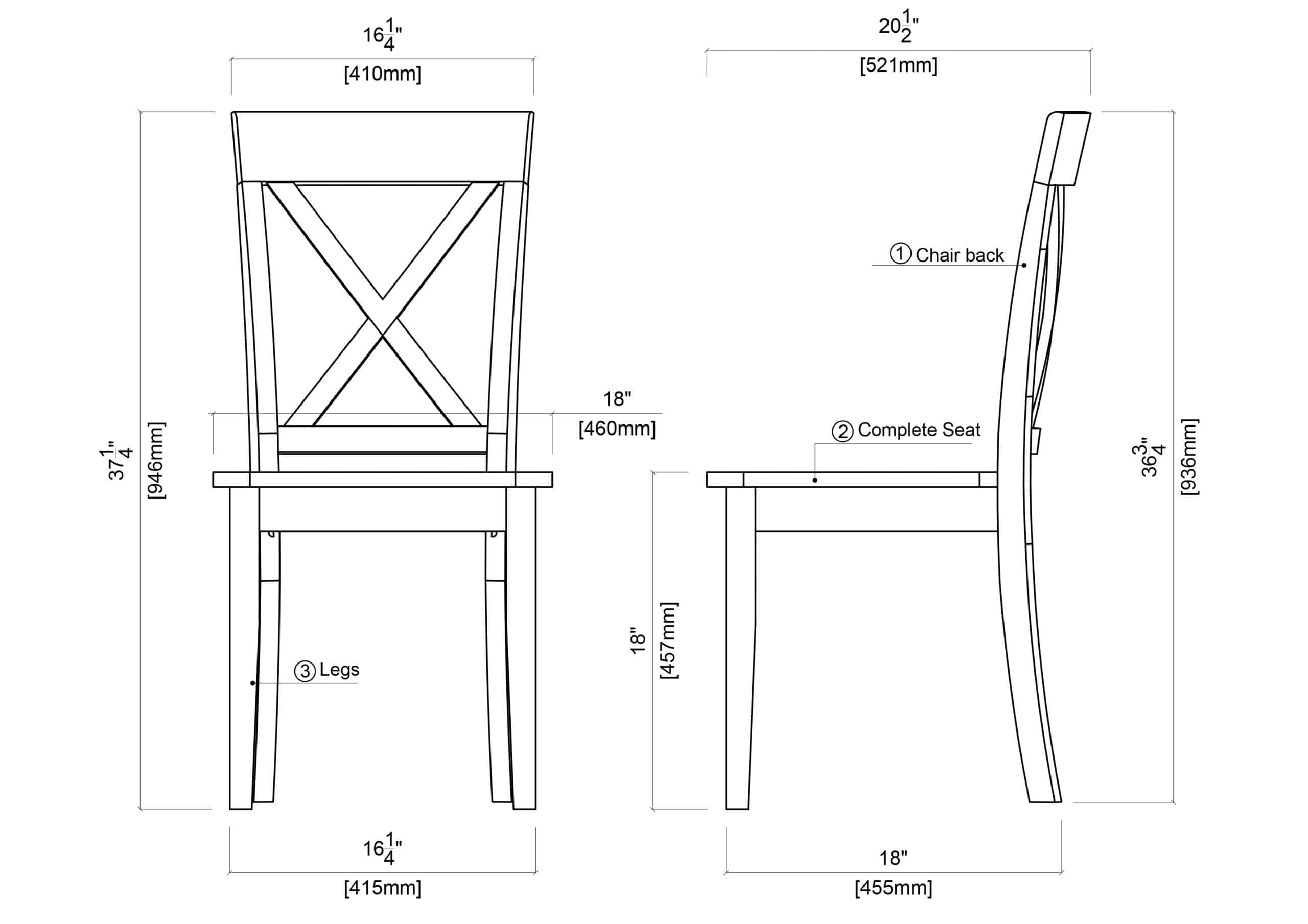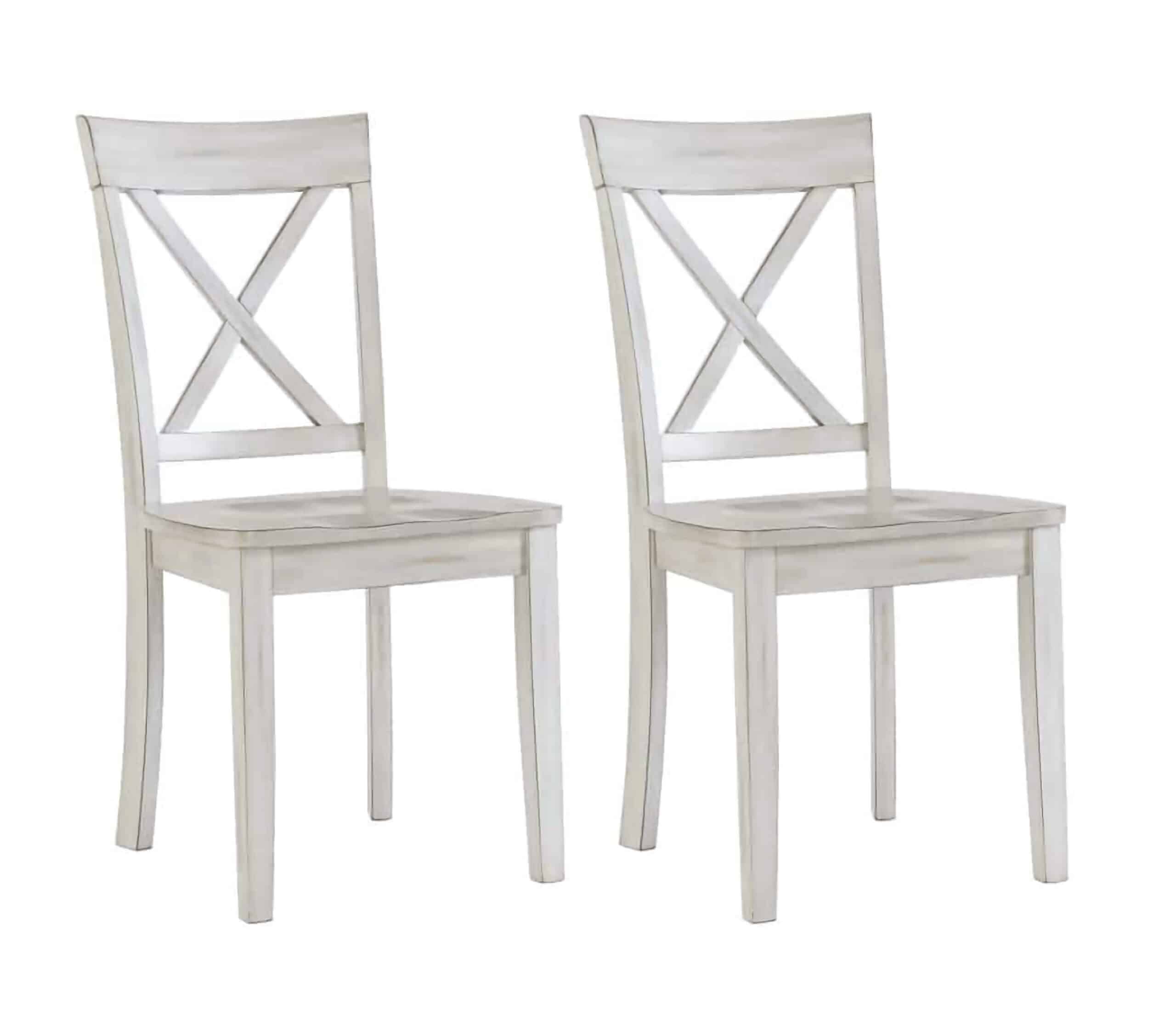 The Jamestown Dining Chairs are the finishing touch to your farmhouse-inspired dining room. This set includes two chairs, each constructed from medium density fiberboard and solid rubberwood. A classic “X” back, contoured seat, and antique white finish add to the cottage feel. All tools and hardware come included so assembly is as simple as it gets. Be sure to pair this bench with the matching Jamestown Dining Table and Dining Bench from Boraam to complete the look. *Please note: product weight is for a single chair*