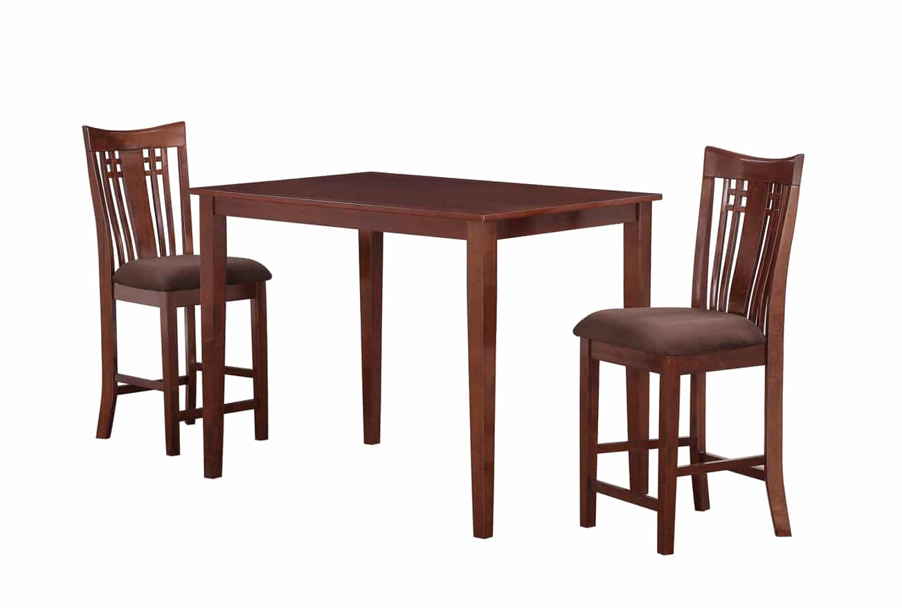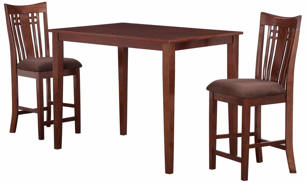 The Jamie 3-Piece Pub Set makes it easy to style your dining room or breakfast nook with confidence. Built from wood in the finish of your choice, this set’s casual flair looks great in any space. Footrests, padded seats, and curved slat backs ensure the set is comfortable, too. This three-piece pub set, which includes the table and stools, provides easy seating for two. Add on extra Jamie Stools (sold separately) to seat even more friends and family around the spacious rectangular pub table.