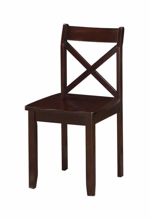 Whether you have your sights set on cozy dinners for two or easygoing weekend brunches, the Jamie Dining Chair is ready for duty. The farmhouse-style crossback chairs are crafted from wood in the finish of your choice: Cherry or Cappuccino. Seats are lightly molded for ergonomic comfort. These X-back chairs come in a set of two. Please note: Product weight listed on site is for a single chair.