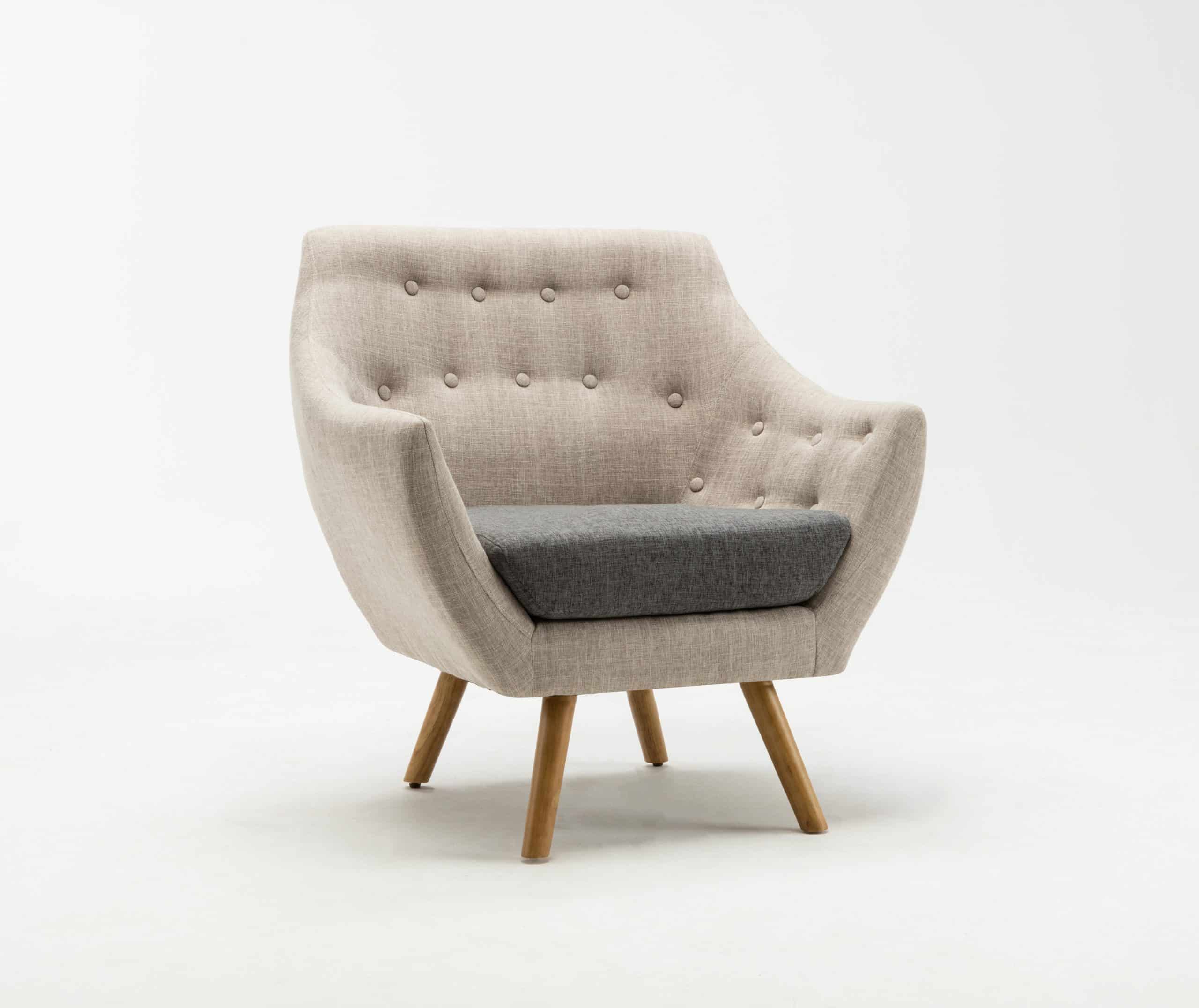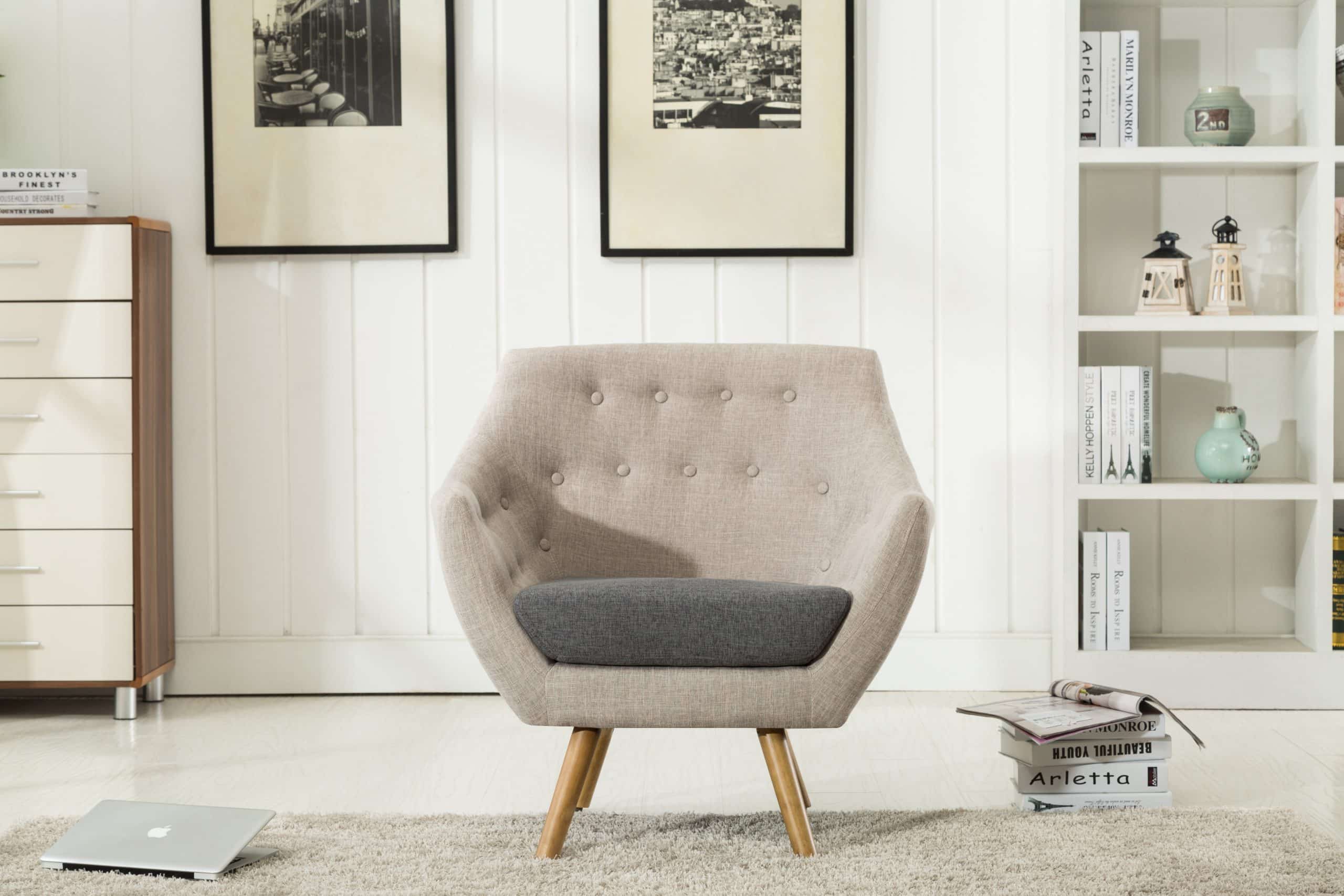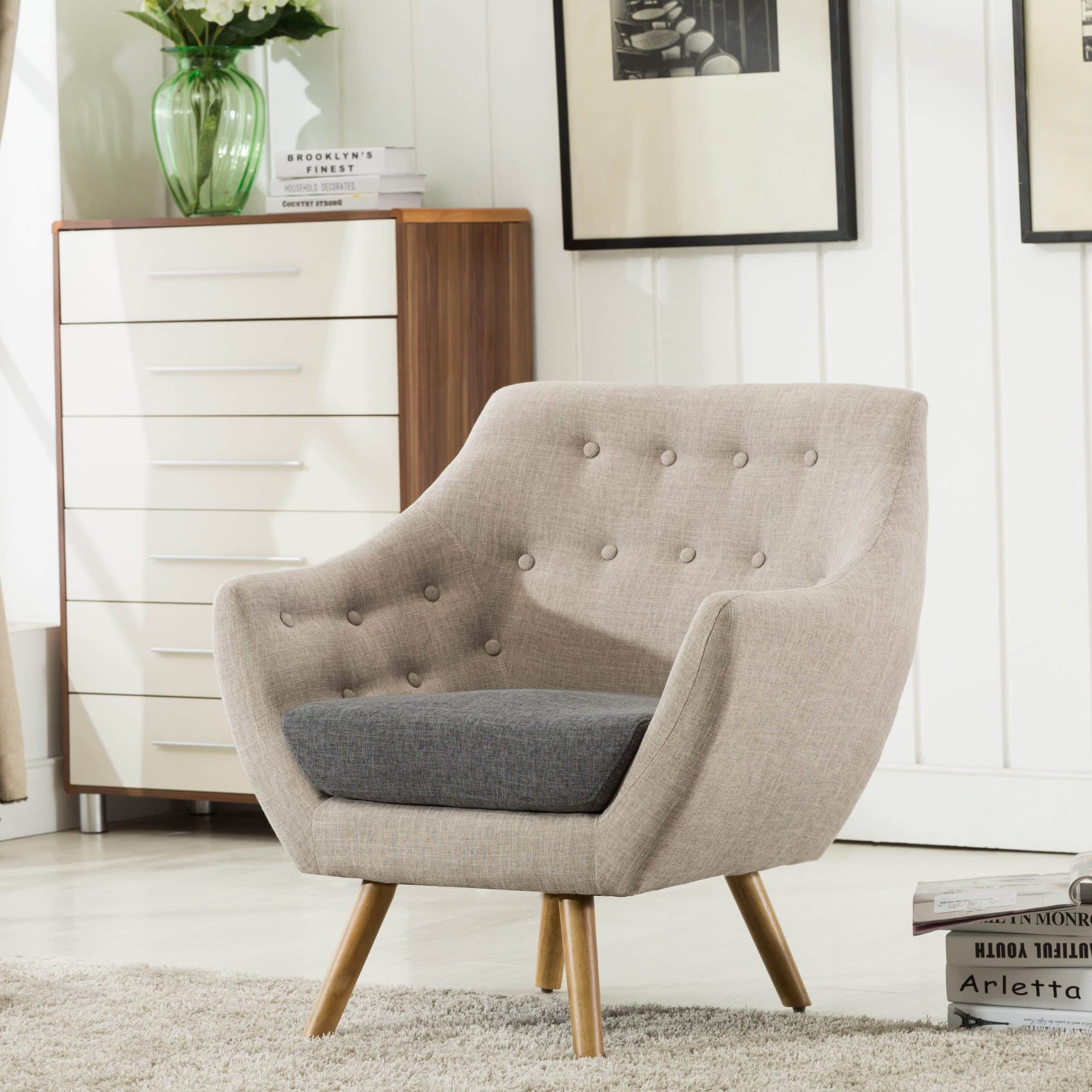 The Kara Arm Chair wouldn’t look out of place in a sophisticated 1960s living room. With its two-tone color combination, flared legs, and barrel design, this arm chair is a stunning example of refined mid-century modern style. This contemporary piece comes shipped in one box, ready to assemble.