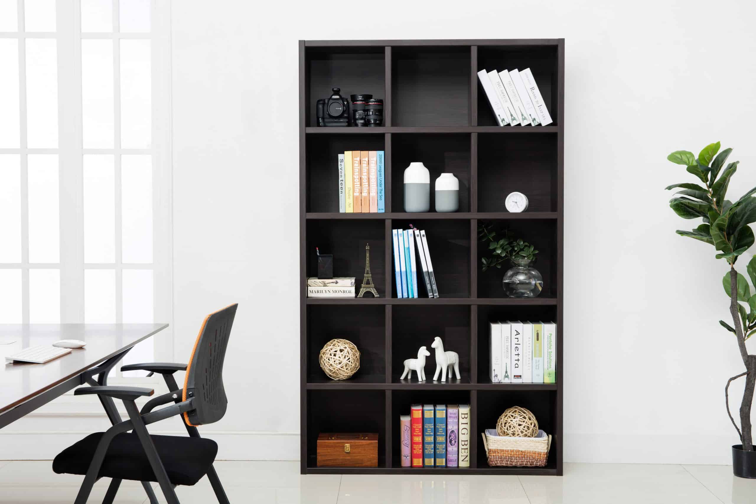 Our Kline 15-cube bookcase is a very attractive addition to any home or office. The sleek modern lines of this unit allows it to blend with your existing décor, transforming your room into a comfortable clutter free environment. This product also comes with the option of the Claude L shaped desk. A great additional piece that attaches to the shelf unit expounding on the functionality of the Kline. With a classic yet contemporary modern design, any of this storage option will be sure to compliment your home or office. Hollow core construction is a lightweight, environmentally friendly wood and finishing material; yet despite the lightweight materials, it is a strong & durable solution, capable of holding up to 70lbs per shelf. Ready to assemble with easy camlock construction, you’ll be enjoying your new furniture in no time.