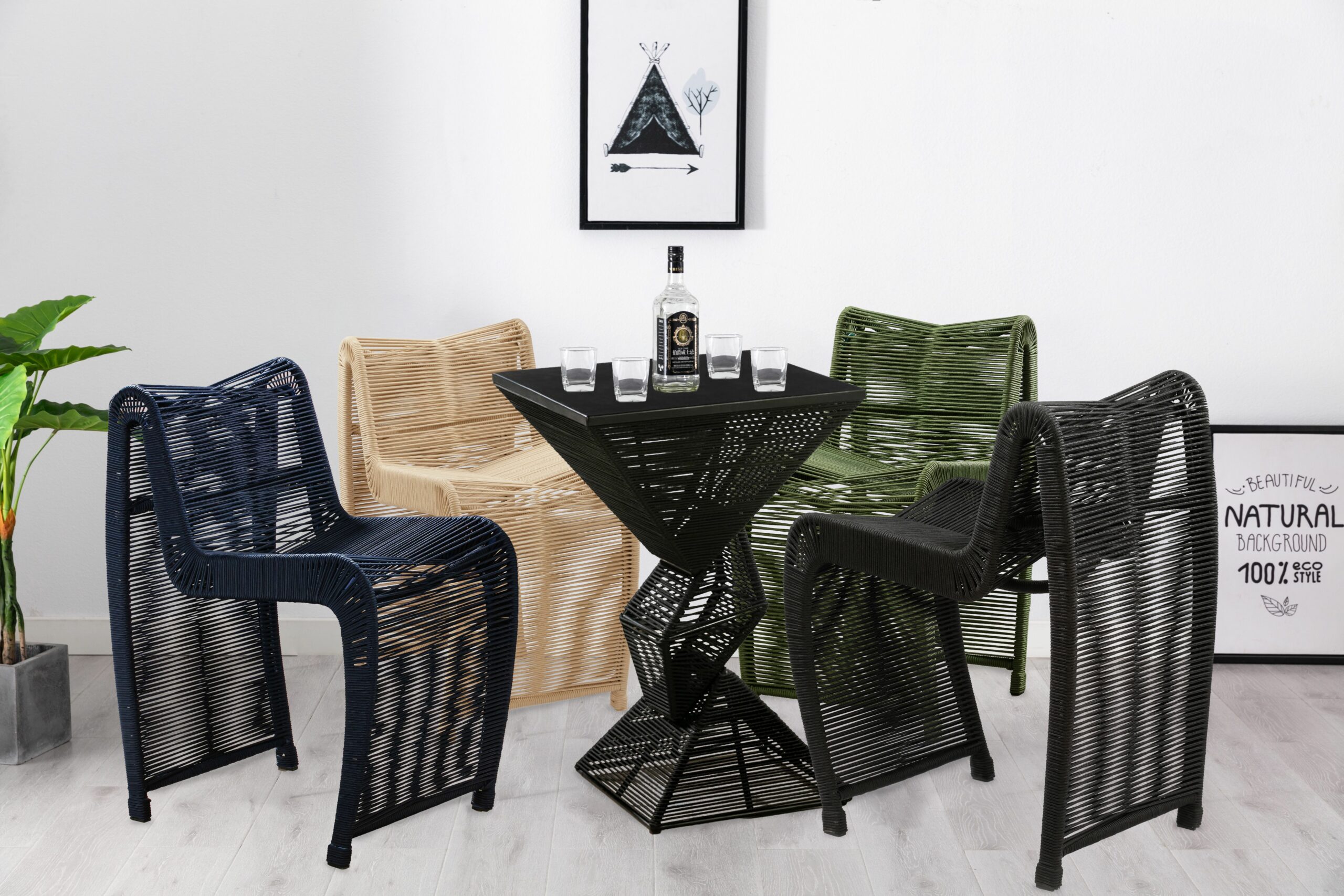 - Bring both your outdoor and indoor space to life with the Lorenzo rope pub table that features an abstract geometric structure