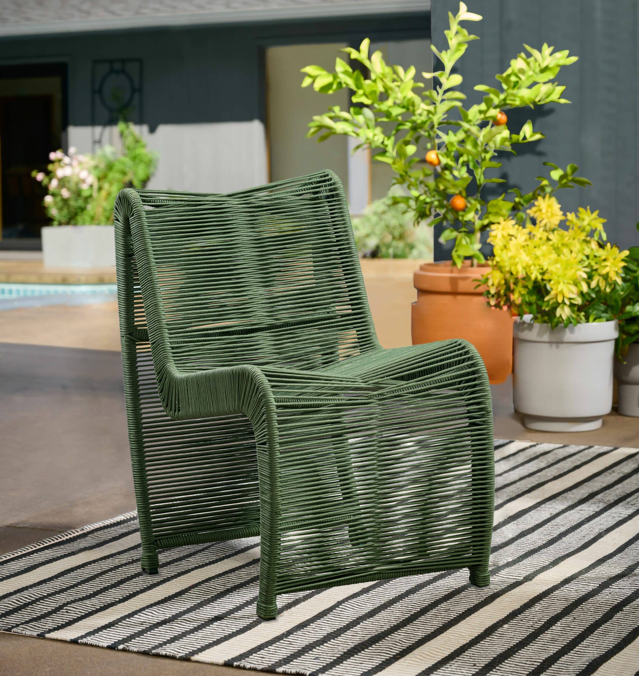 - The Lorenzo chairs are available in black, olive green, or tan rope