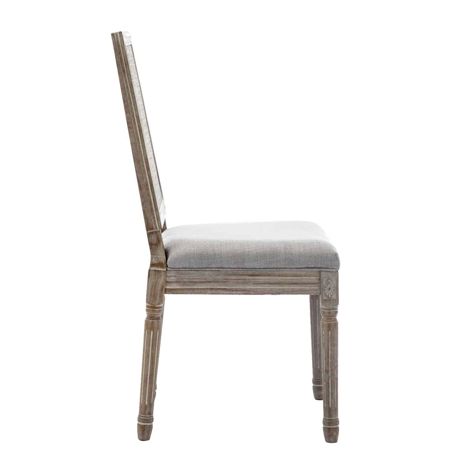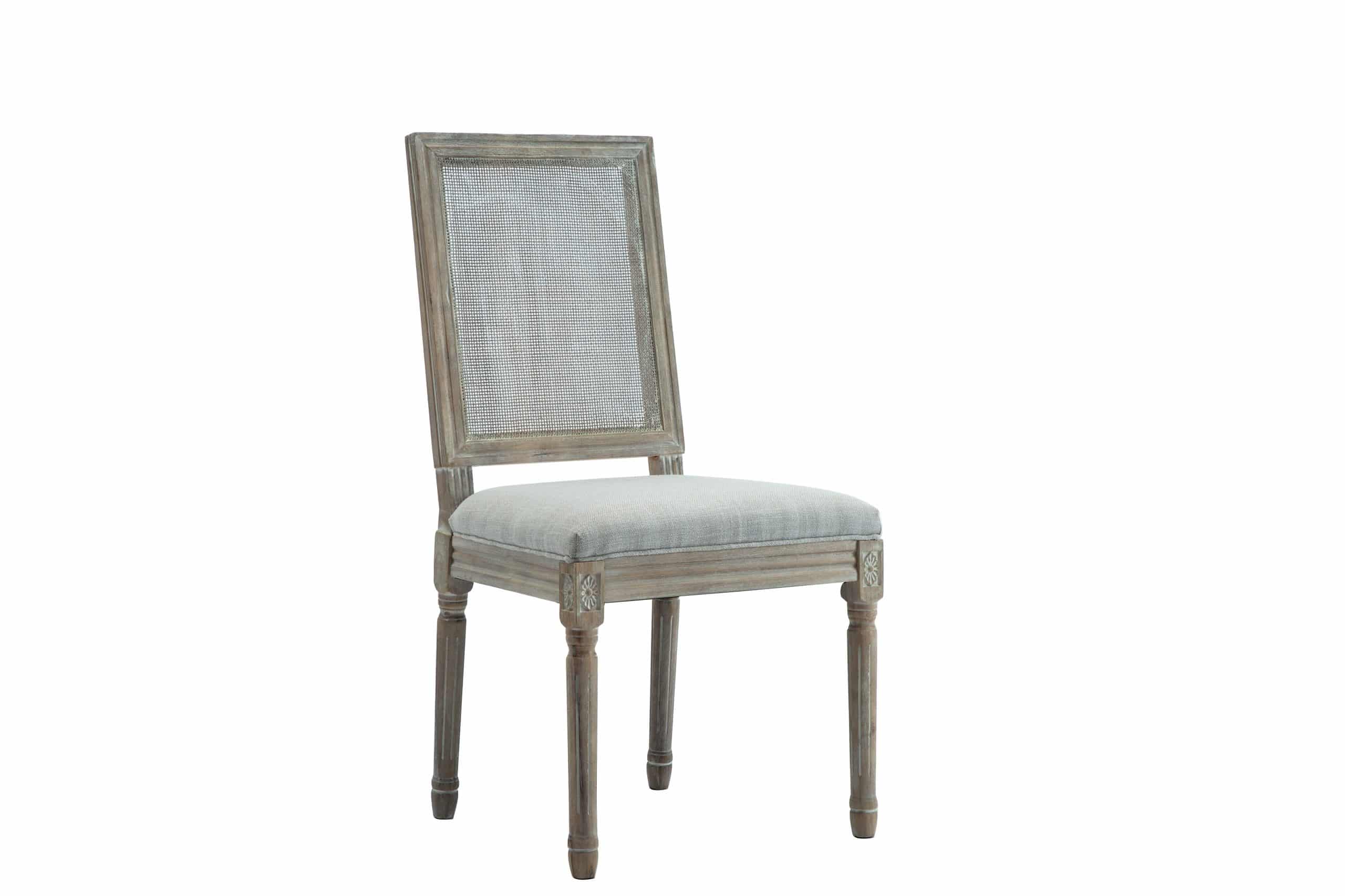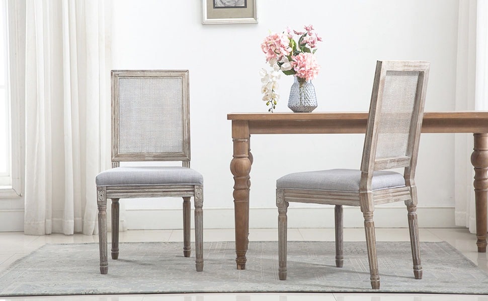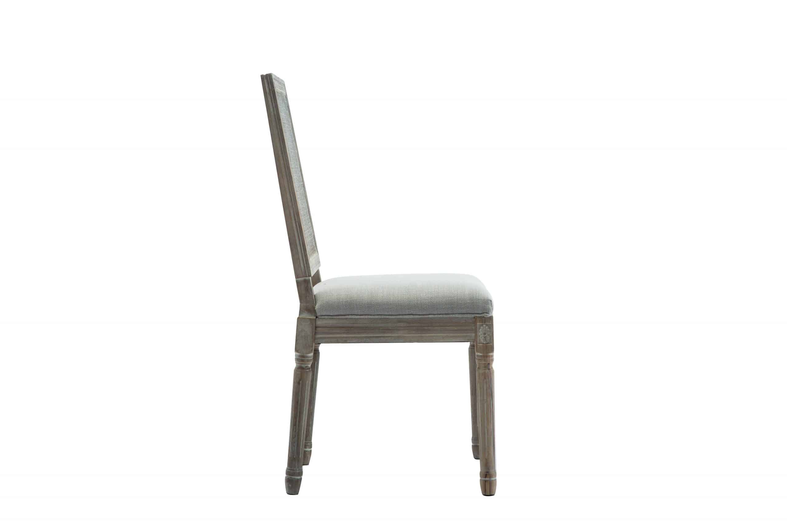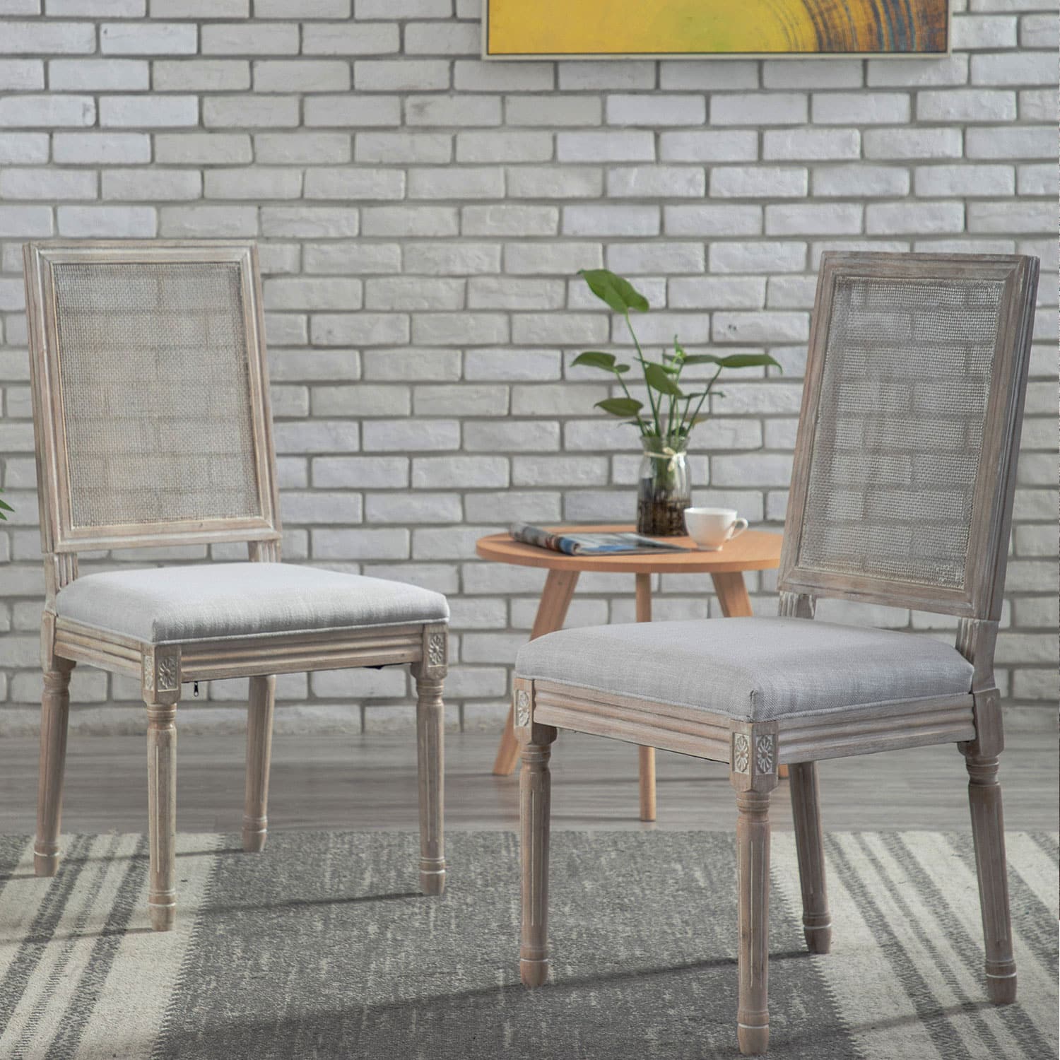 Dining chair, set of 2, rubberwood and polyester, beige and gray finishes