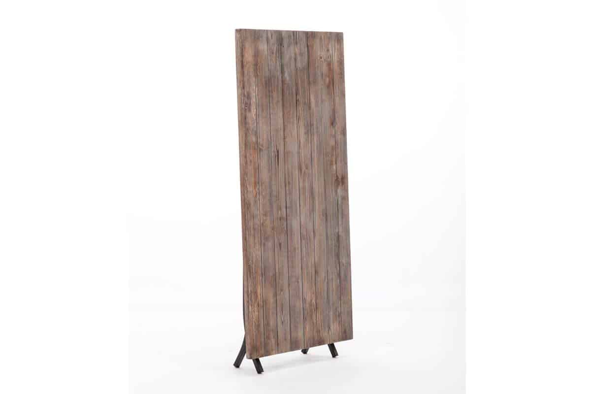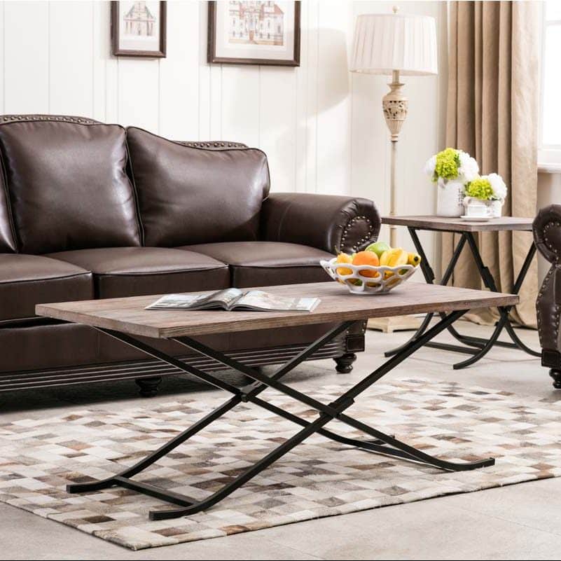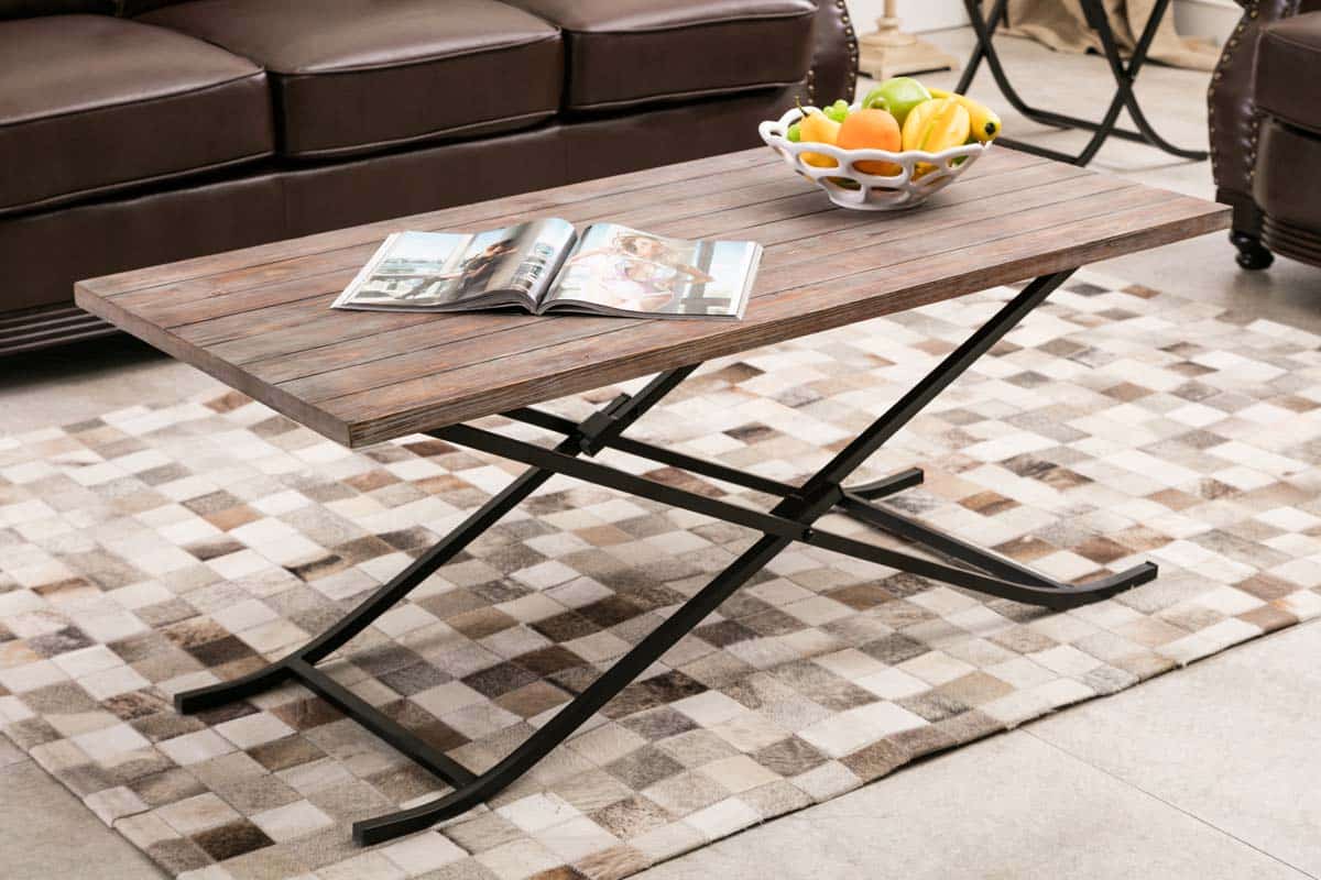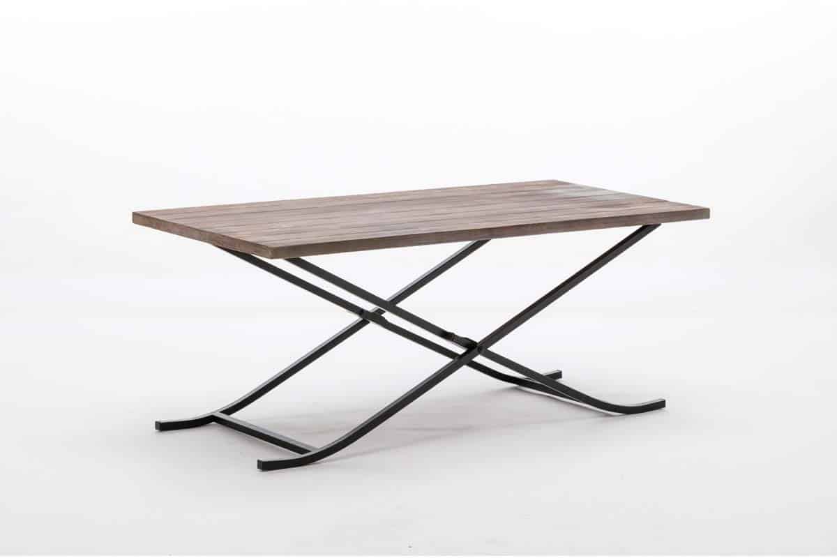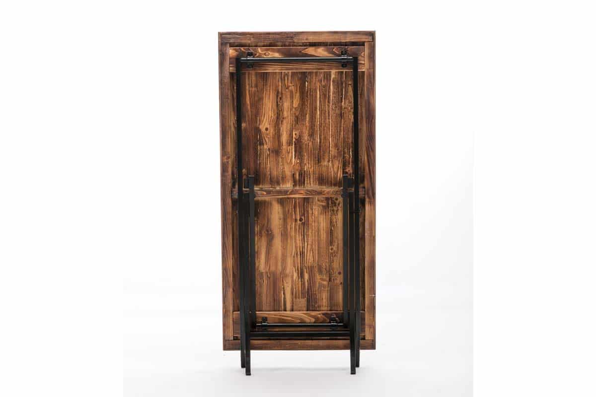 The Miriam Cocktail Table’s weathered fir wood tabletop brings warmth and organic style to your living room. This wooden coffee table rests on black iron legs, creating a delightful contrast of materials and colors. The legs fold up for easy moving or storage. Outfit your living room with the matching Miriam End Table (available sold separately).