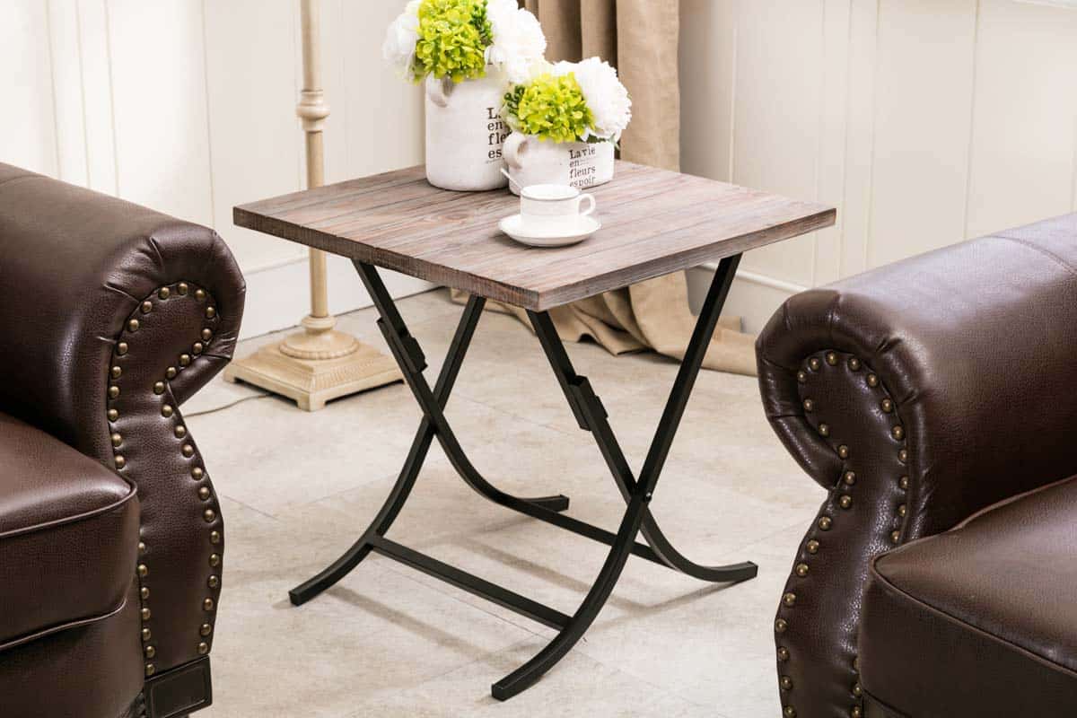 The Miriam End Table’s versatility and good looks are sure to impress your guests – and make your life a whole lot easier. This accent table comes with foldable metal legs, so you can easily move it or store it when needed. The tabletop’s weathered fir wood pairs beautifully with the crisscrossed black iron base. Finish your living room in matching style with the Miriam Cocktail Table (sold separately).