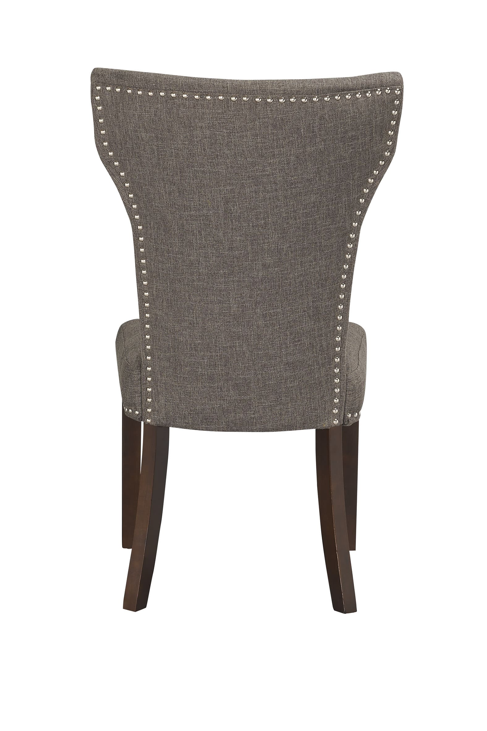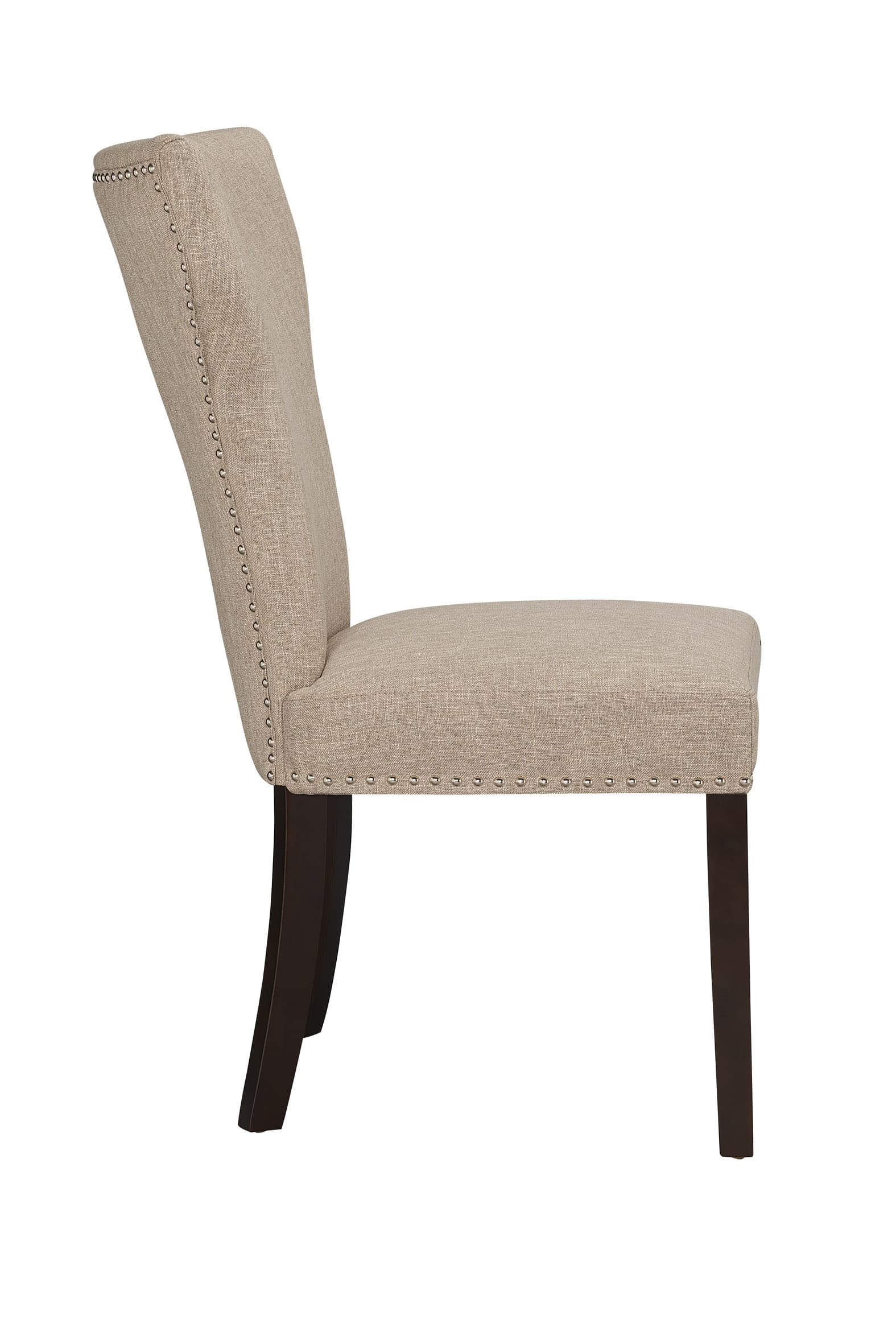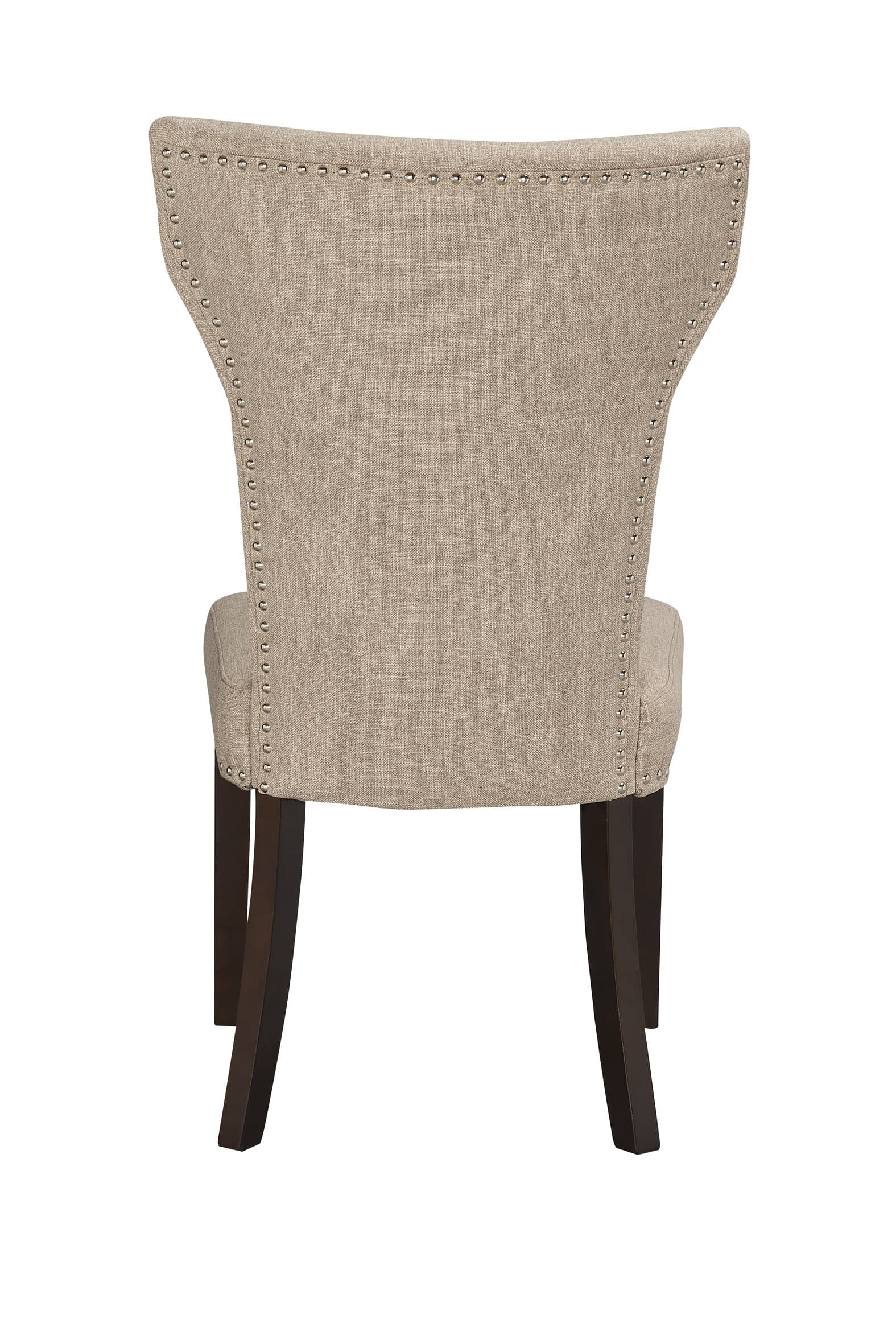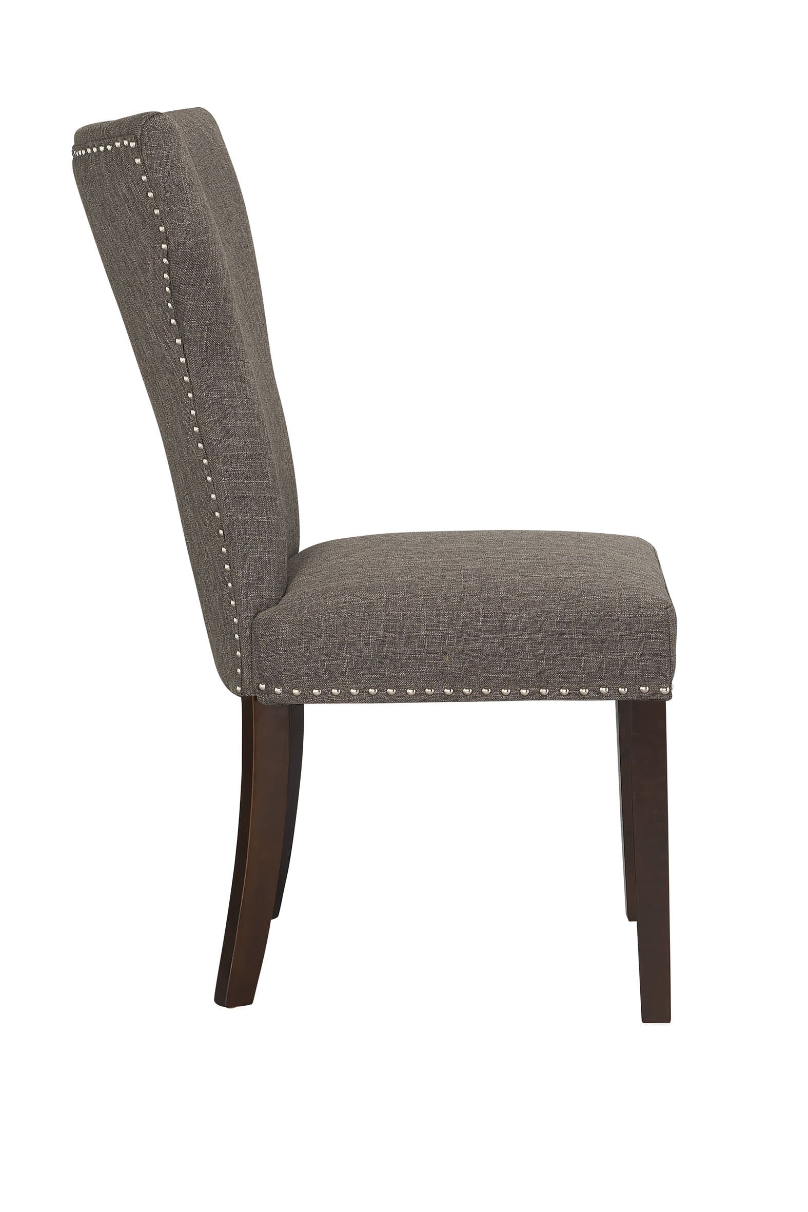 An intriguing take on a traditional Parsons chair, the Monaco Parson Dining Chair features a unique geometric backrest. The design is coupled with decorative brass nailhead trim over linen upholstery. Solid wood legs end in protective glides to prevent scratches or other damage to your hard floors. Comes in a set of two side chairs. Please note: Product weight listed on site is for a single chair.