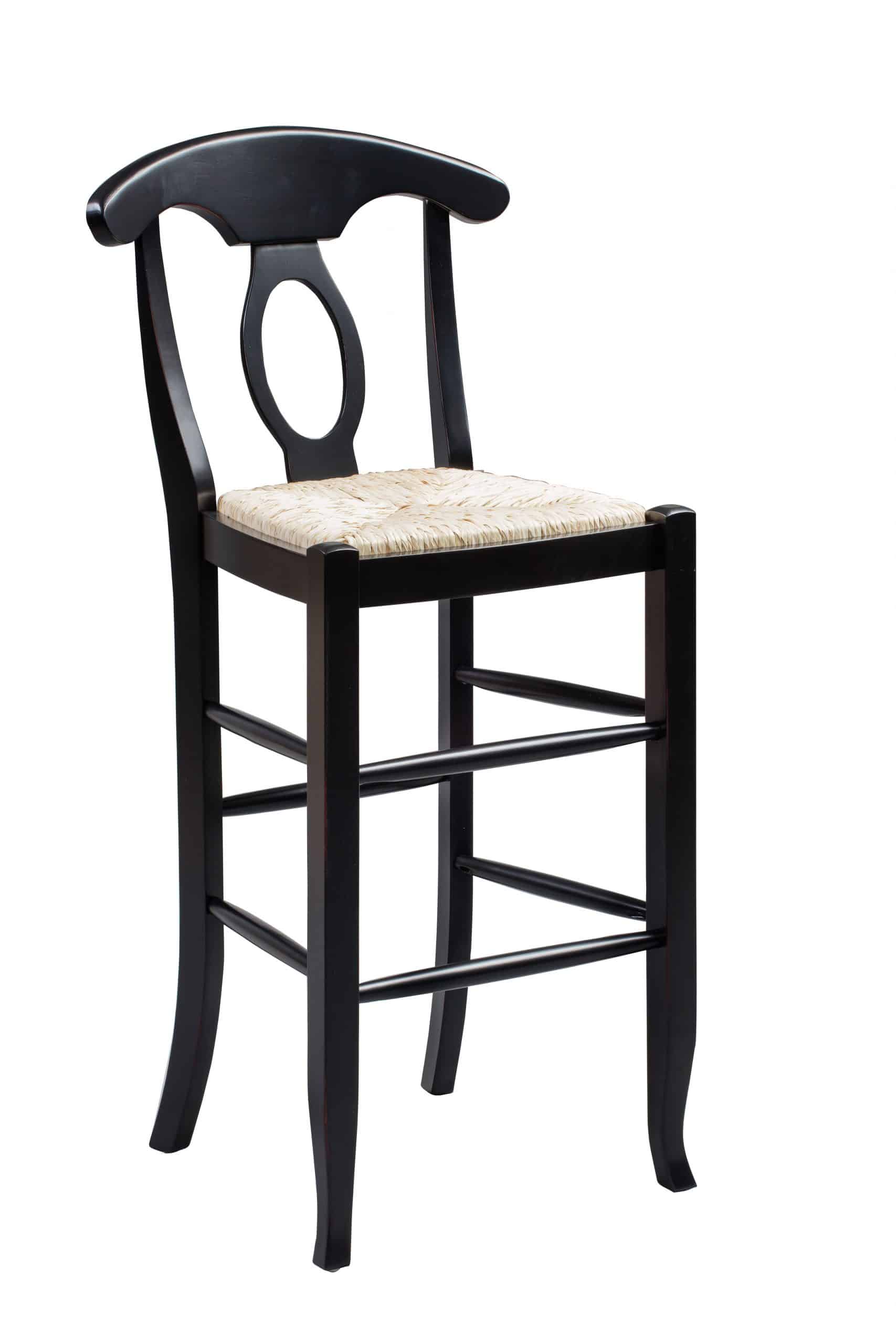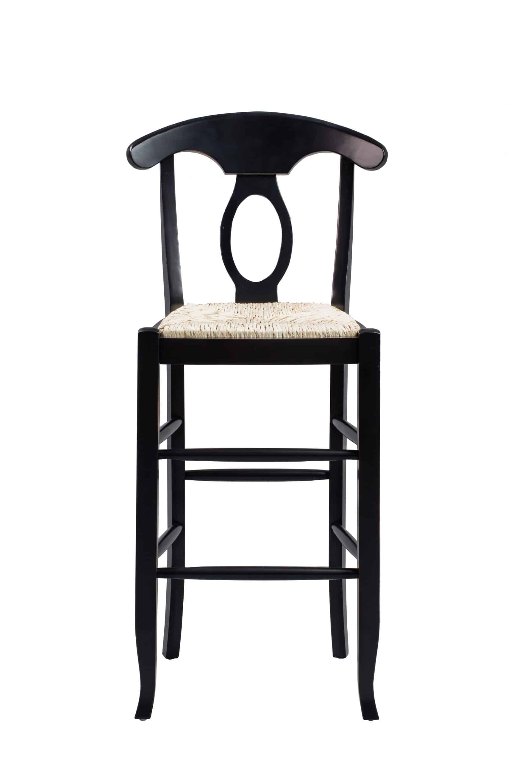 Take home the Napoleon Key Rush Barstool and experience traditional design with a twist. The curved, keyhole-style backrest is paired against a pale rush weave seat. The result is a contrast of colors and styles that looks delightful in any room or design aesthetic.
