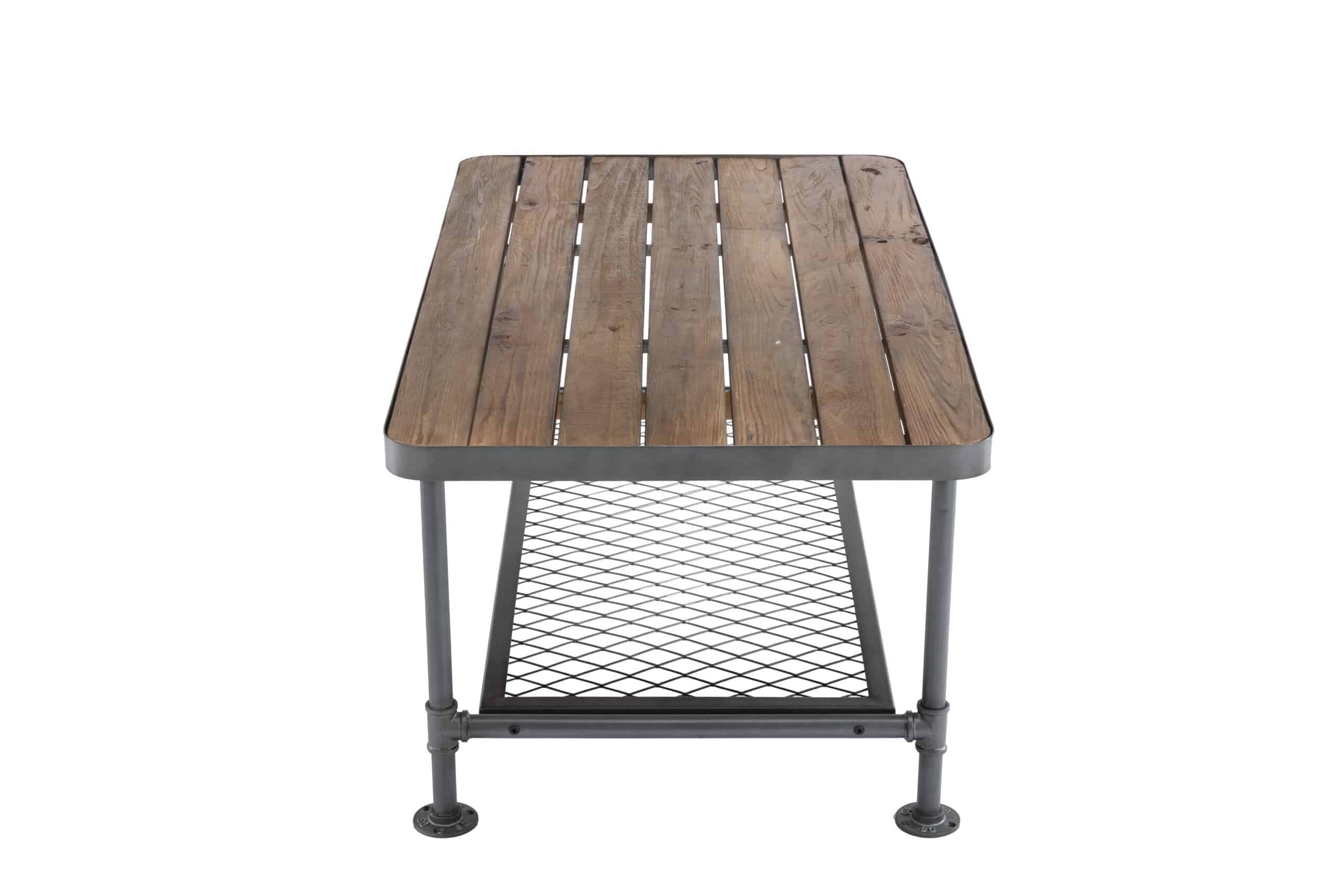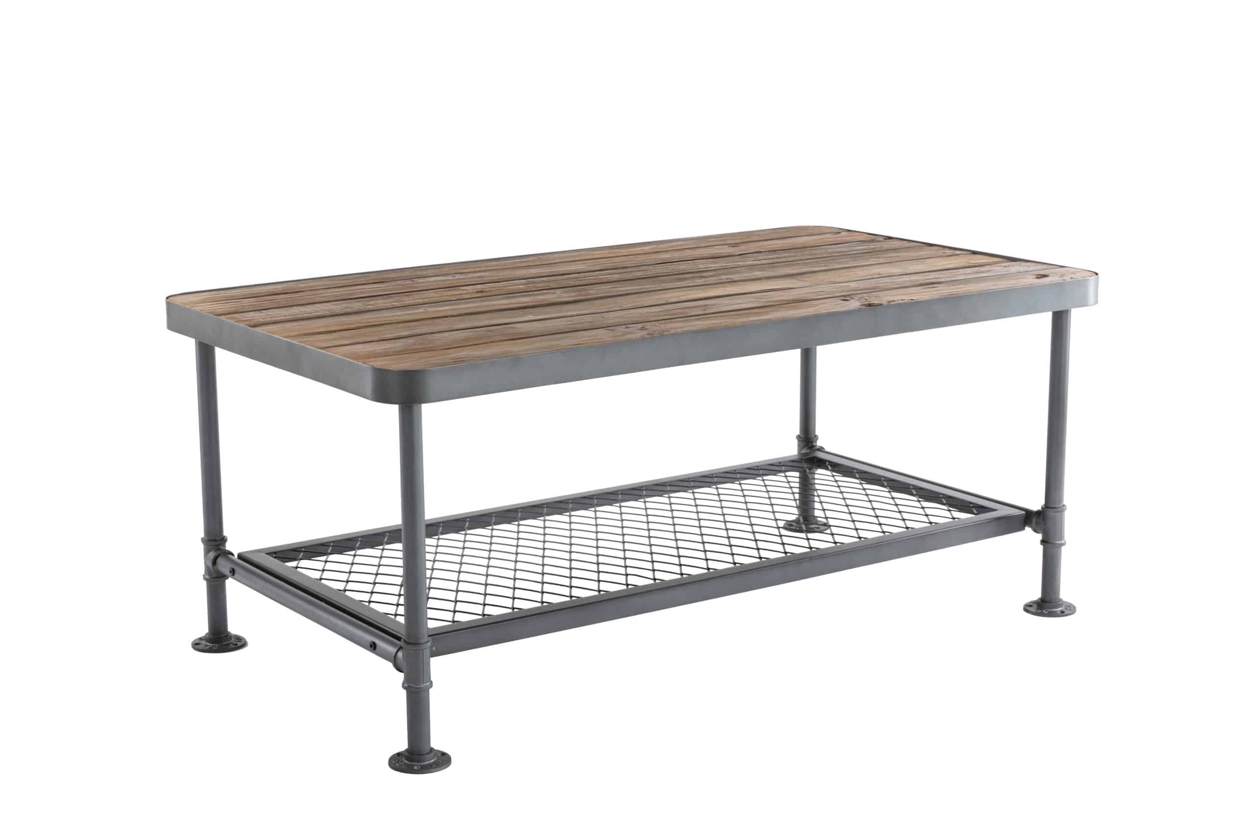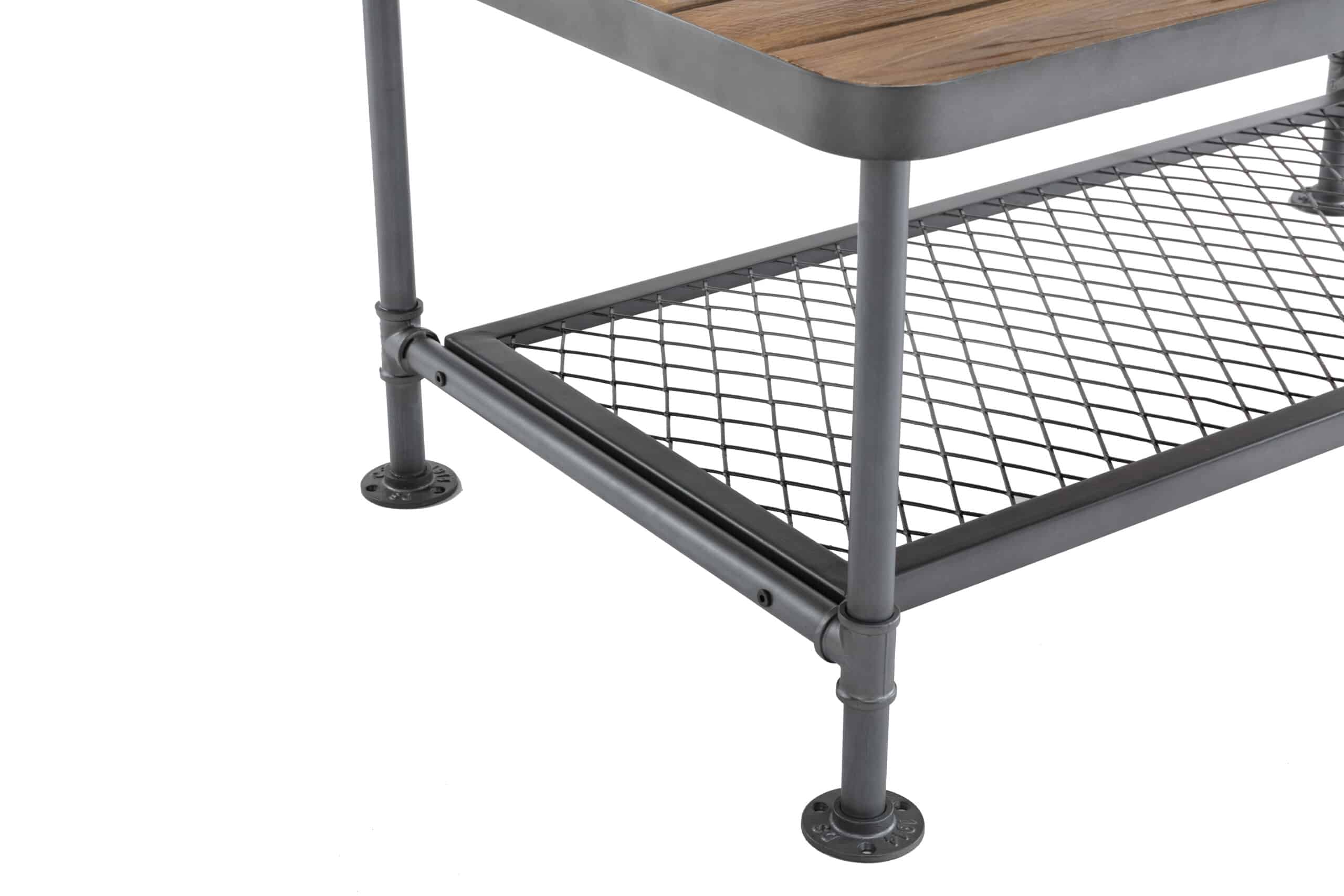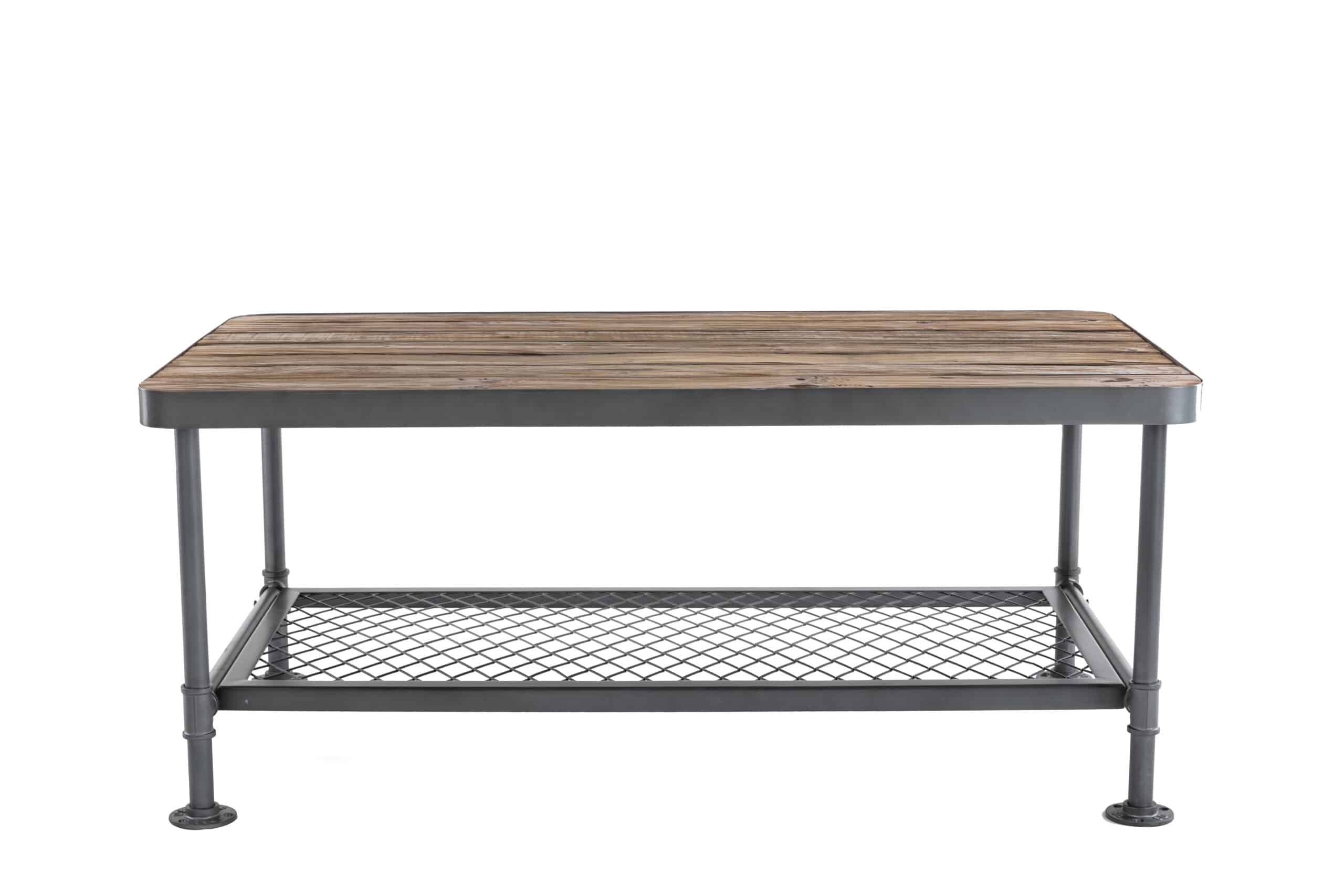 No better way to decorate your living room than bringing in the Newport Coffee Table. Made with a gray metal frame base and a natural fir wood top, the Newport Coffee Table has an industrial and tough look to it. The four legged frame also has small base like feet to ensure you are getting a sturdy table. The bottom shelf even looks like a chain link fence. Also pairs nicely with out Newport End Table (sold separately). All tools and assembly instructions are provided to ensure easy and quick assembly.
