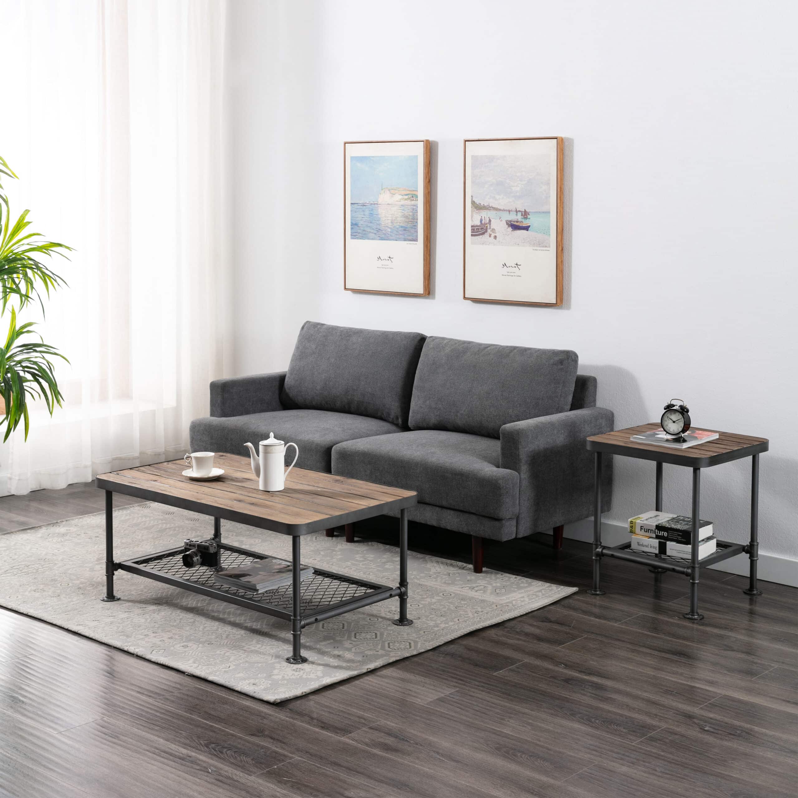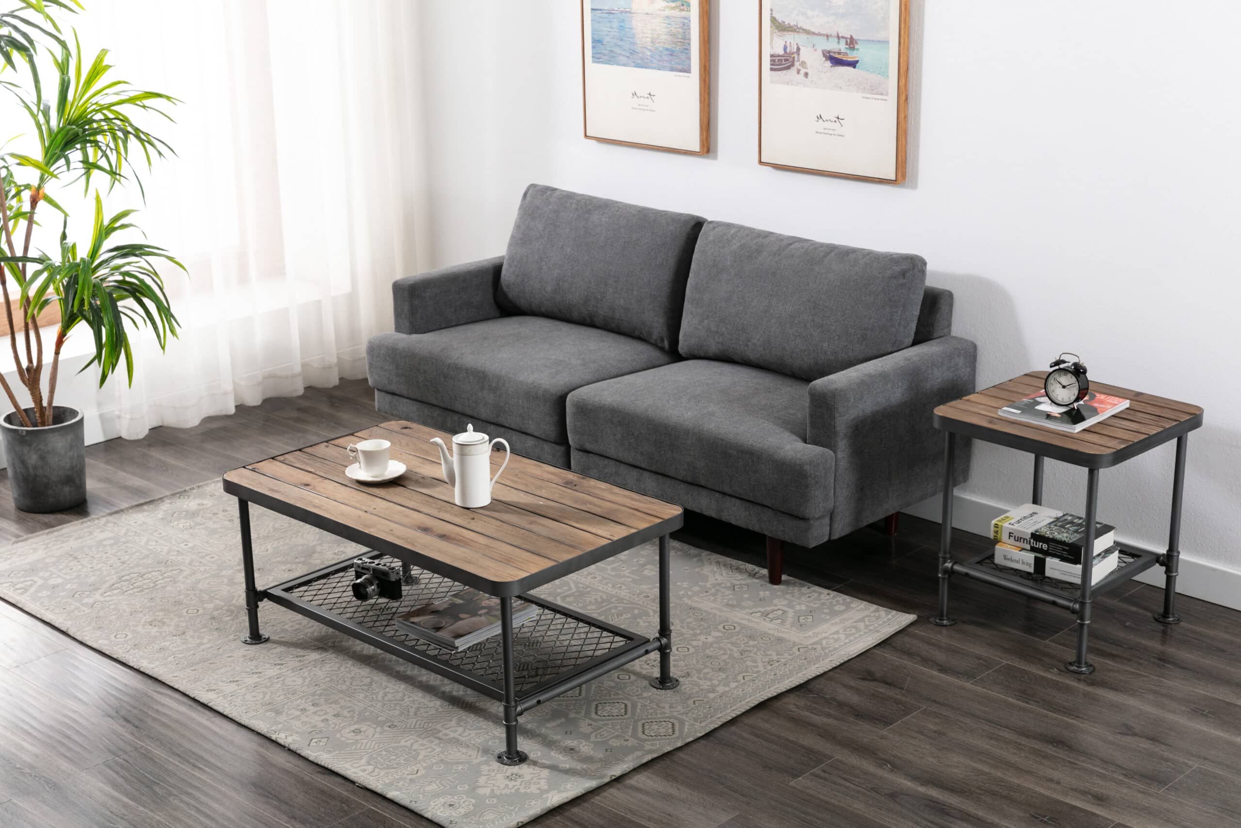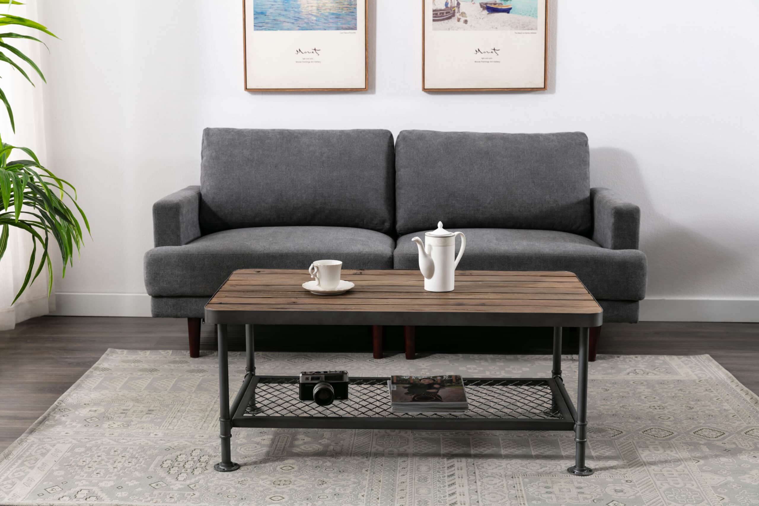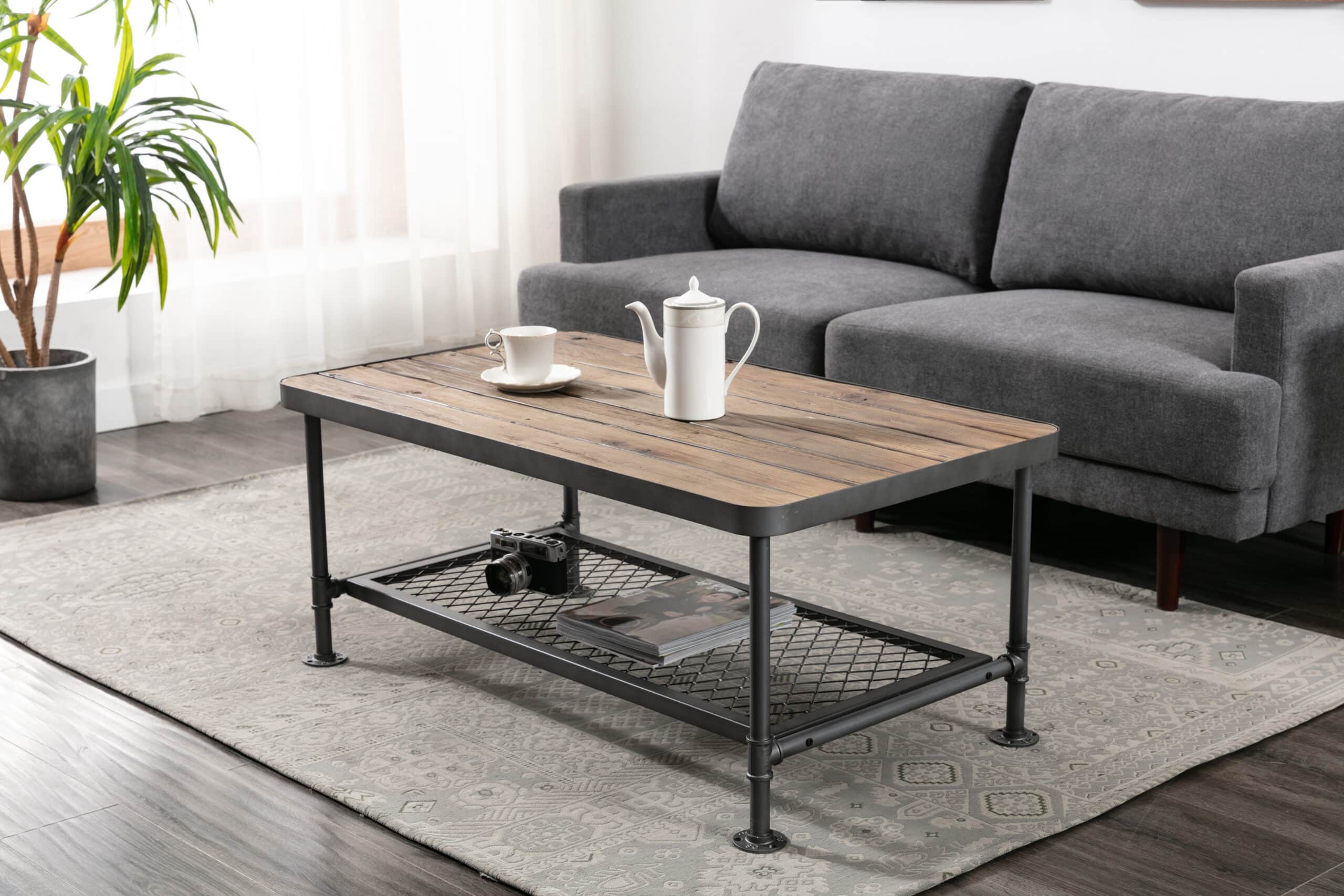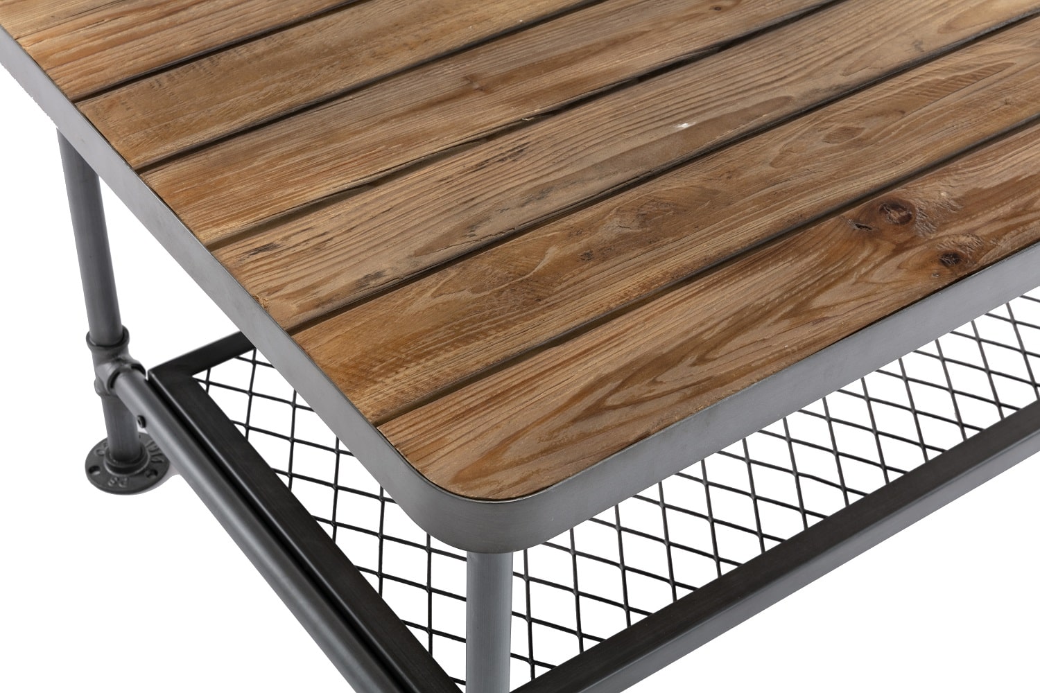 No better way to decorate your living room than bringing in the Newport Coffee Table. Made with a gray metal frame base and a natural fir wood top, the Newport Coffee Table has an industrial and tough look to it. The four legged frame also has small base like feet to ensure you are getting a sturdy table. The bottom shelf even looks like a chain link fence. Also pairs nicely with out Newport End Table (sold separately). All tools and assembly instructions are provided to ensure easy and quick assembly.