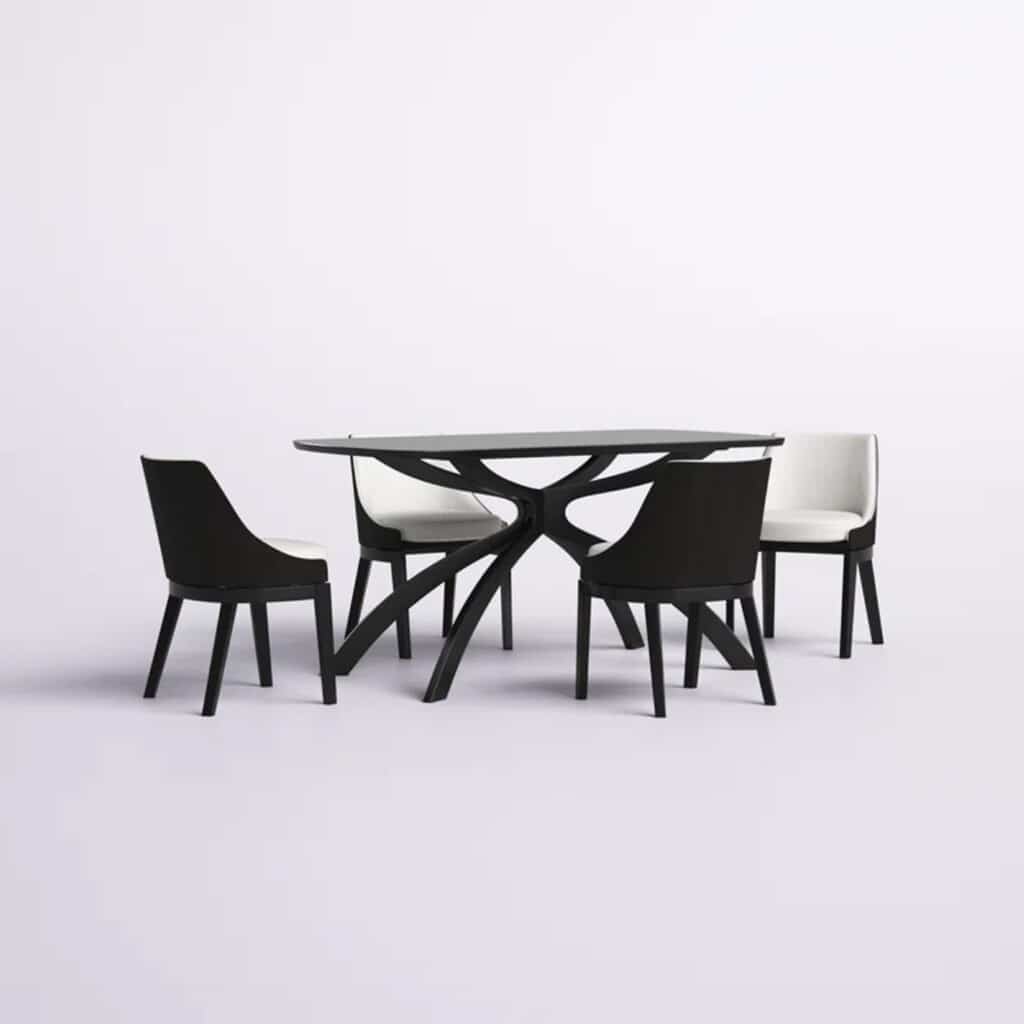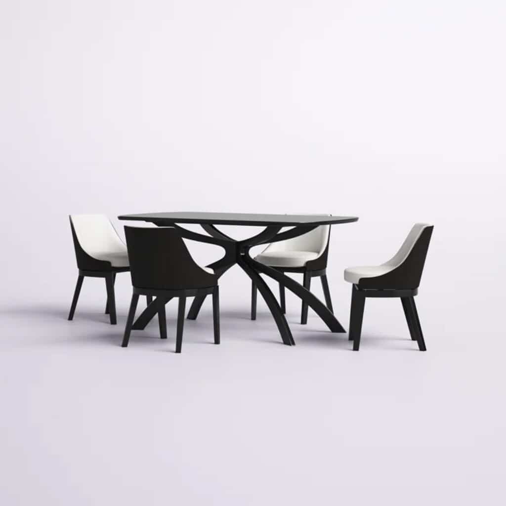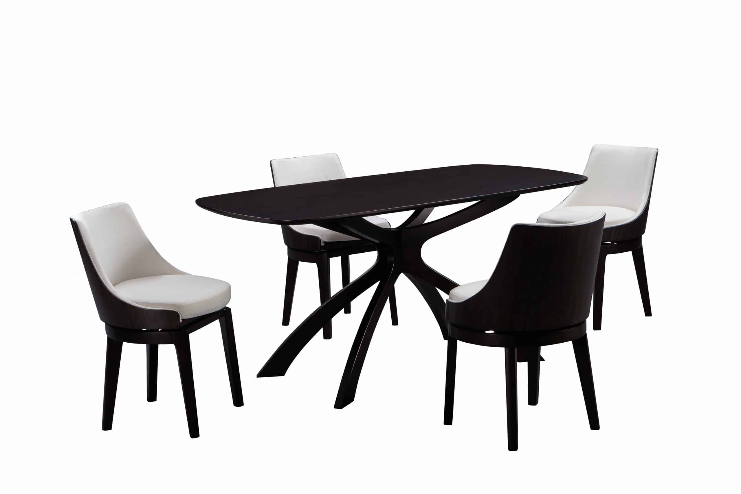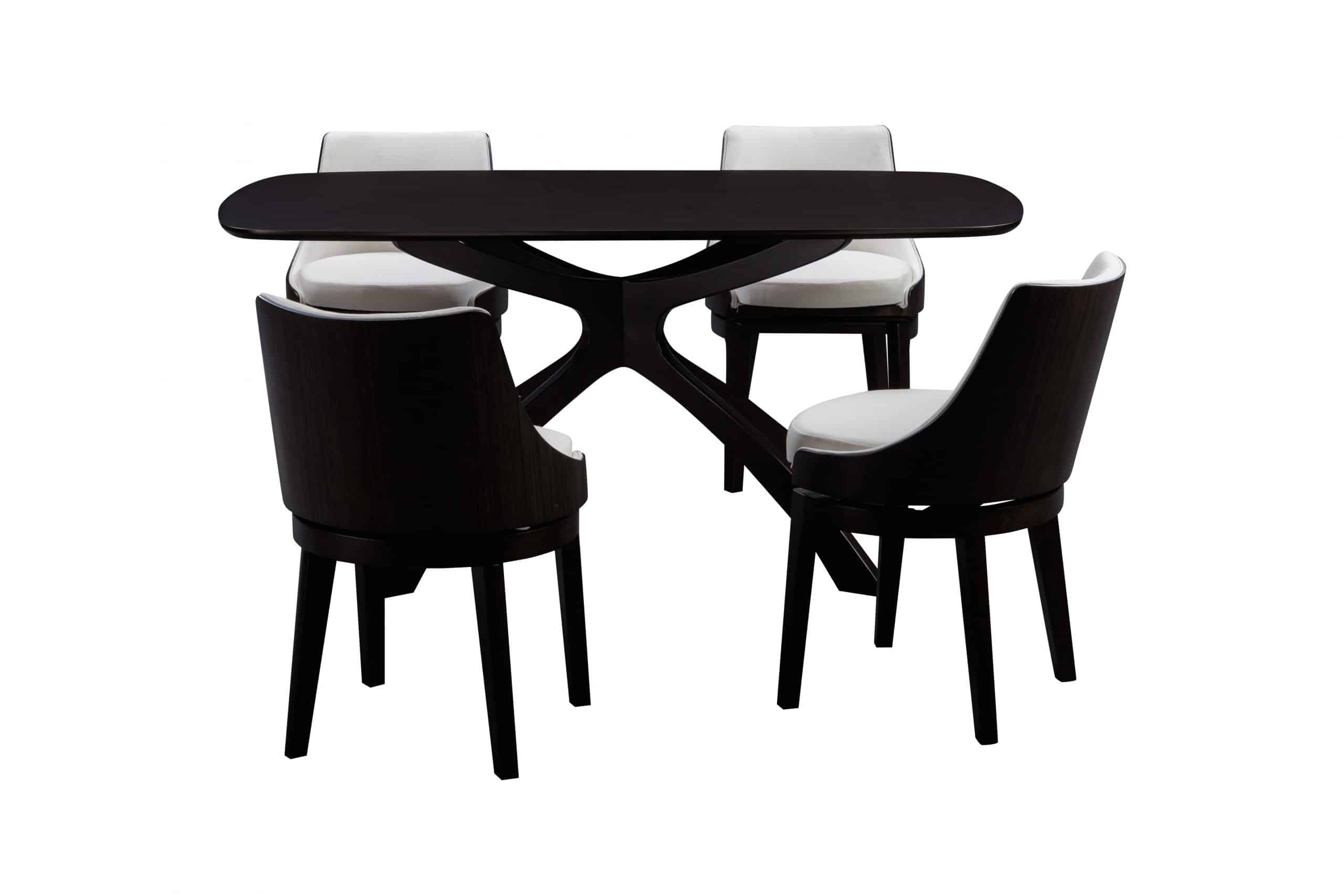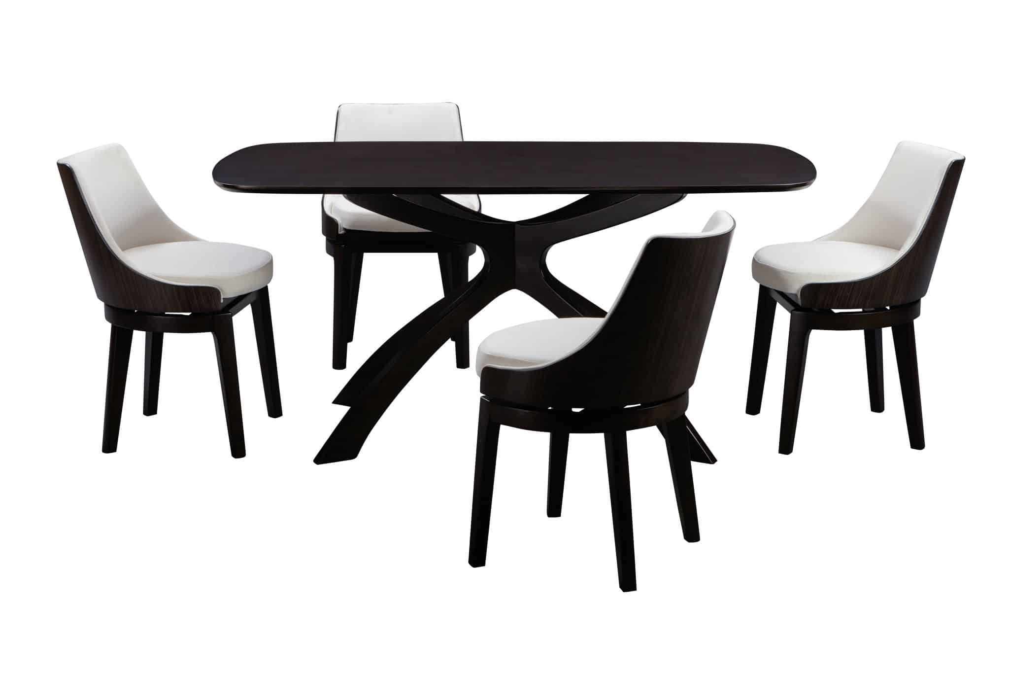 - Dining set includes 1 dining table and 4 low back swivel dining chairs