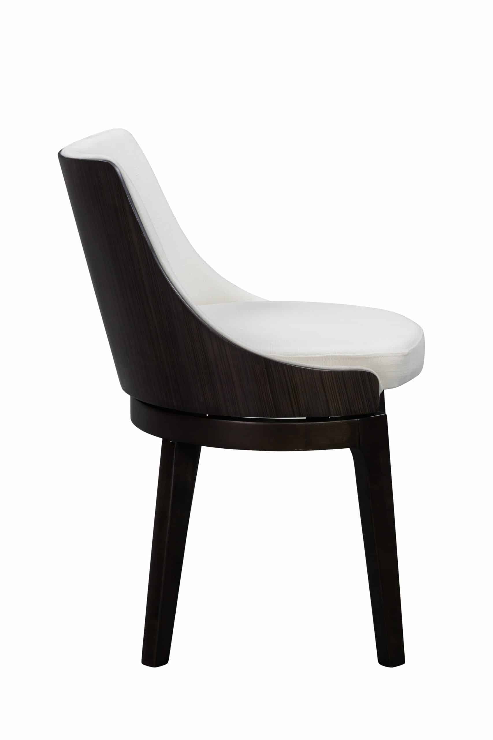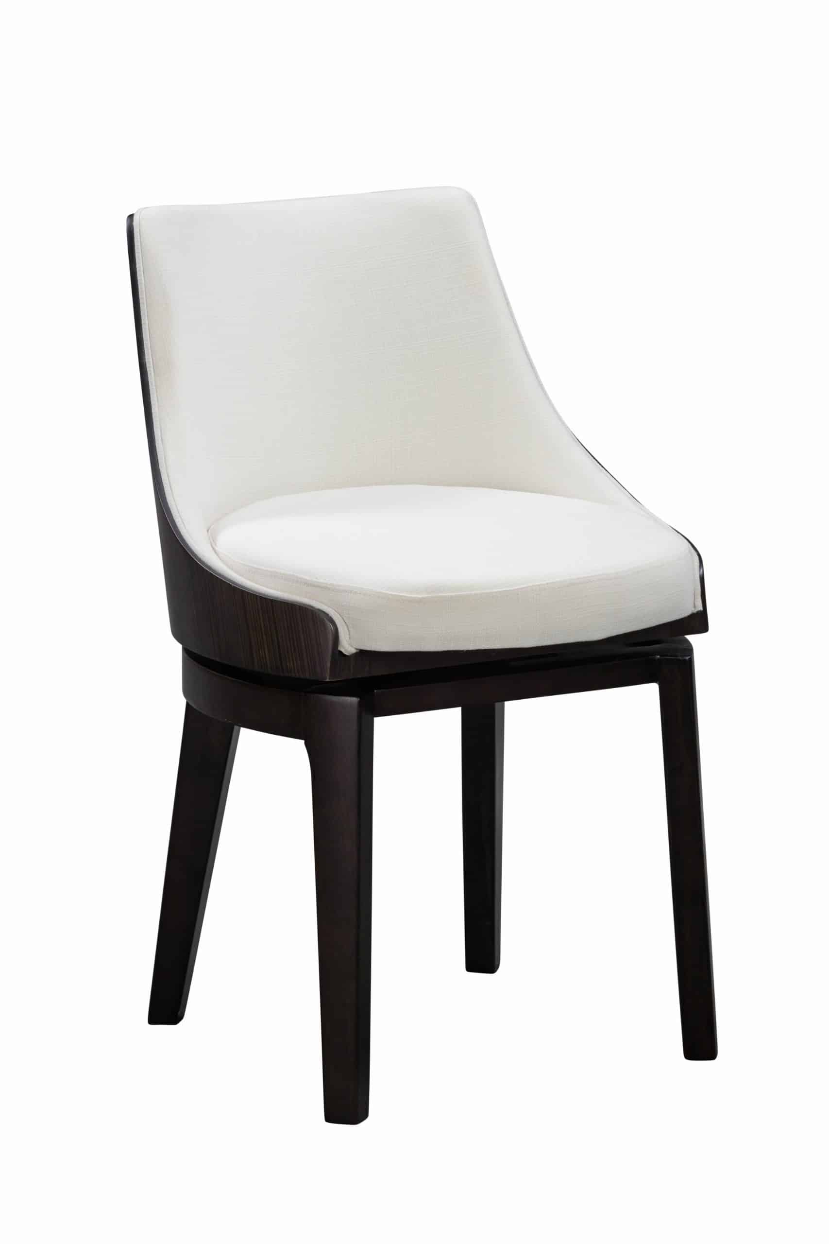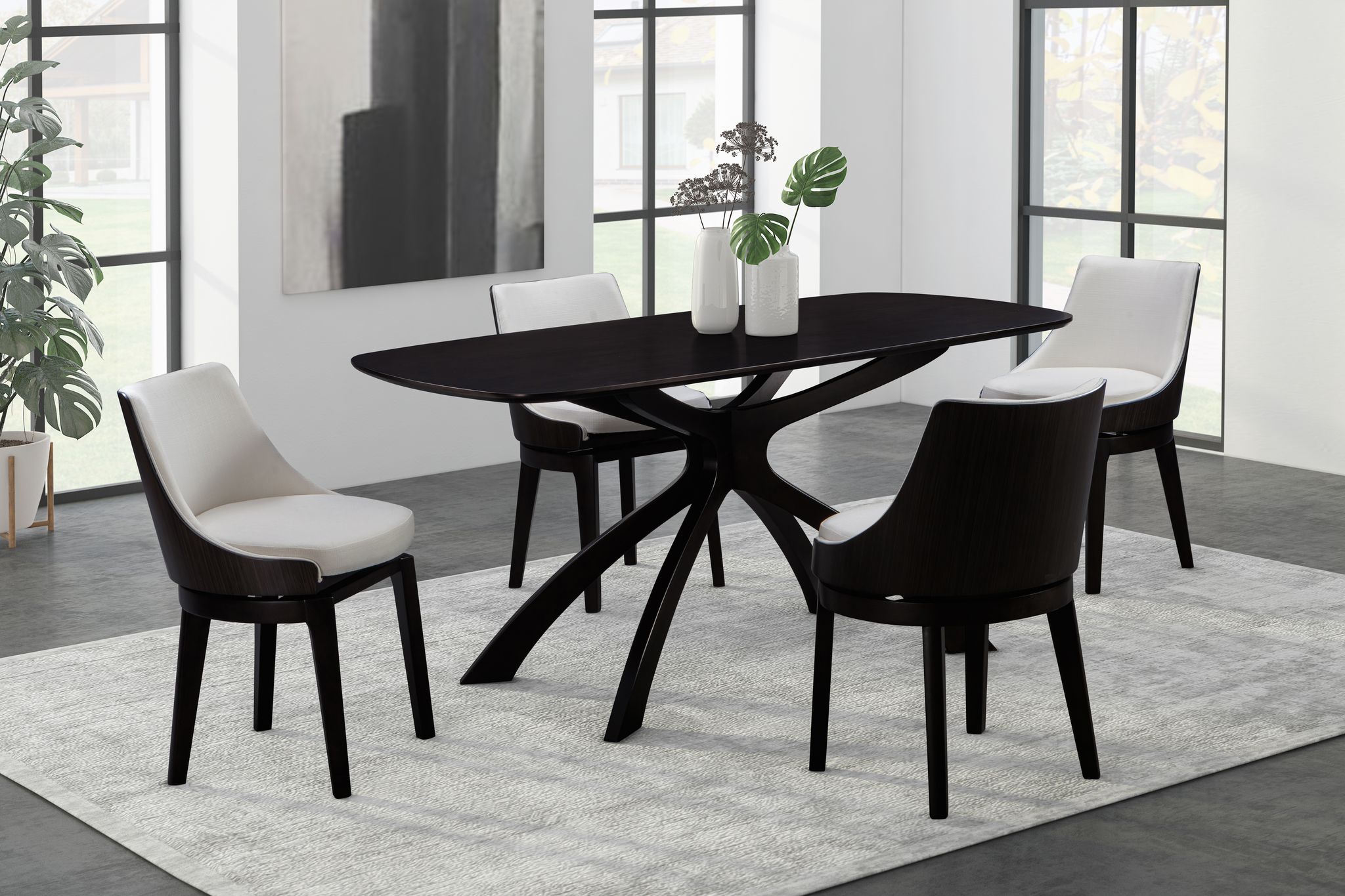 Combining a nod of mid-century design with a classy modern style, this 5pc dining set will transform your dining room. The dining table is made from a combination of Zebrano wood veneer top and rubberwood, giving a warm and spacious feel to your dining space. The table showcases an architectural crisscross base with four angled legs that form a stylized hourglass shape. Combined with the luxurious fabric upholstered swivel dining chairs, this set will shout luxury and style! The soft curves of Zebrano wood veneer back of these dining chairs highlight the elegant cream fabric, inviting you to linger at the dining table for as long as you want. The Orleans dining chairs come in low or high back dining options. The Orleans dining table comfortably seats up to 4 guests, the dining table provides generous dining space while distinguishing your room with its eye-catching design.