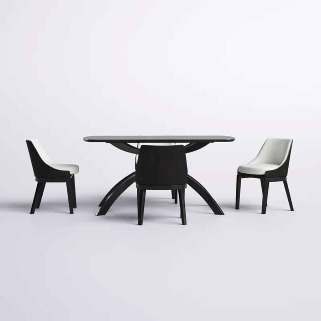 - Table and chairs are constructed with ecofriendly rubberwood and beautiful Zebrano wood veneer in matte black finish