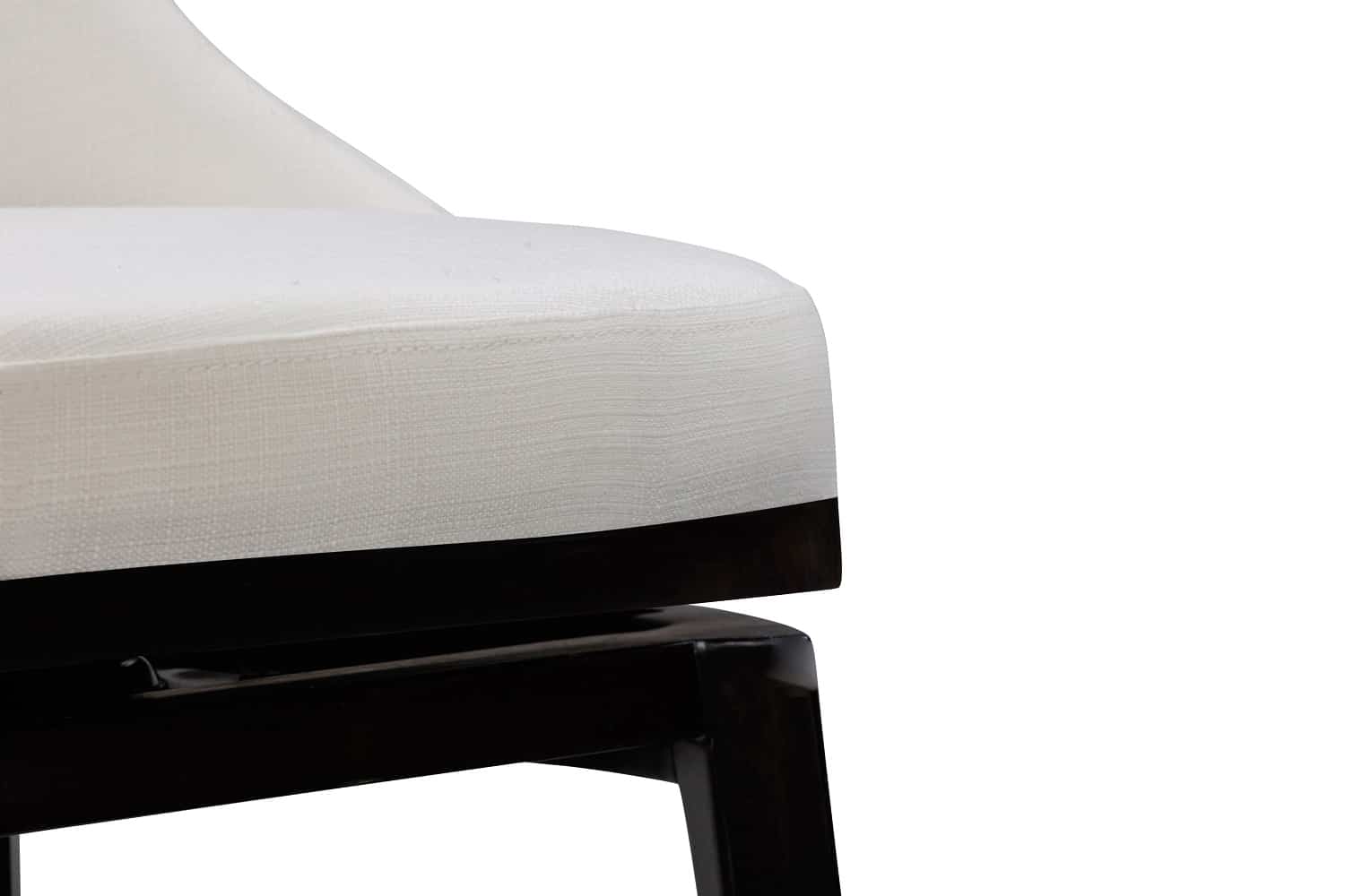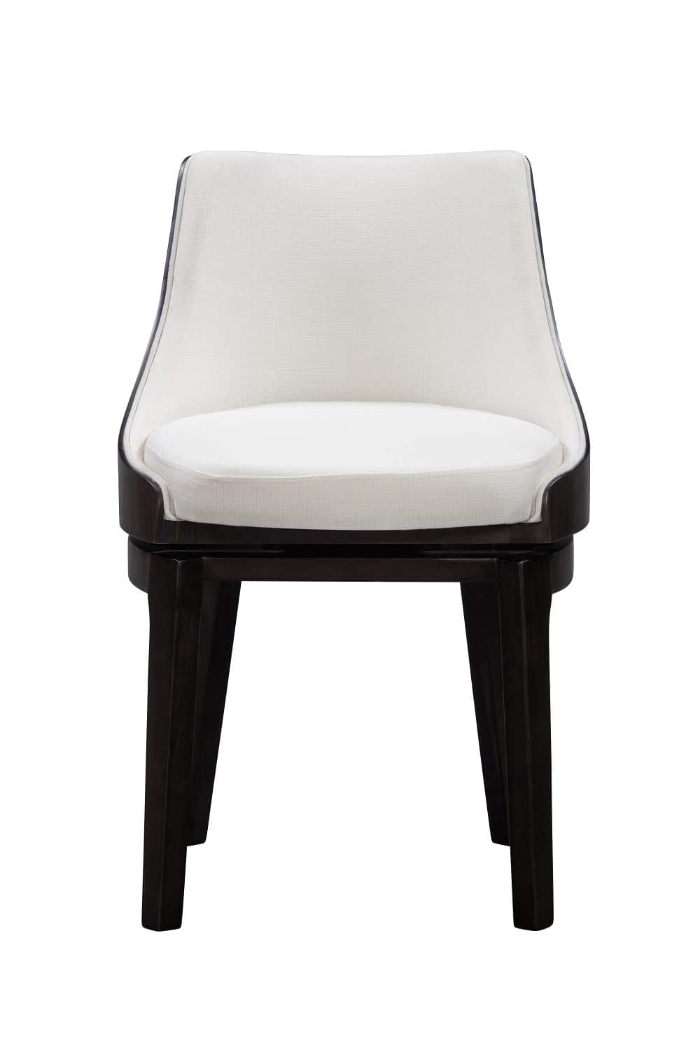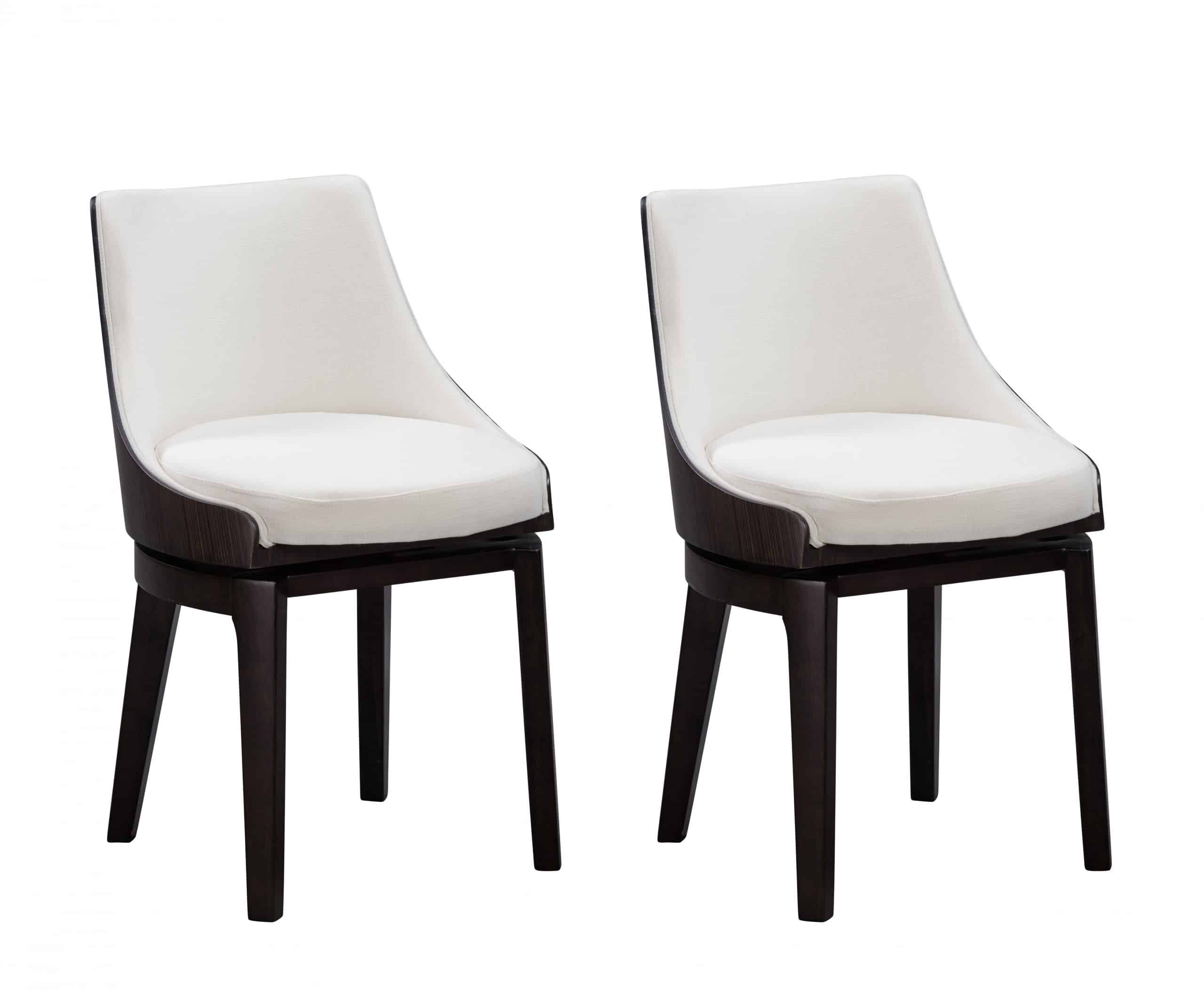 Elegant and eye-catching, these stunning Orleans Swivel Dining Chairs from Boraam Industries are the perfect addition to any space and will brighten your home! The soft curves of the Zebrano wood veneer of this dining chair highlight the elegant cream fabric upholstery, inviting you to linger at the dining table for as long as you want. The 360° swivel feature allows you to easily get in and out of the dining table without having to pull the chair out every time – providing convenience for daily life. High density foam cushion seat and back and the soft, rounded edges give these chairs a sculptural aesthetic that makes them a welcome addition to your home. Great for dining rooms, but so versatile that it can fit in almost every room of the house. The Orleans dining chairs comes as a set of 2.
