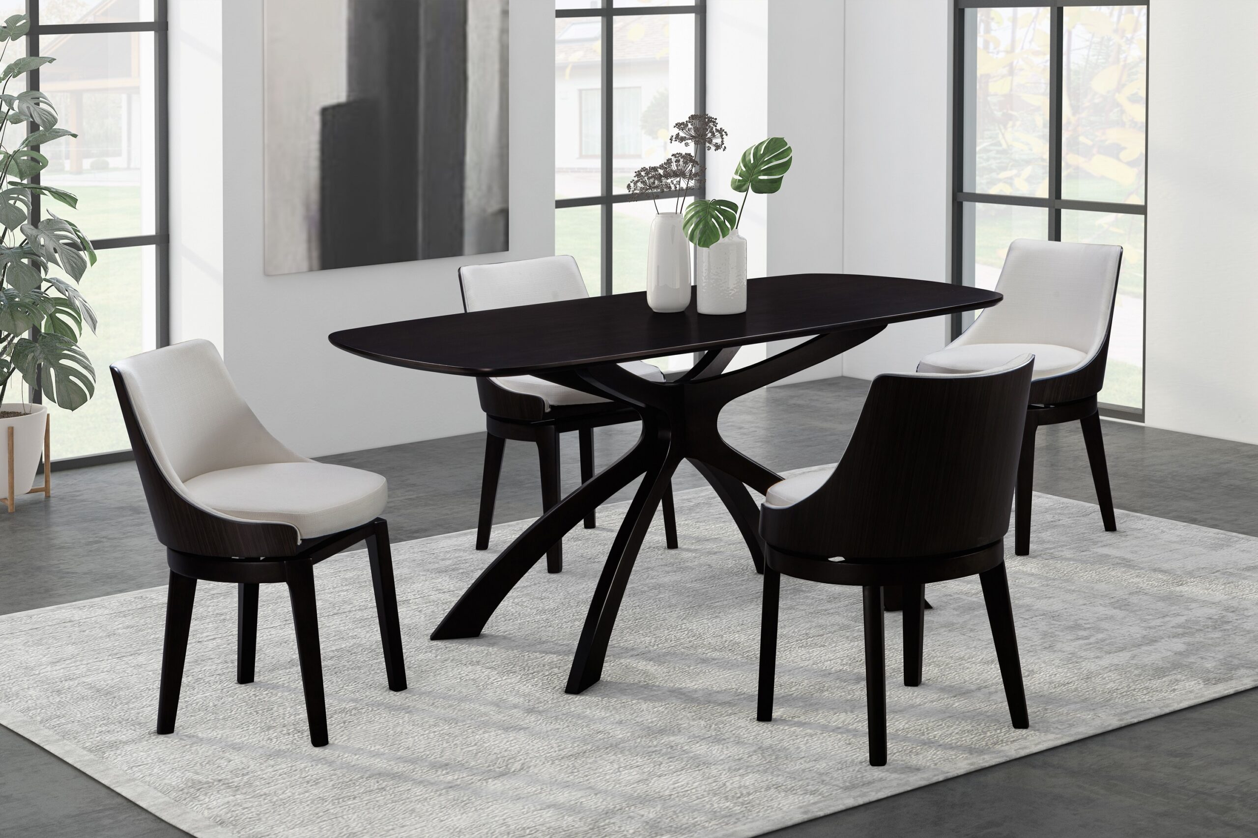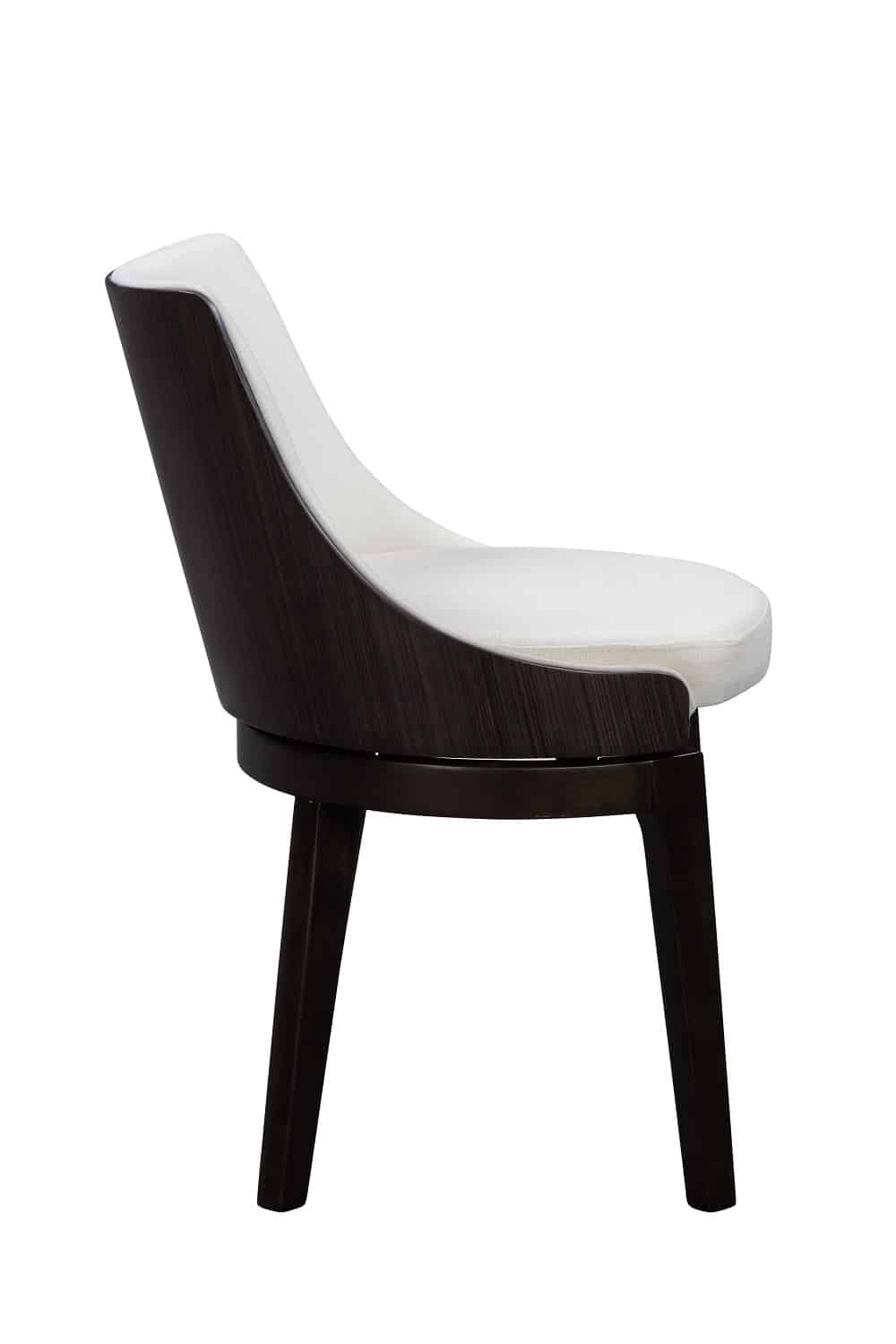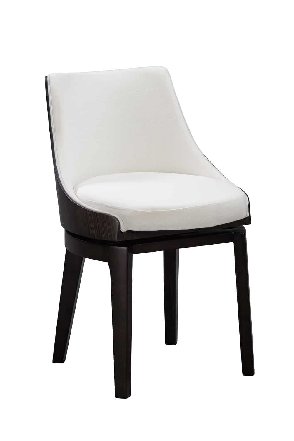 Elegant and eye-catching, these stunning Orleans Swivel Dining Chairs from Boraam Industries are the perfect addition to any space and will brighten your home! The soft curves of the Zebrano wood veneer of this dining chair highlight the elegant cream fabric upholstery, inviting you to linger at the dining table for as long as you want. The 360° swivel feature allows you to easily get in and out of the dining table without having to pull the chair out every time – providing convenience for daily life. High density foam cushion seat and back and the soft, rounded edges give these chairs a sculptural aesthetic that makes them a welcome addition to your home. Great for dining rooms, but so versatile that it can fit in almost every room of the house. The Orleans dining chairs comes as a set of 2.