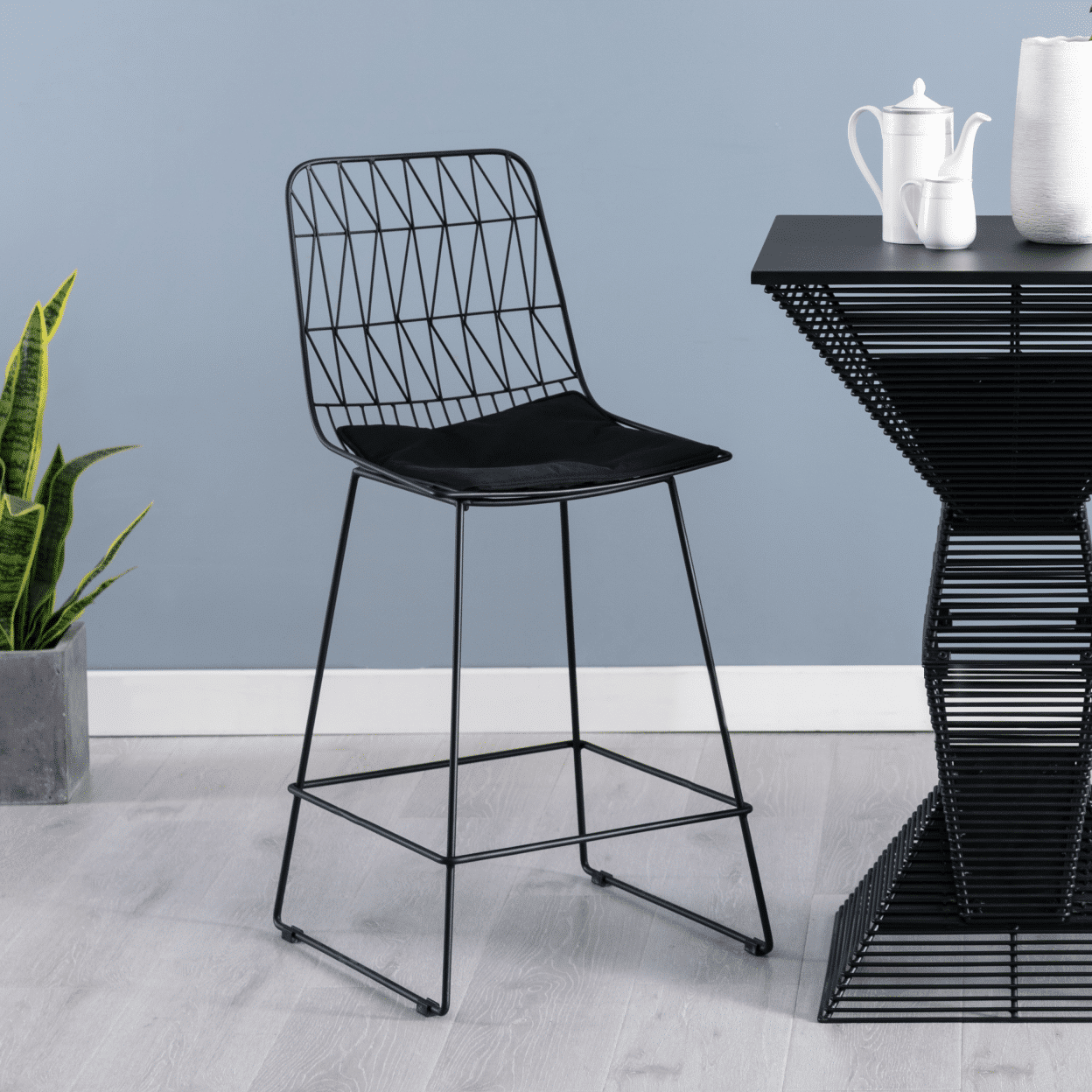 - Shiny silver chrome steel base and footrest