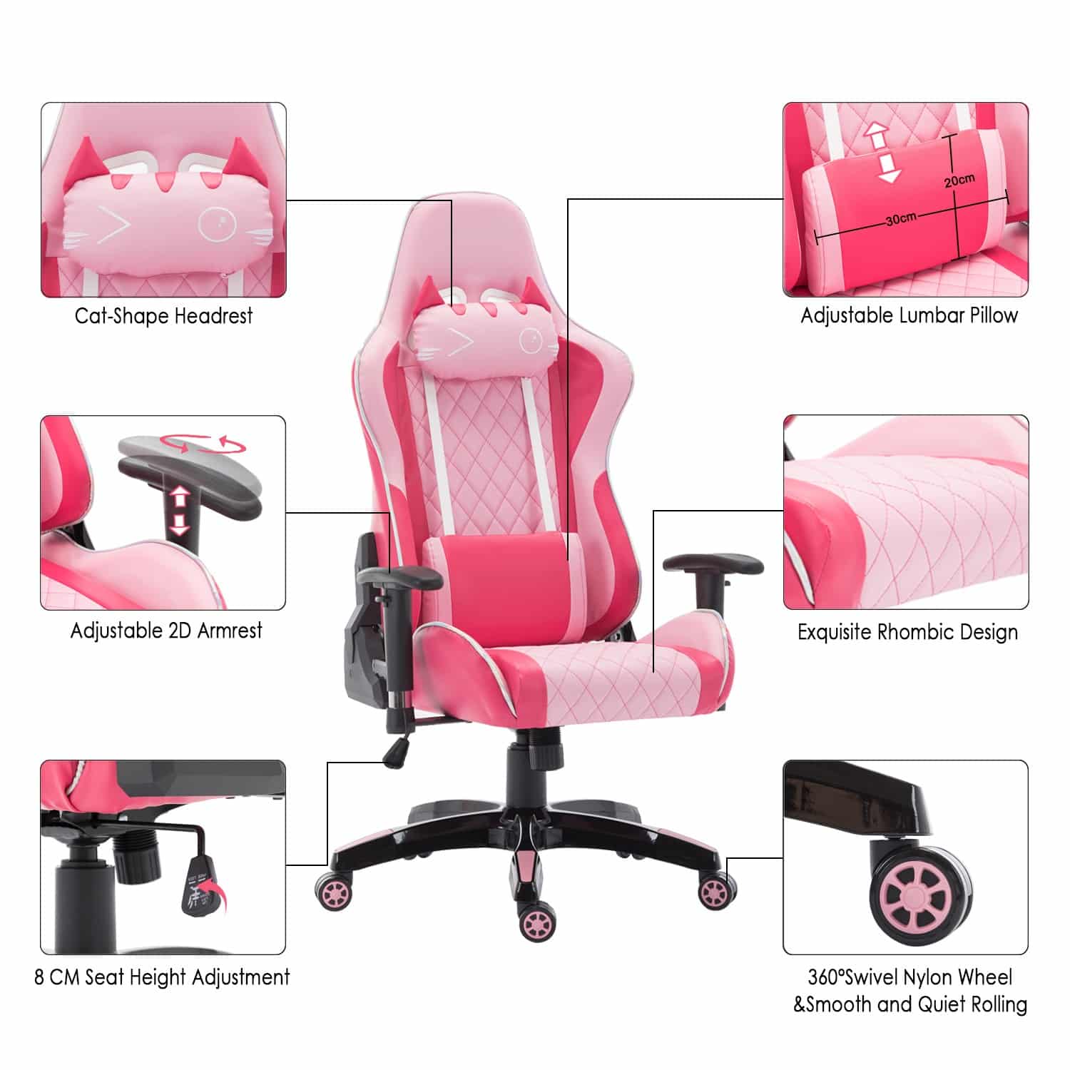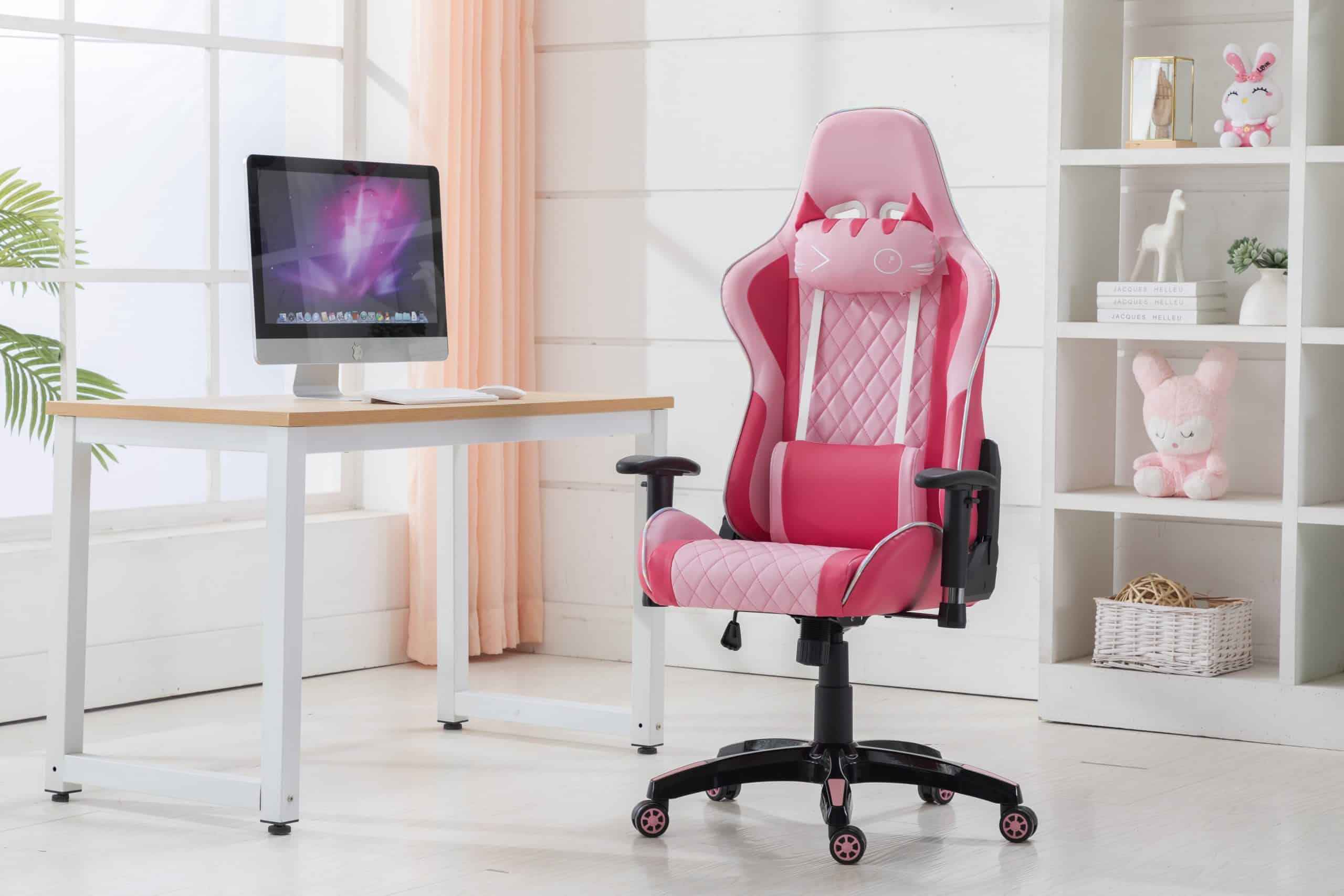 This office chair is constructed with a metal base and fabric seating. The base and arms are black and the seat and backrest is a pink finish. The height is adjustable, and this chair has 5 casters for mobility. Assembly is required.