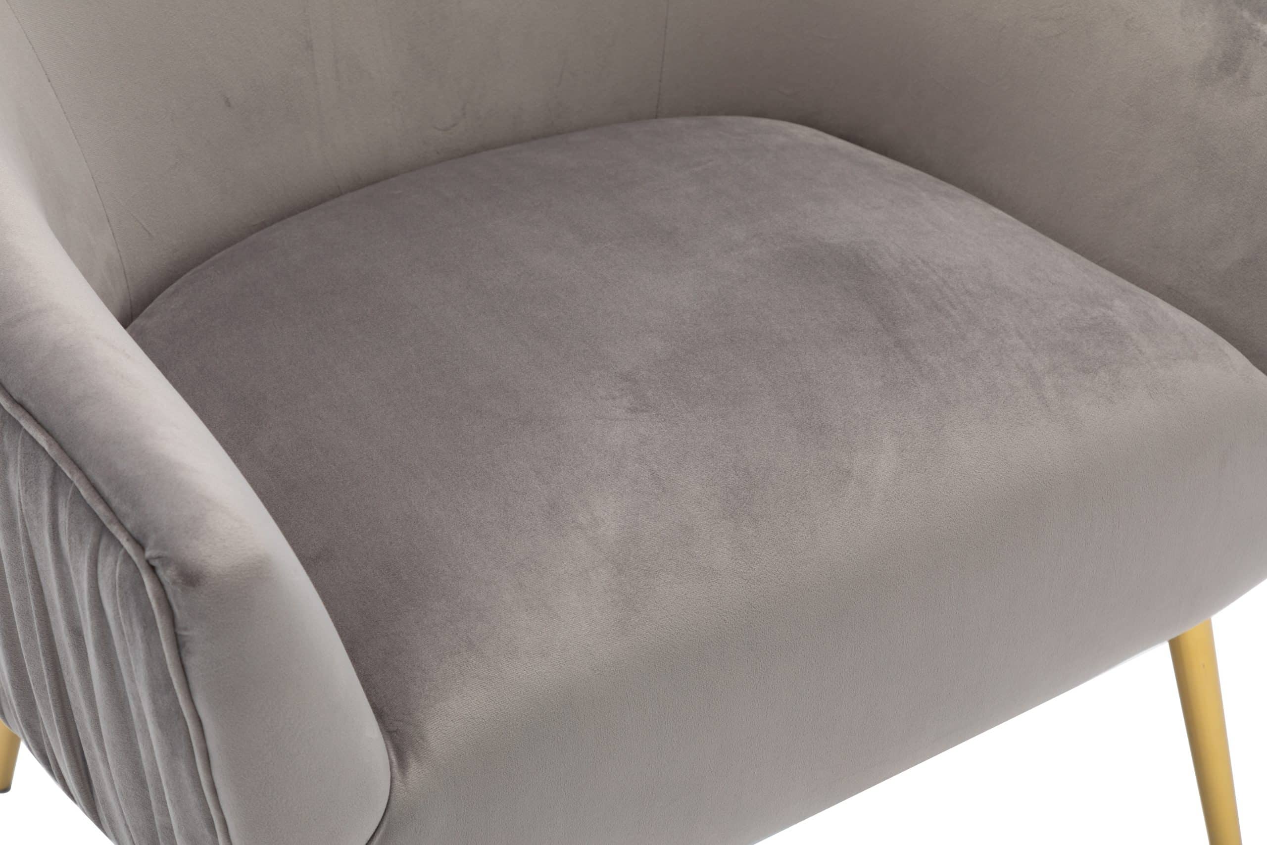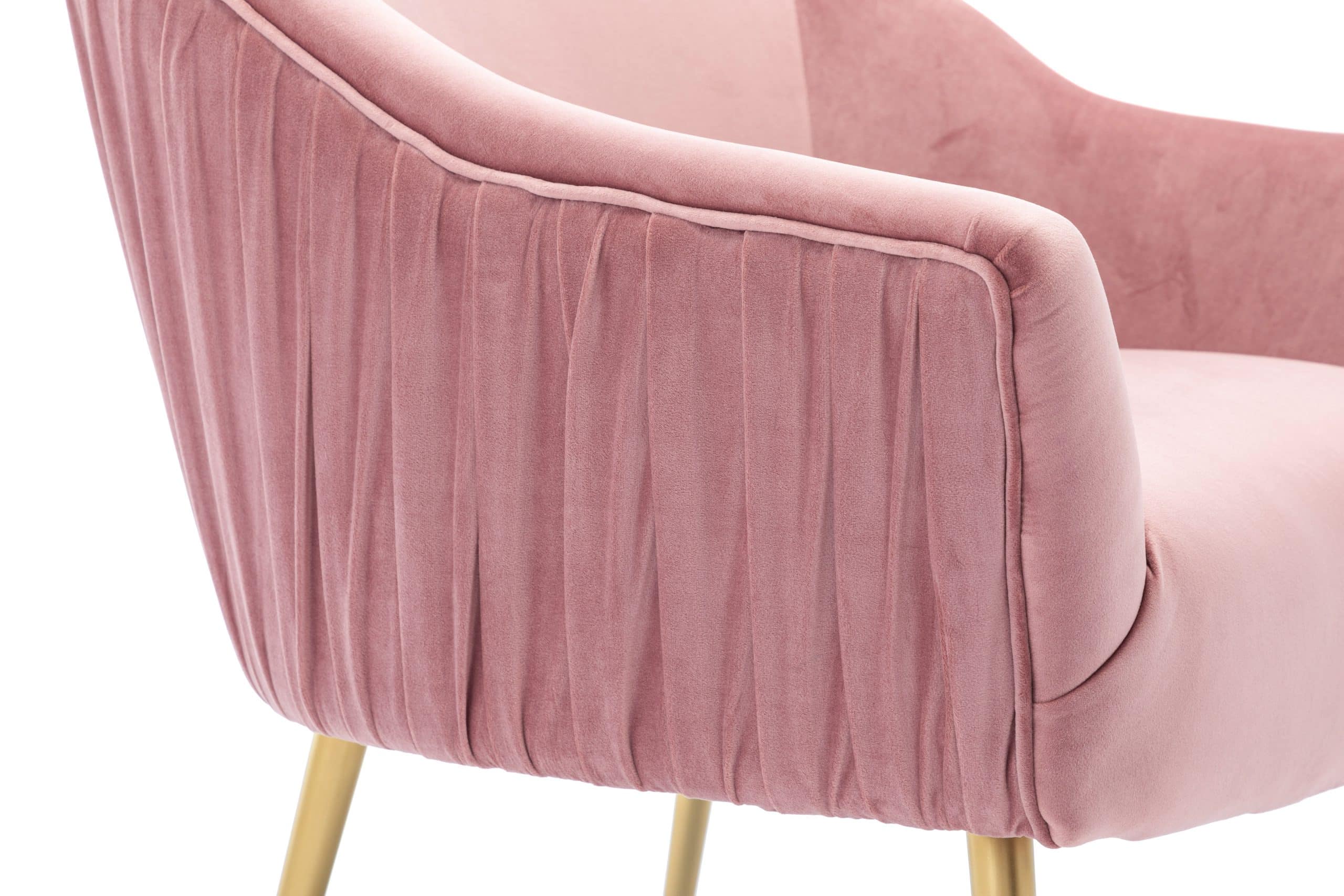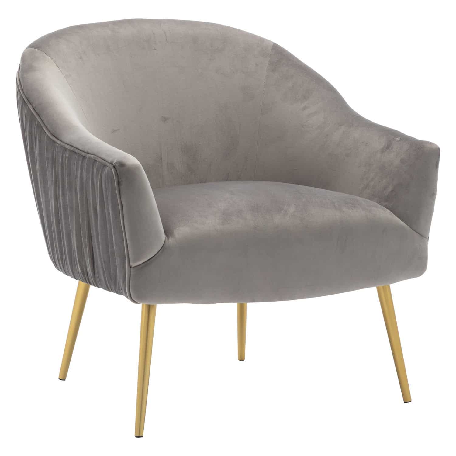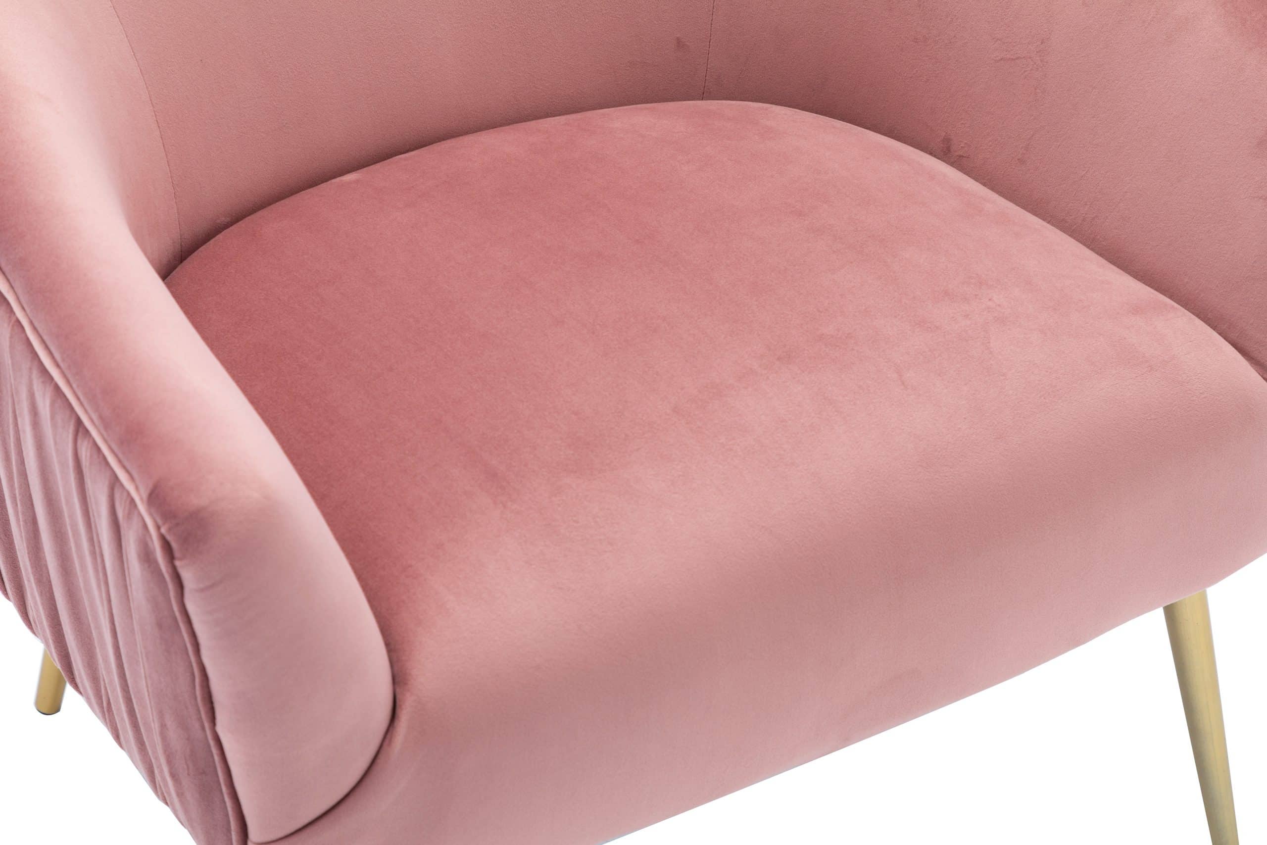 The Polyester & Iron Accent Chair is available in three finishes; blue, gray, and pink. It is constructed with a rubber wood frame, polyester seating, and iron legs. The backrest and seat are both padded for extra comfort. Ships one chair per carton and it is ready to be assembled upon delivery.