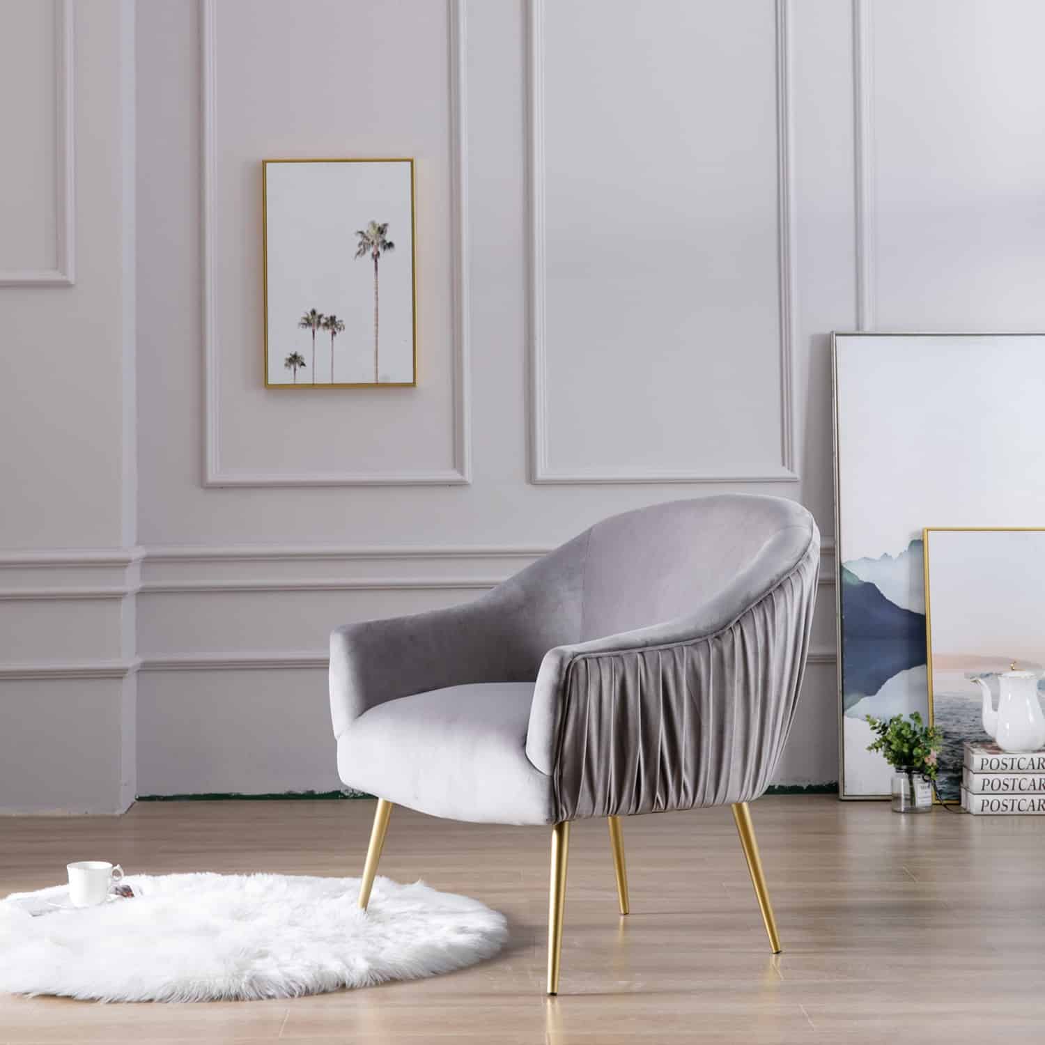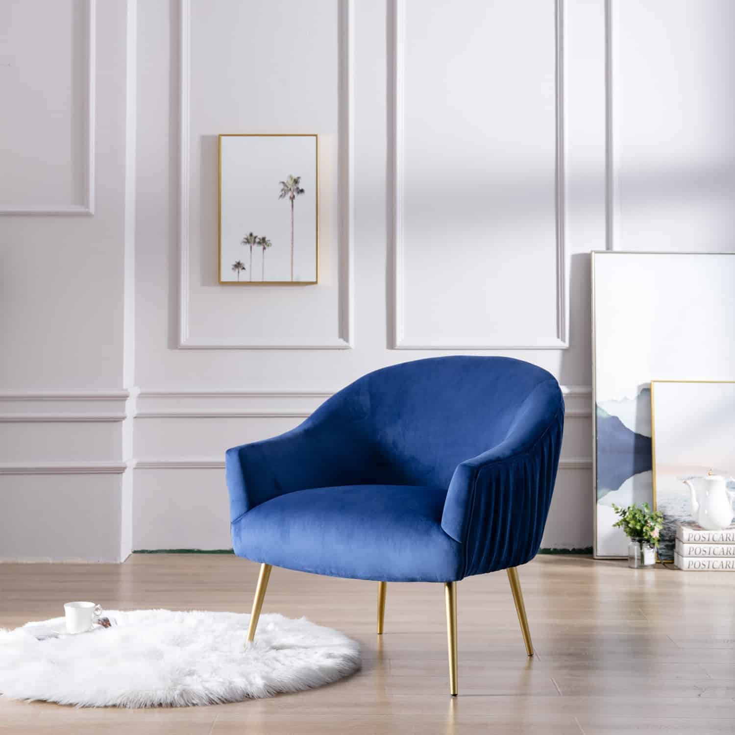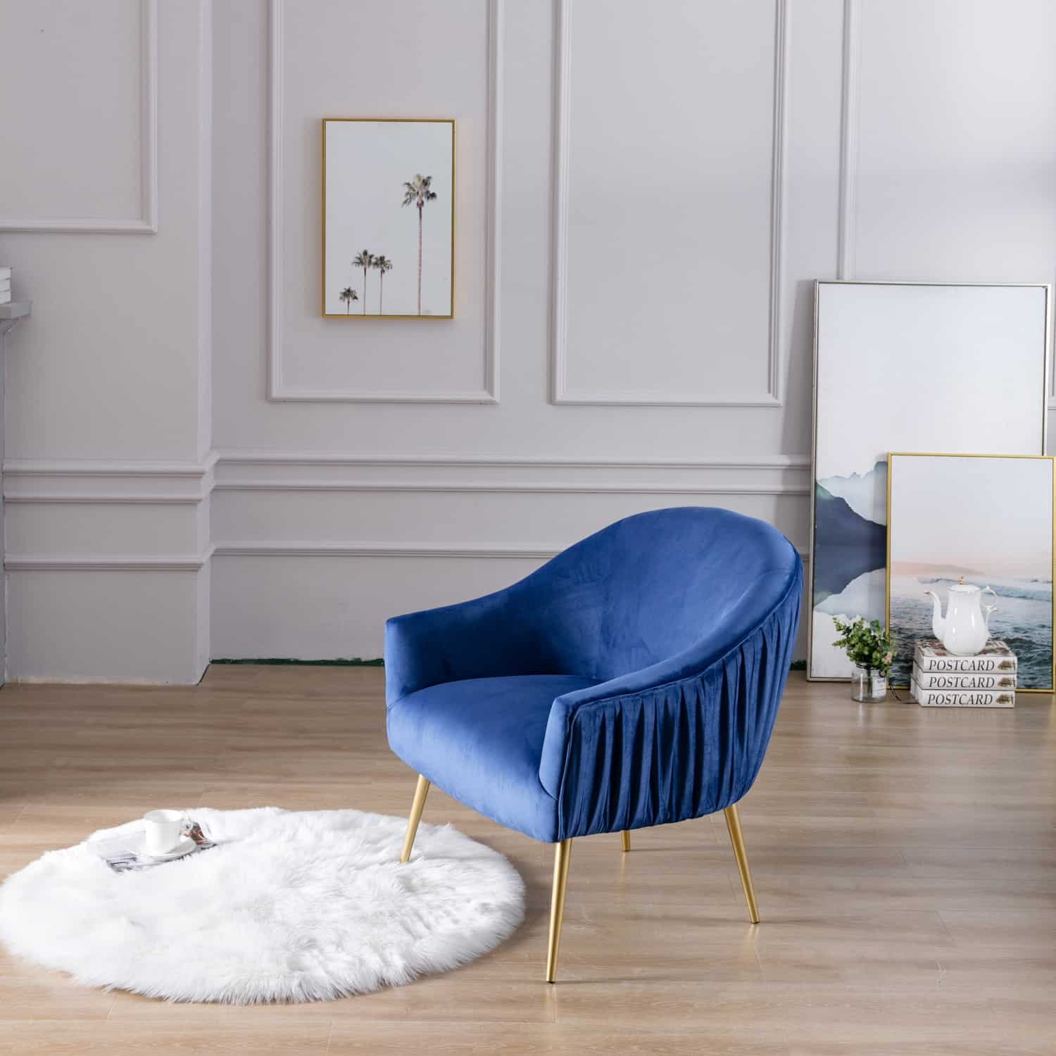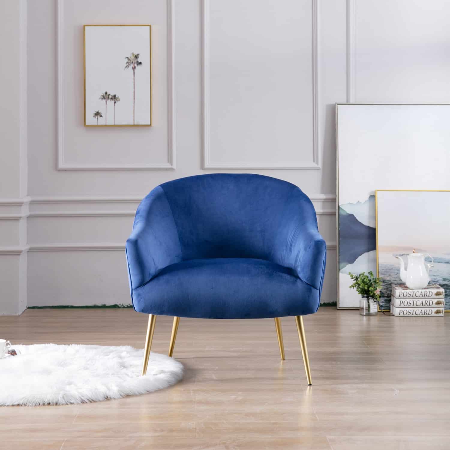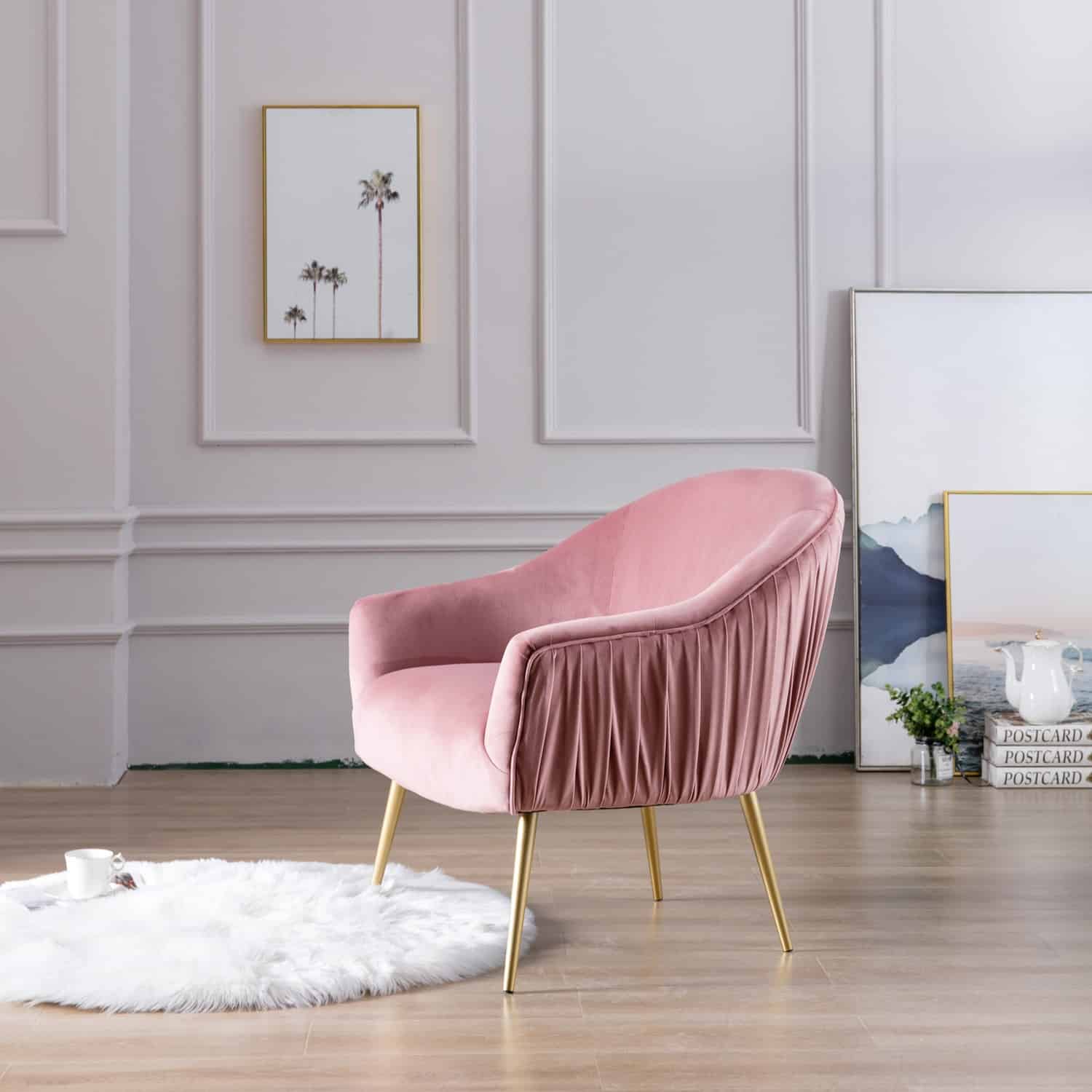 The Polyester & Iron Accent Chair is available in three finishes; blue, gray, and pink. It is constructed with a rubber wood frame, polyester seating, and iron legs. The backrest and seat are both padded for extra comfort. Ships one chair per carton and it is ready to be assembled upon delivery.