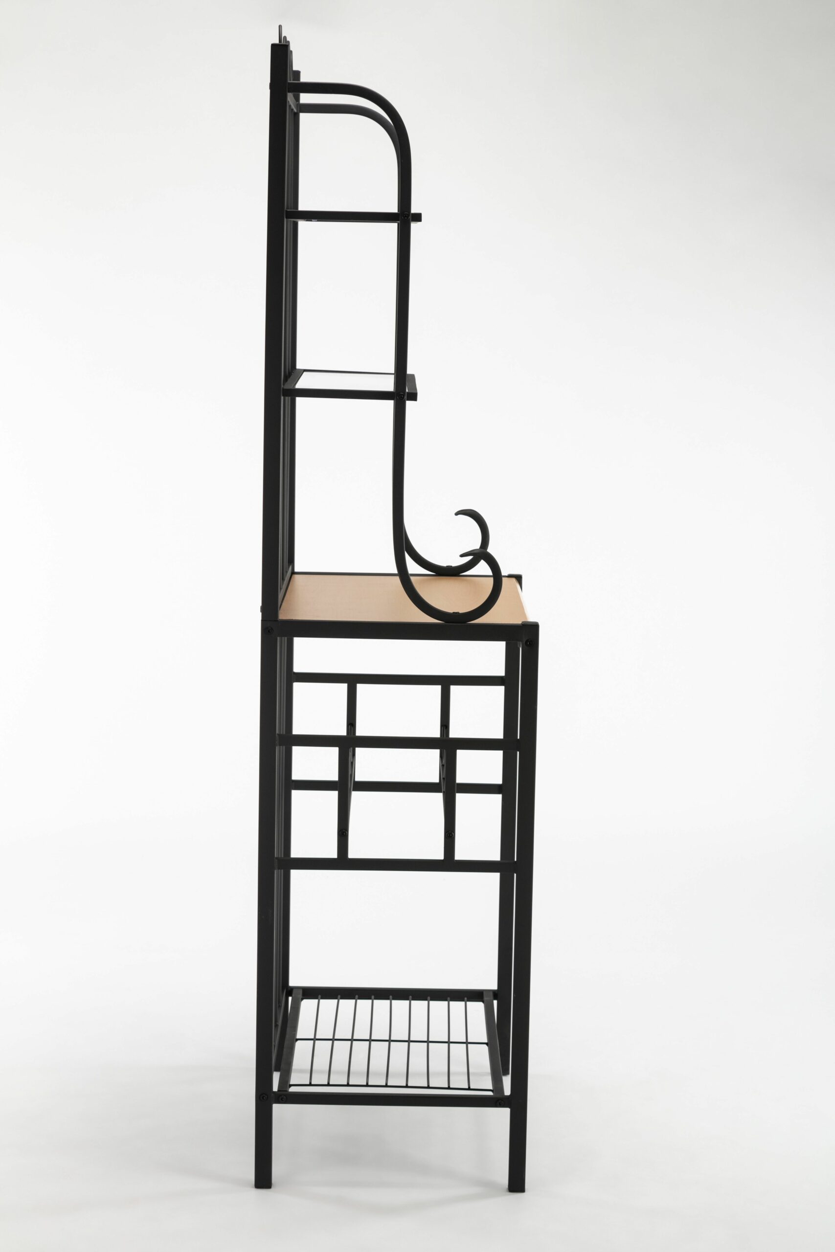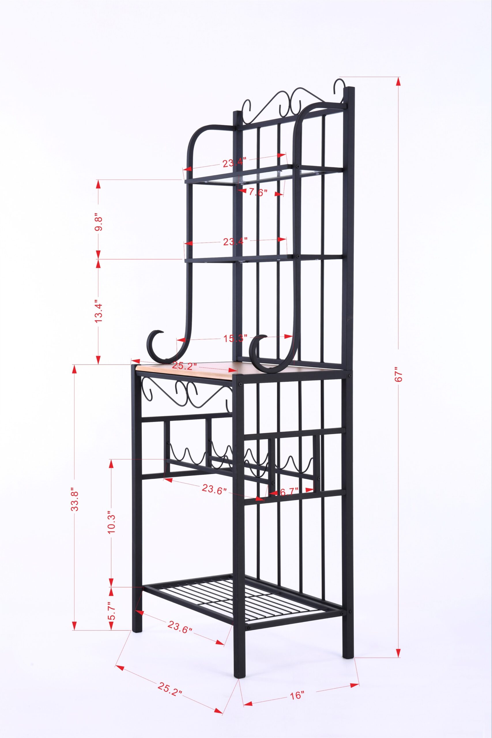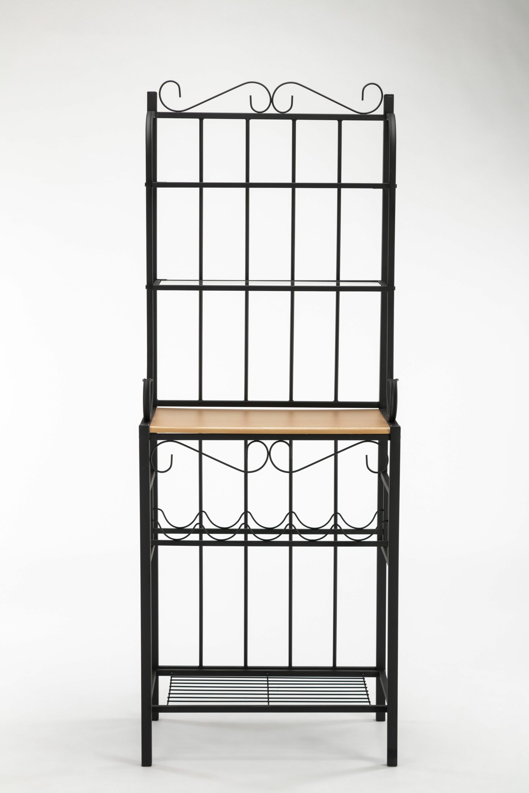 Complete your dream kitchen with the Praha Baker’s Rack. Built from sturdy steel with a black powder-coated finish, this durable rack fits into any design aesthetic. Its four shelves hold kitchen implements, such as glassware and china, or decorative accents. A wine rack offers convenient storage for keeping your favorite bottles within easy reach. Get the best of design and functionality with the Praha Baker’s Rack.
