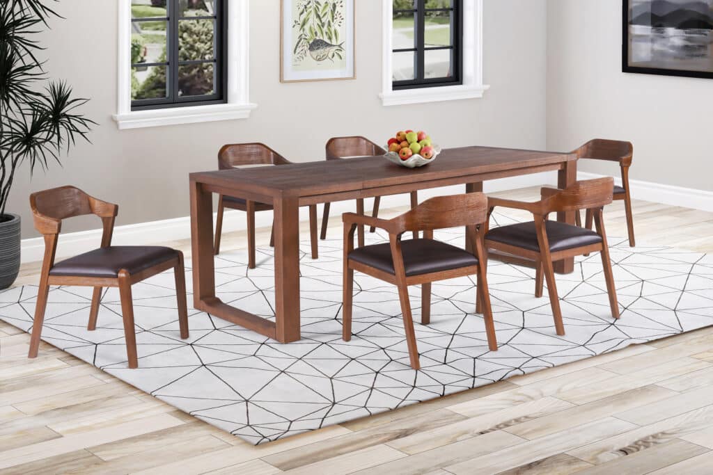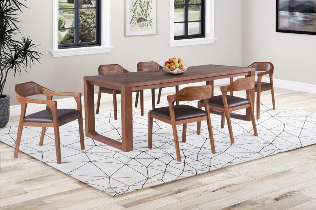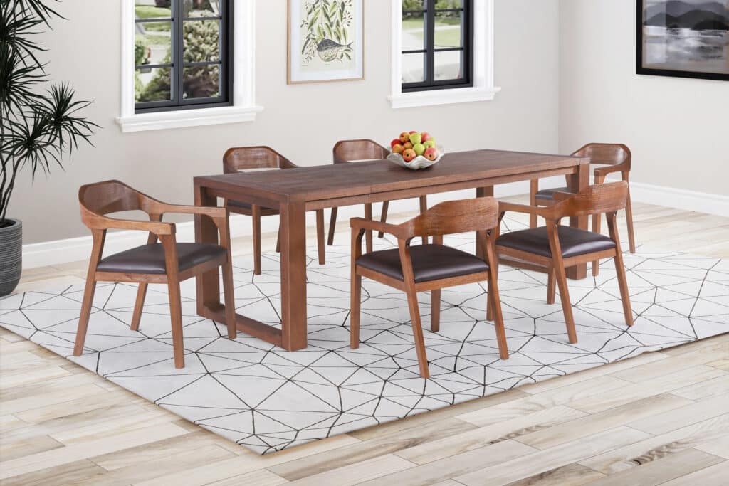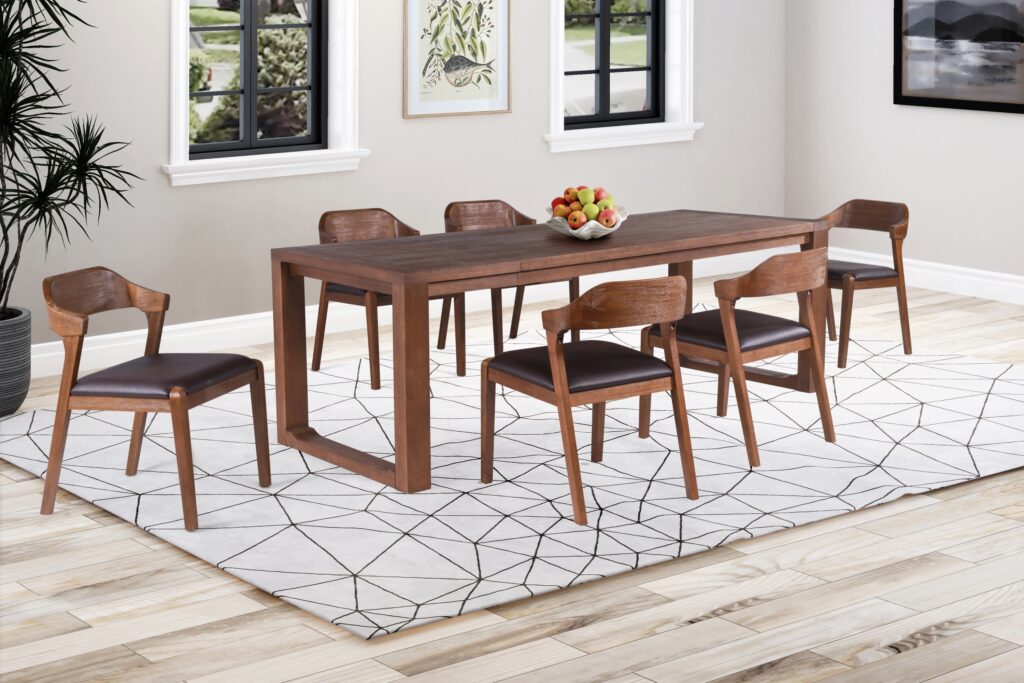 - The dining set includes 1 extension dining table, and 6 dining chairs