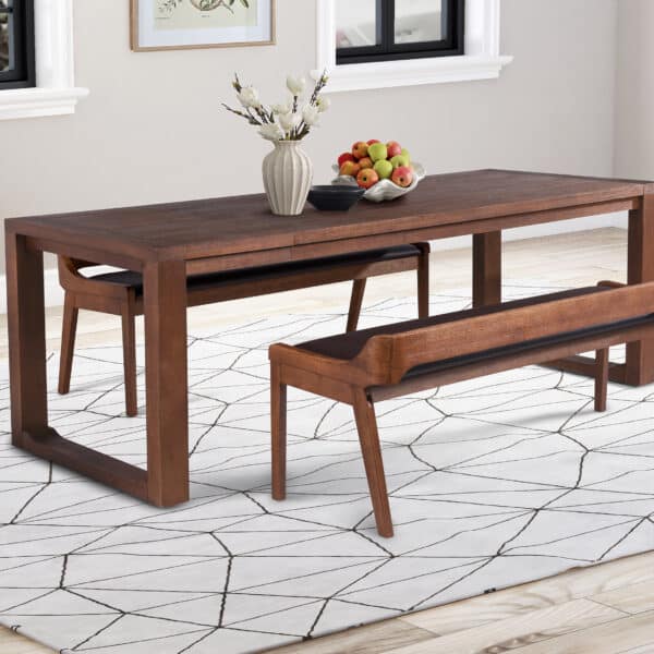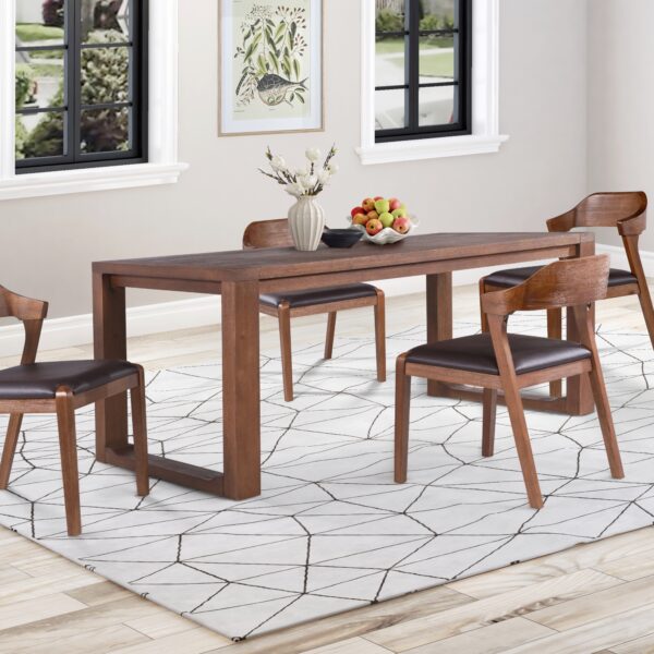 The Rasmus Dining Side Chair’s handsome good looks and comfortable design make it more tempting than ever to linger over meals with friends and family. This dining chair is made from Rubberwood with a Chestnut Wire-Brush Finish. The curving seat back molds to the shape of your body, while the padded seat provides a cushion against the wood frame. The seat is upholstered in faux leather upholstery. The Rasmus Dining Side Chairs comes as a set of 2. For a complete dining set, look to the Rasmus Dining Table and Rasmus Dining Bench. Assembly is easy: all tools and hardware come included for easy setup.