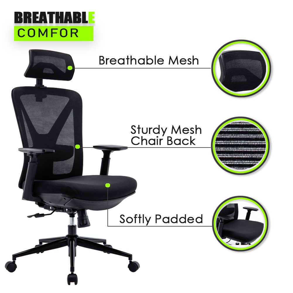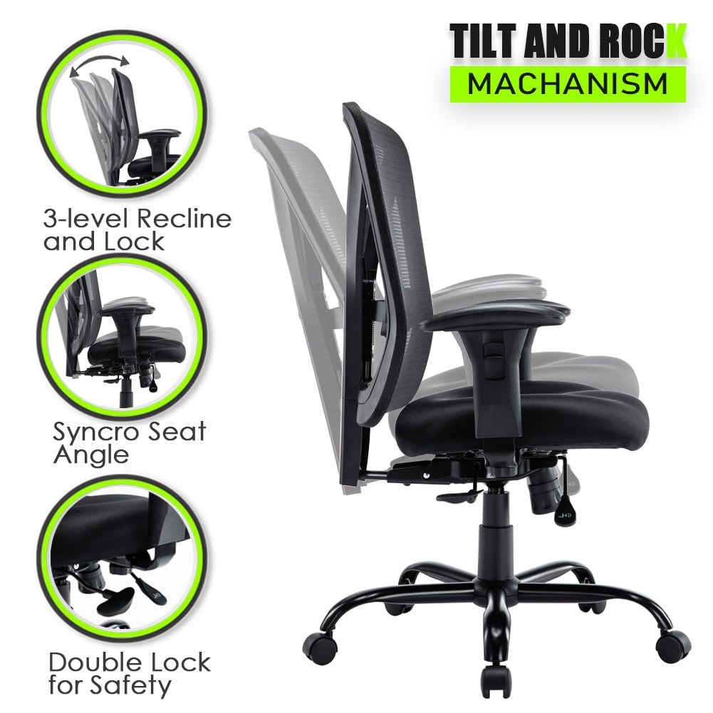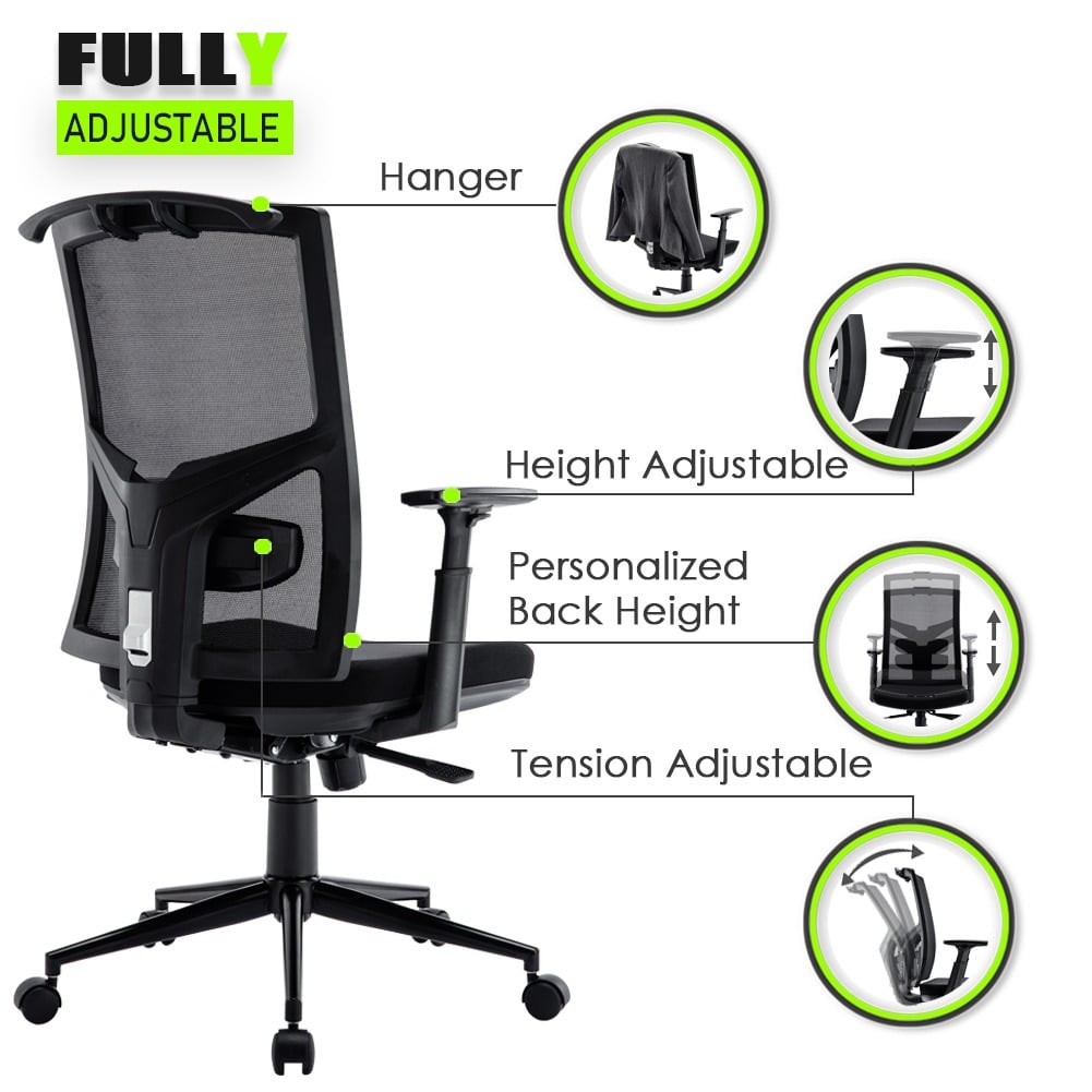 Comes in black color; Mesh back design; Max Capacity: 300 lbs; Available in four different sizes