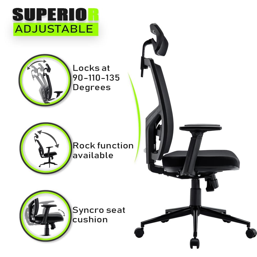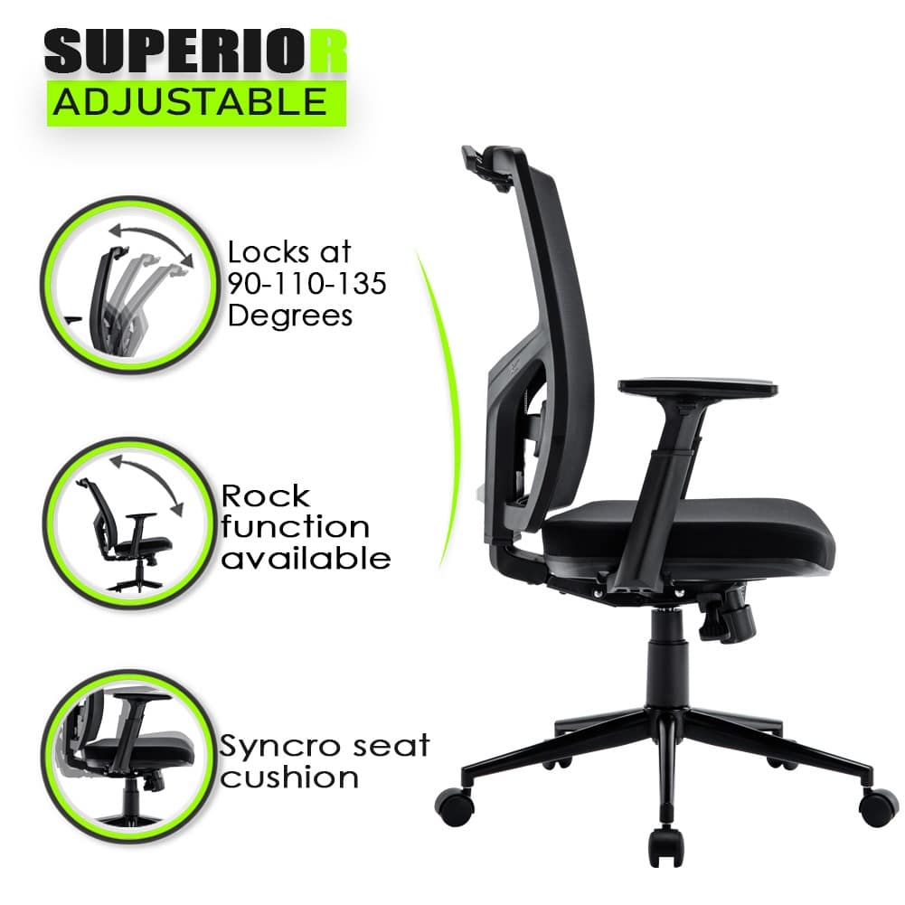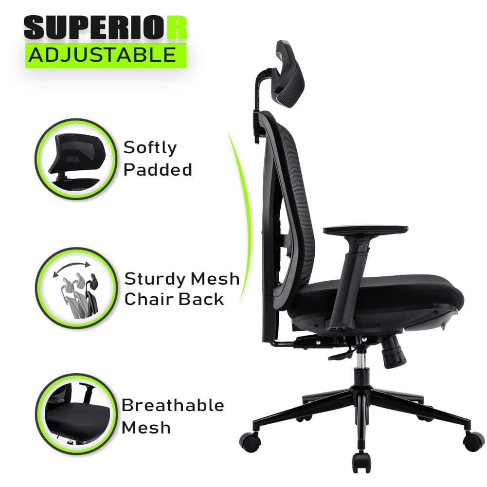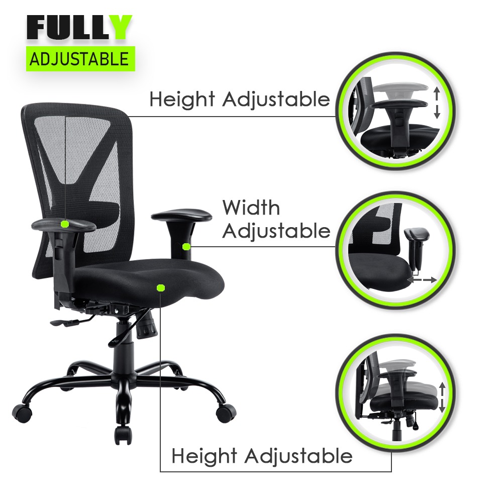 Comes in black color; Mesh back design; Max Capacity: 300 lbs; Available in four different sizes