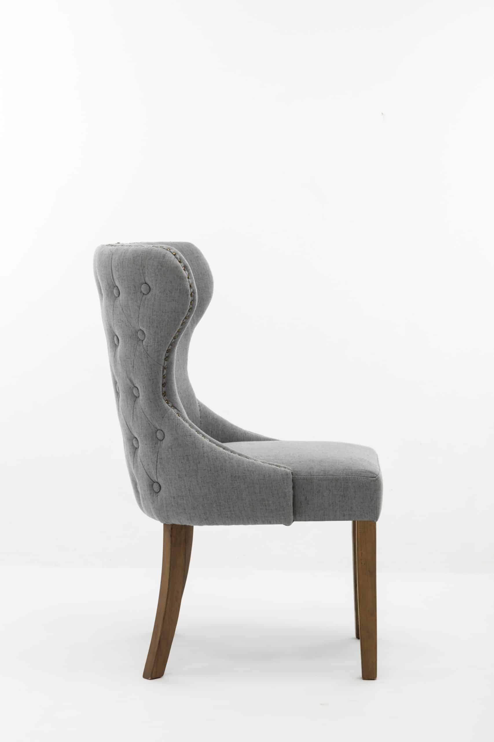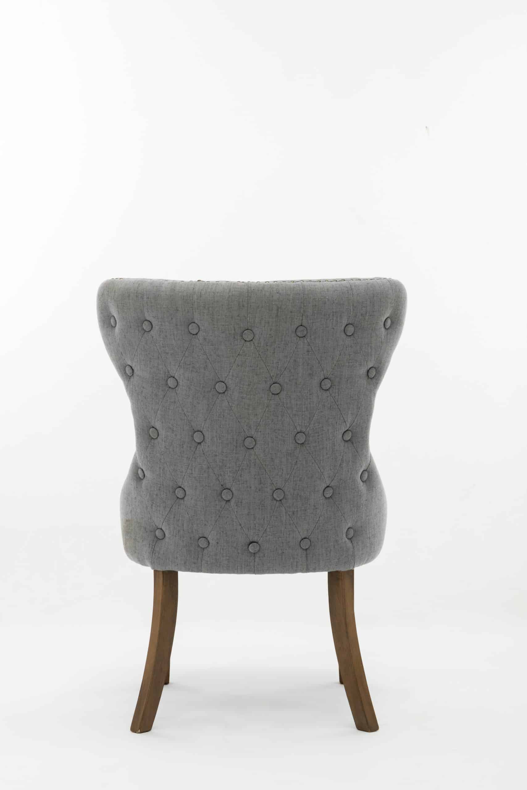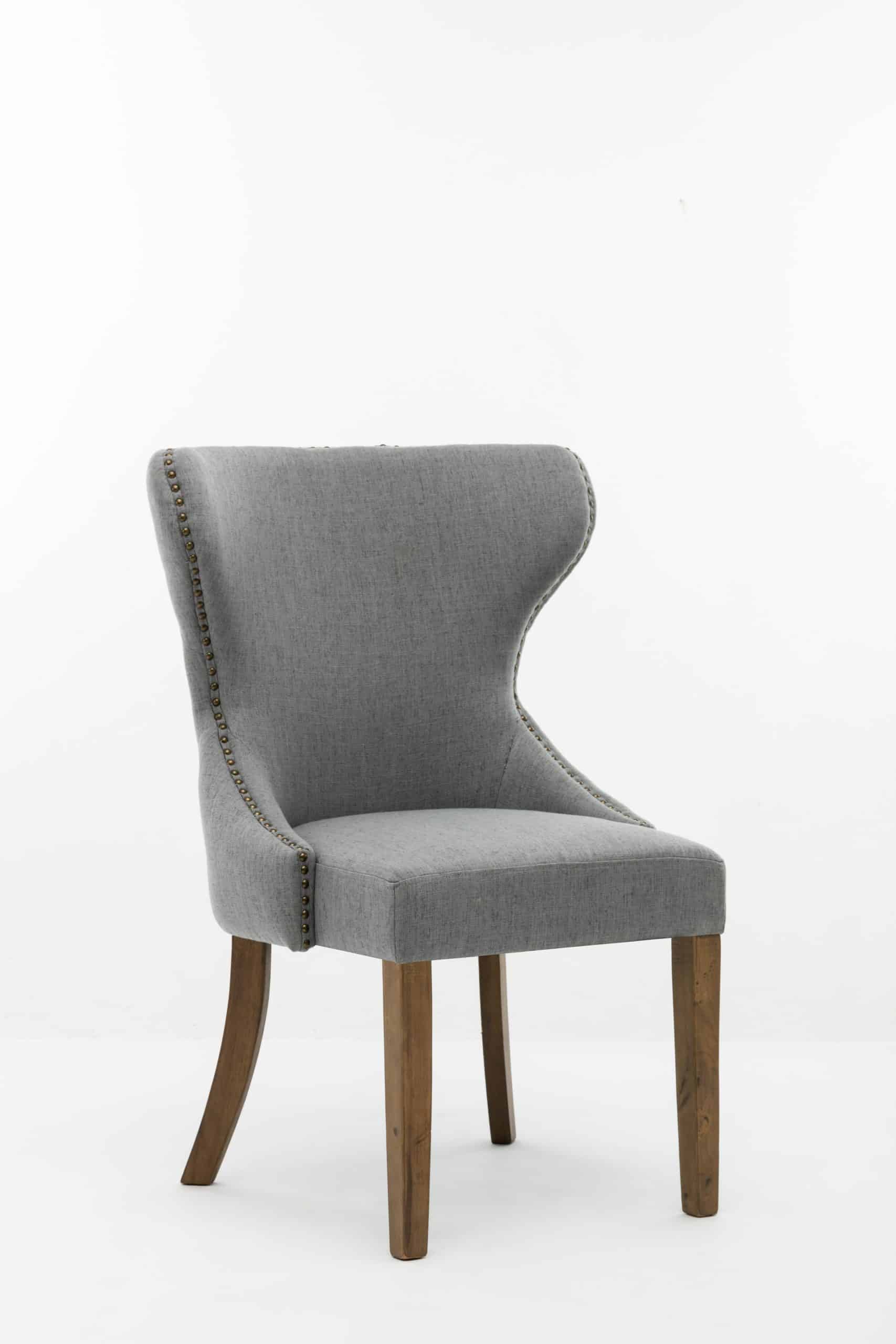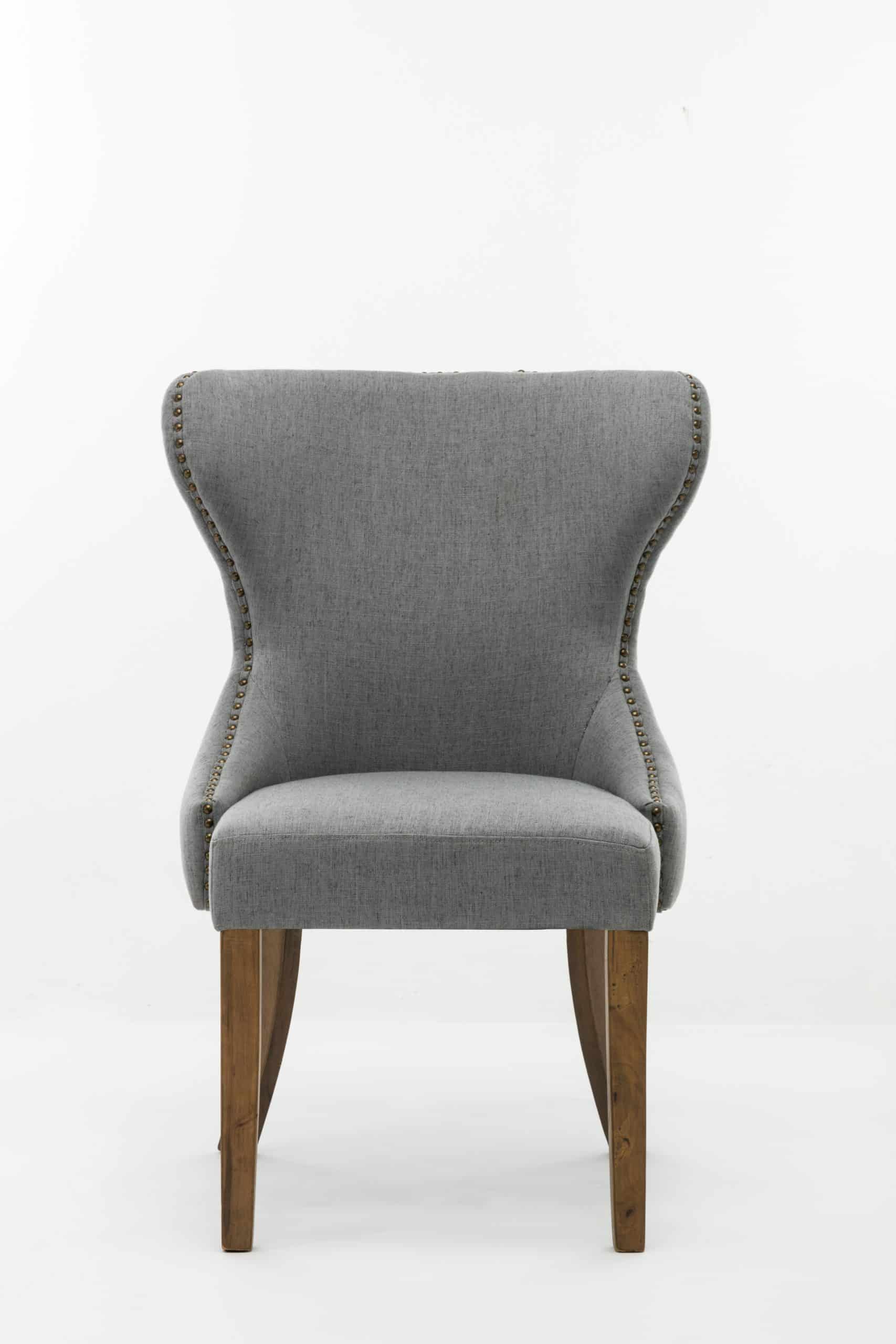 Although the Rema Dining Chair is meant for the dining room, it’s stylish and comfortable enough for everyday use as an accent chair in the living room. The mid-century-inspired wingback design combines a tufted back with nailhead trim and flared brown legs.