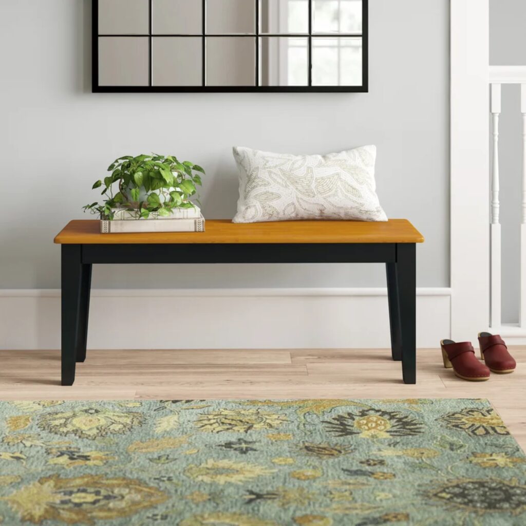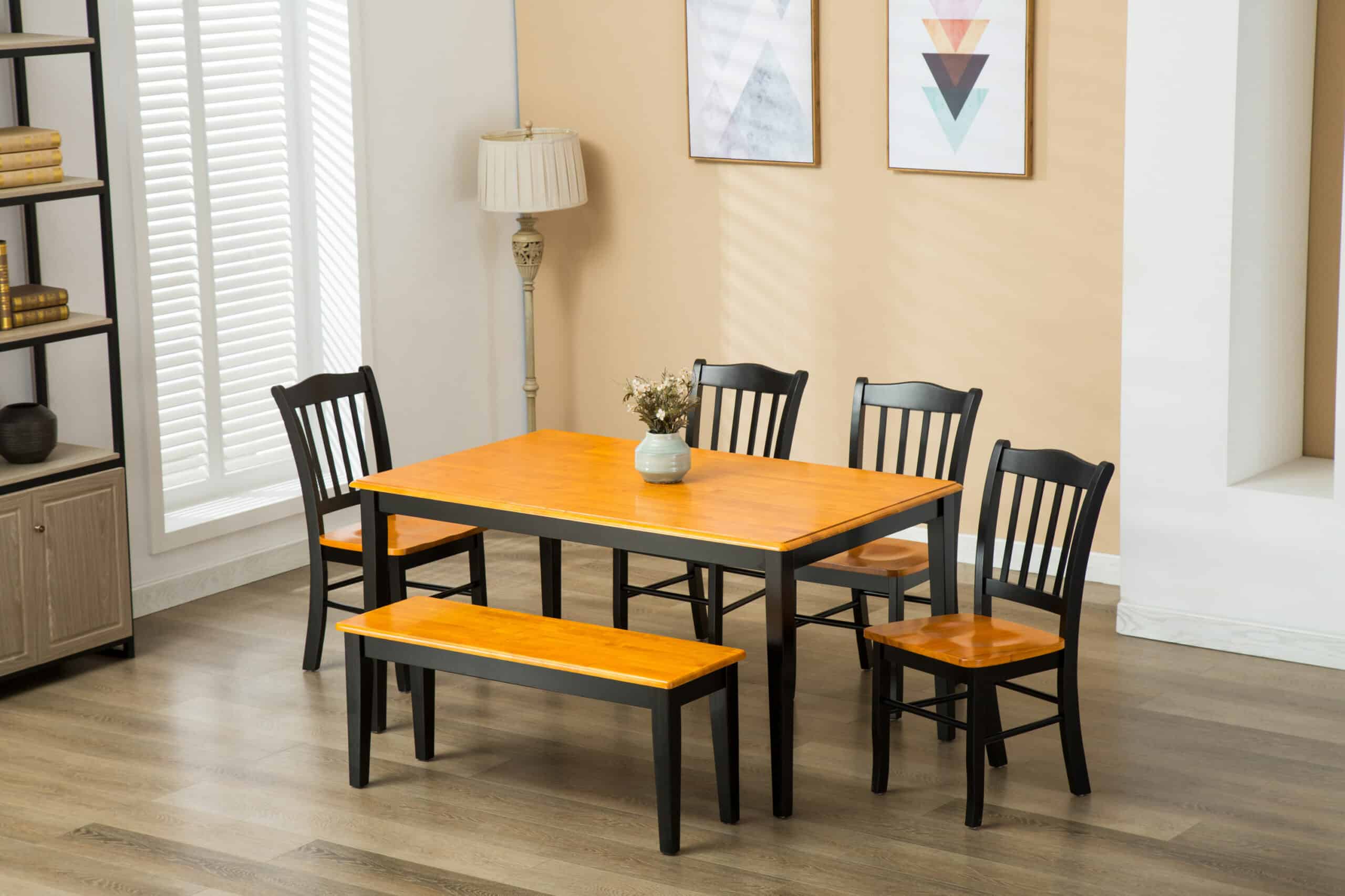 Outfit your dining room, entryway, or mudroom with the Shaker Dining Bench from Boraam. Quality craftsmanship, elegant simplicity, and durable design are what Shaker style is all about, and this bench has those in spades. This Shaker dining bench is crafted entirely from rubberwood, an eco-friendly variety of wood harvested from sustainable sources. It’s also known for the beauty of its wood grain. Choose from three different finish options: Walnut, Oak, or the two-toned Black & Oak. To create a complete dining area in the Shaker style, pair this bench with the matching Shaker Chairs and Shaker Table from Boraam (available sold separately).
