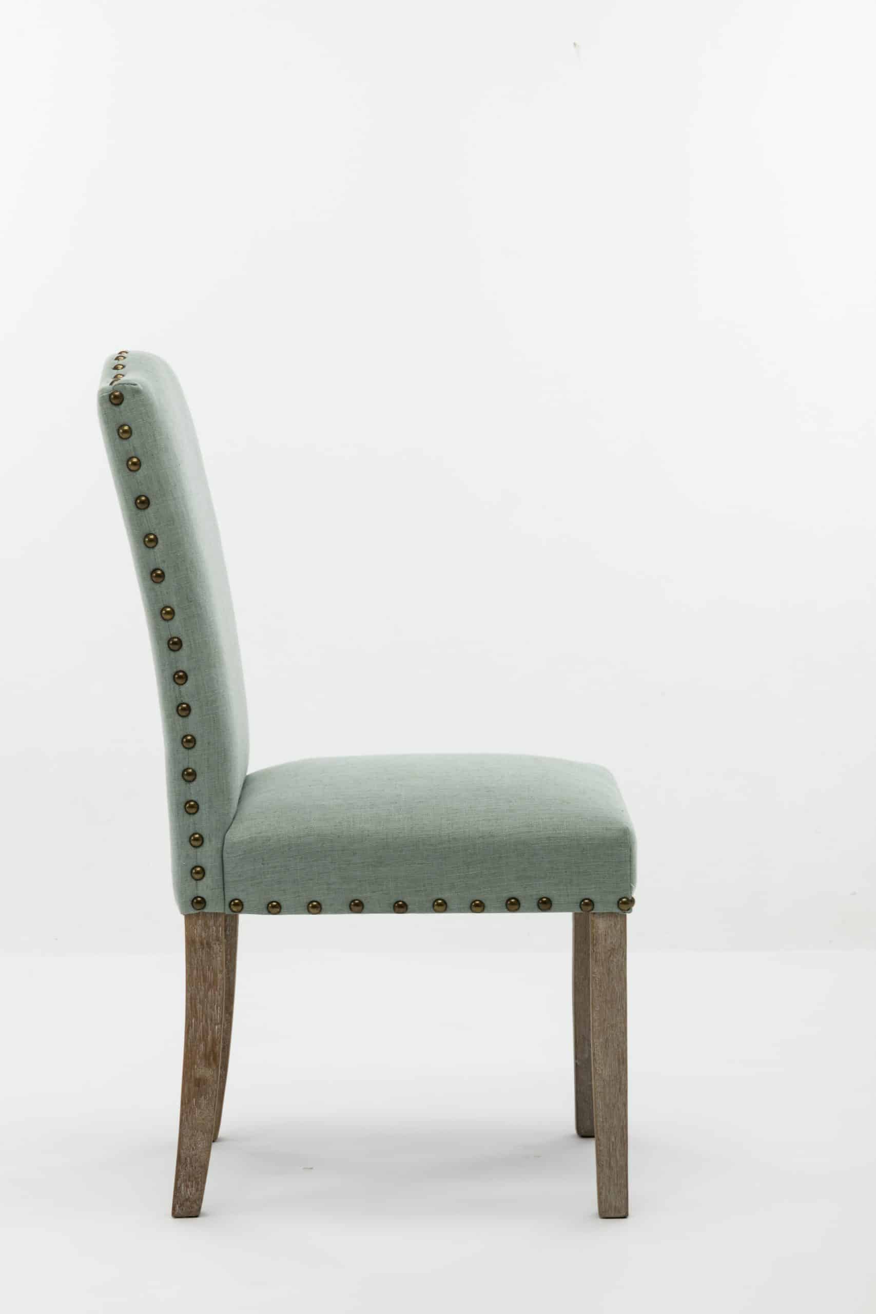 The Shawna Dining Chair is the solution to blending Traditional style with a modern accent. The piece is an ideal option for any dining room. The neutral mint color and weathered, light brown legs make this chair a perfect match for a variety of dining tables and will leave your guests in awe. Comes in a set of 2. *Product weight is for a single chair*