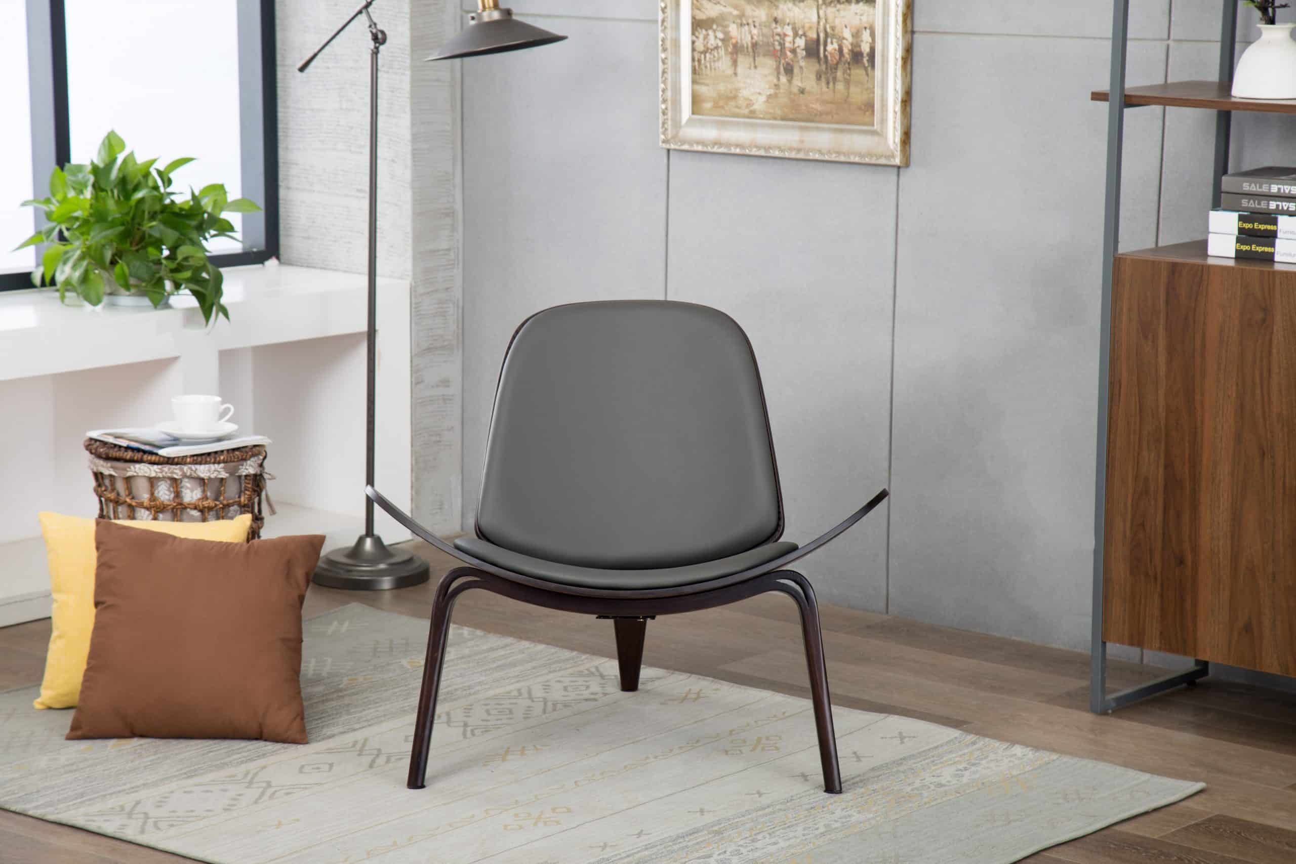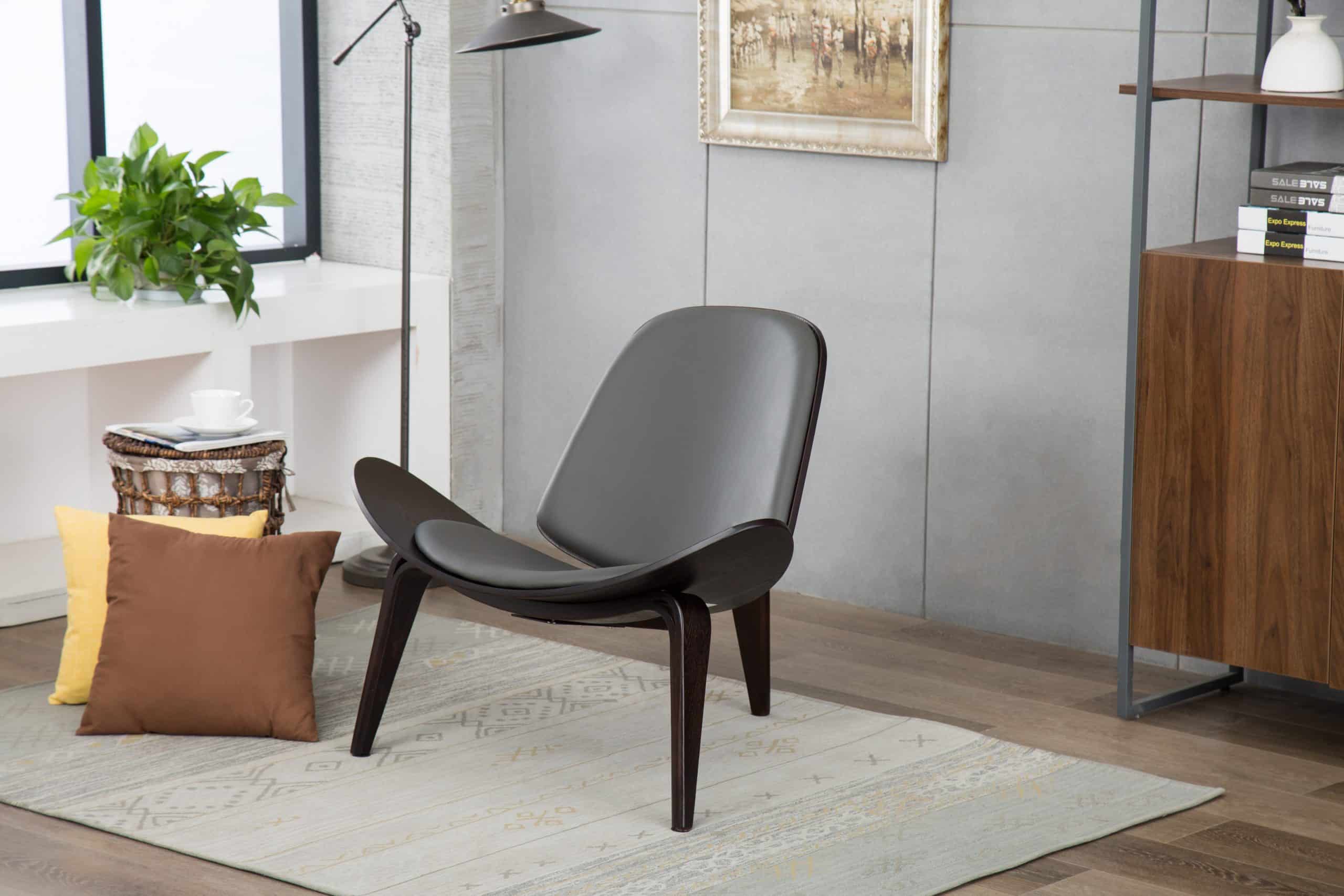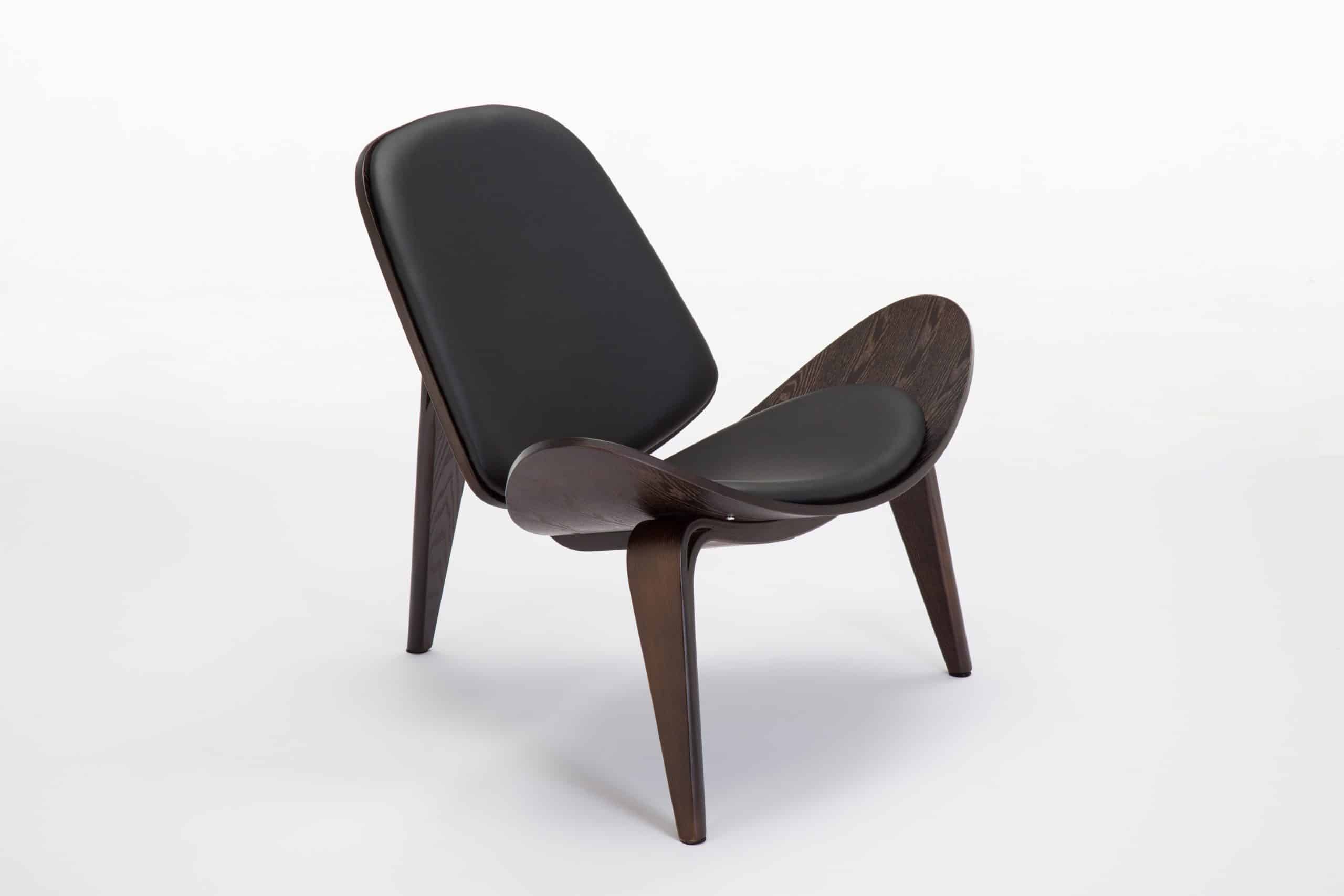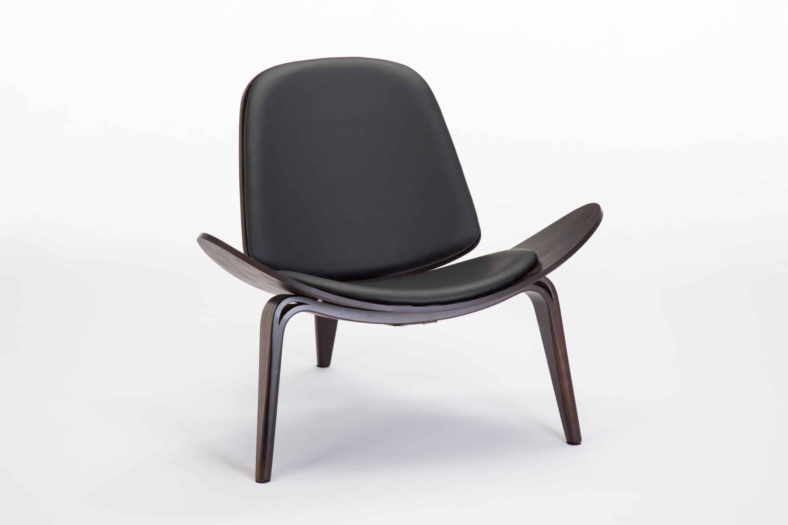 Retro style is back – and it looks better than ever in the Shell Side Chair. This vintage-inspired chair features tapered legs and curved seating for a sophisticated silhouette that is sure to be a winner with the guests. Its floating wingspan is roughly 3 feet, creating an impressive presence in any room. Clever craftsmanship ensures that this three-legged chair is even more stable than the traditional variety. The combination of the rich brown wood and the dark faux leather creates a warm, masculine edge. Get the designer looks without the designer price tag with the Shell Side Chair.