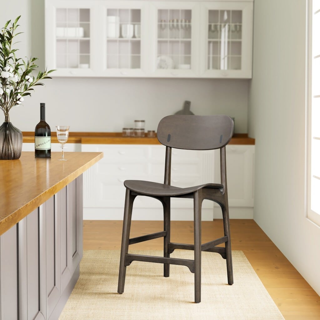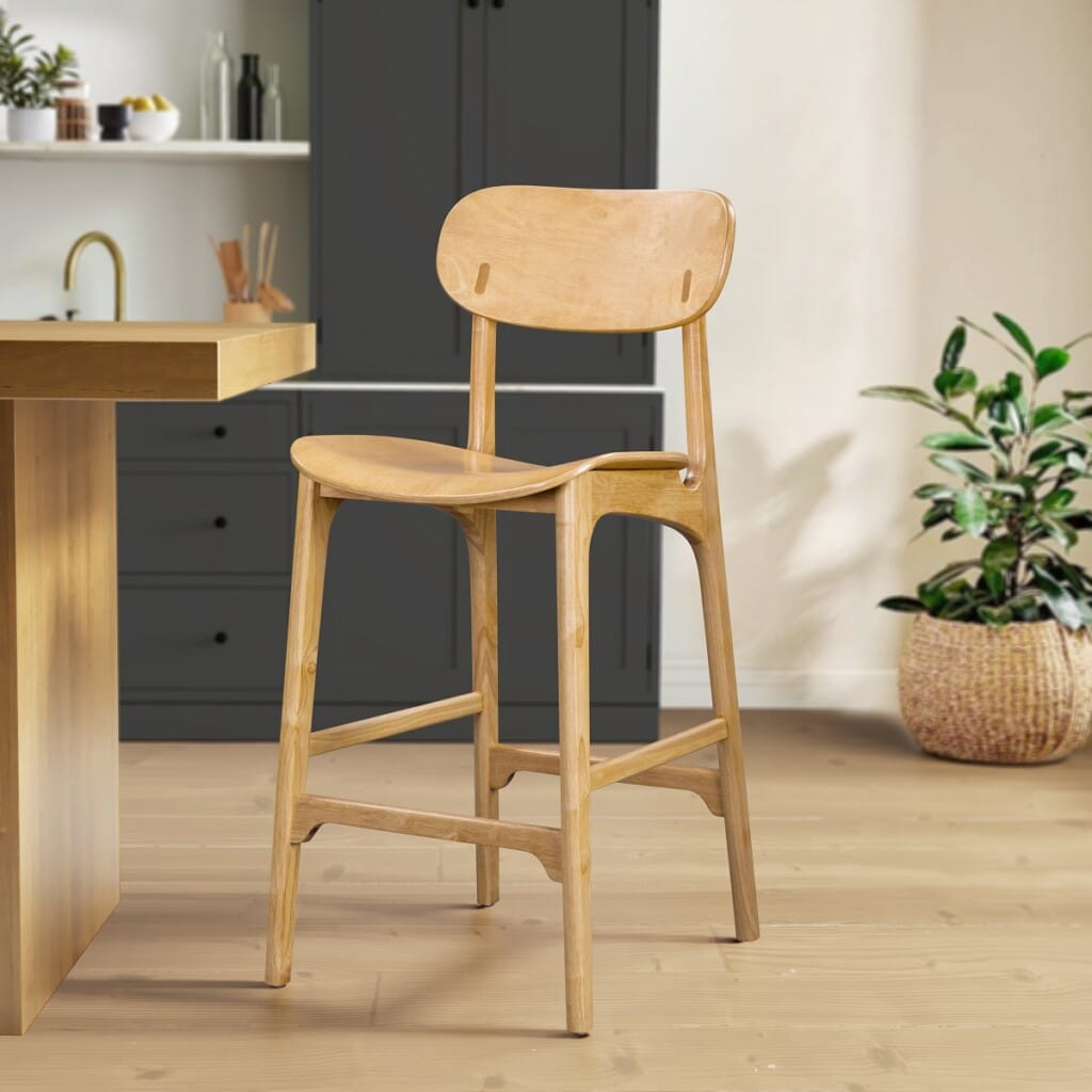 The Boraam Solvang bar stool is a great addition to any home. The mid-century modern design is expressed through the clean lines, curved seat, and splayed legs. The open back gives these bar stools an airy look and feel that will transpire to all other furniture in your home. The Solvang bar stools are constructed of rubberwood, and plywood seat and back ensuring long-term durability. The design of the bar stools prioritizes comfort, featuring rounded edges, a wide seating depth, and a curved backrest that conforms to the natural curve of your spine. Clearly visible natural textures, make the Solvang bar stools a perfect addition to your home.