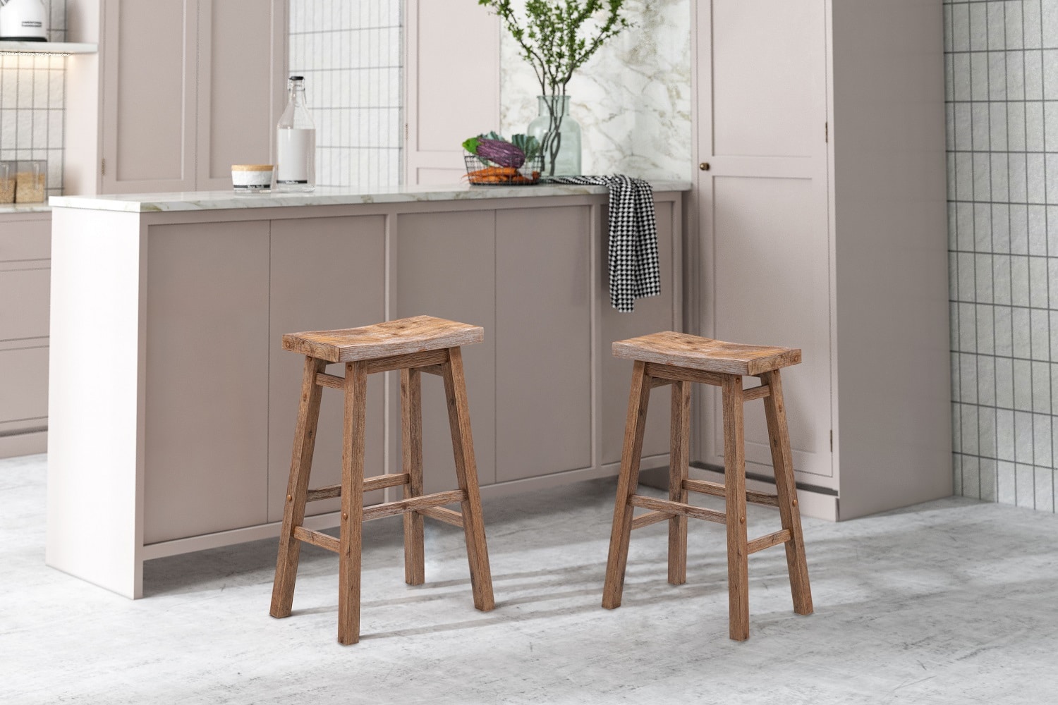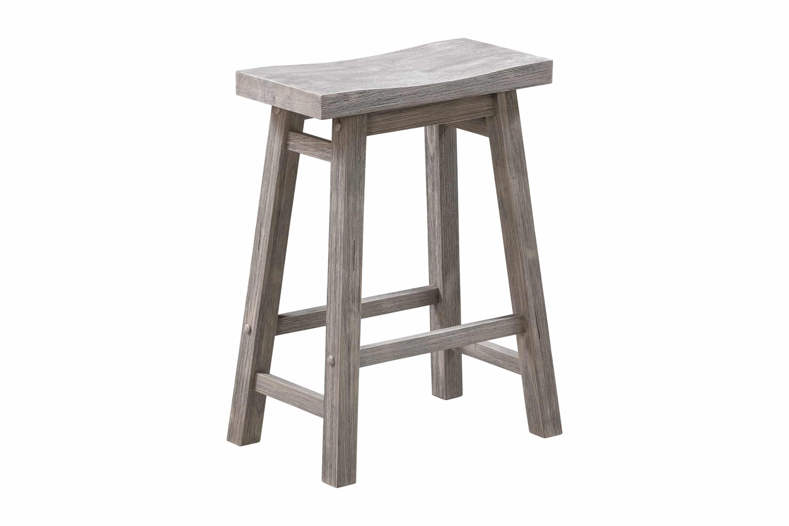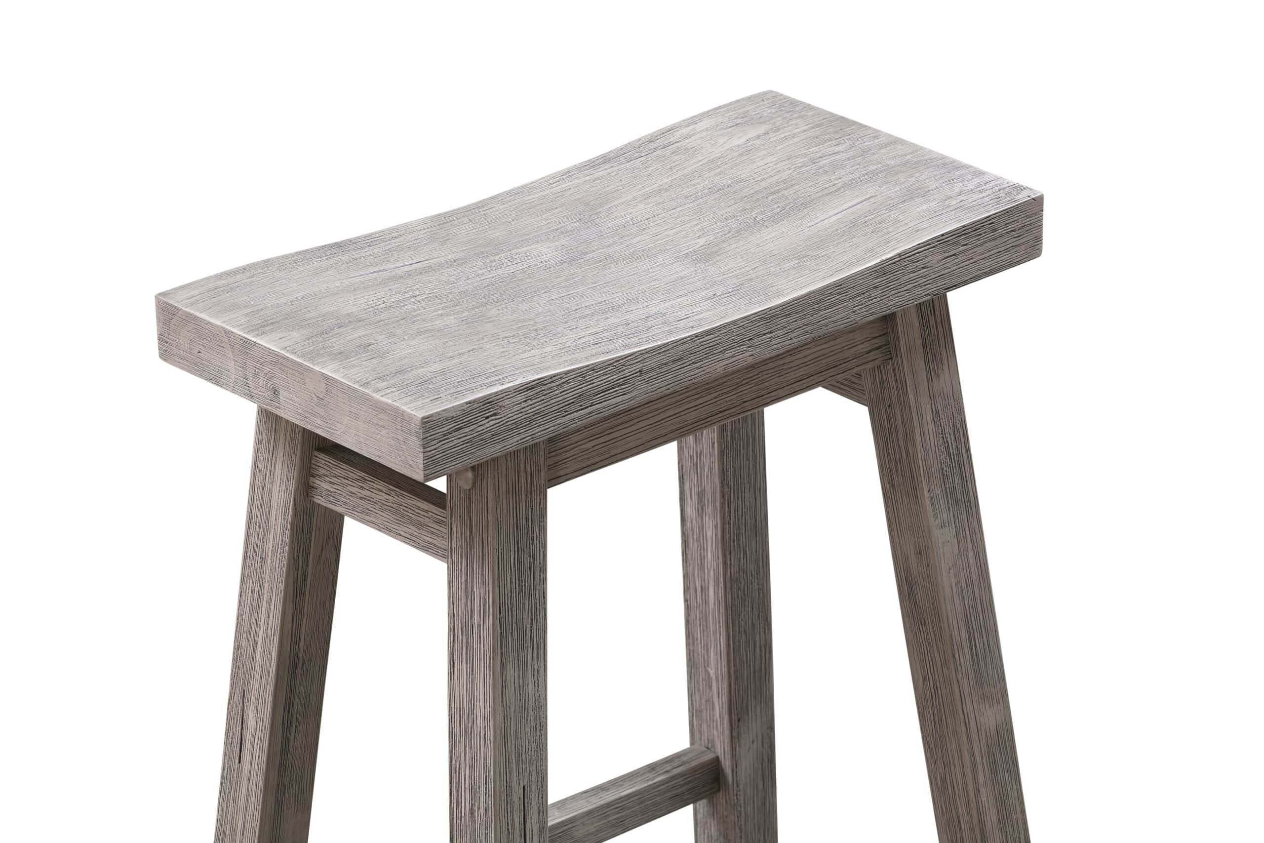 Bring attractive rustic style to your kitchen island with the Sonoma Saddle Counter or Bar Height Wood Stools. Our Sonoma saddle stools are made from solid acacia wood. This environmentally friendly wood is prized for its hardiness and attractive grain. We use a multistep wire-brush finish which enhances the natural beauty of the wood even more. It’s built for long-lasting stability and comfort, thanks to a wide, curved saddle seat and built-in footrests. Choose from our selection of available finish options: Barnwood, Chestnut, and Storm Gray. Seat height available in counter or bar height options.
