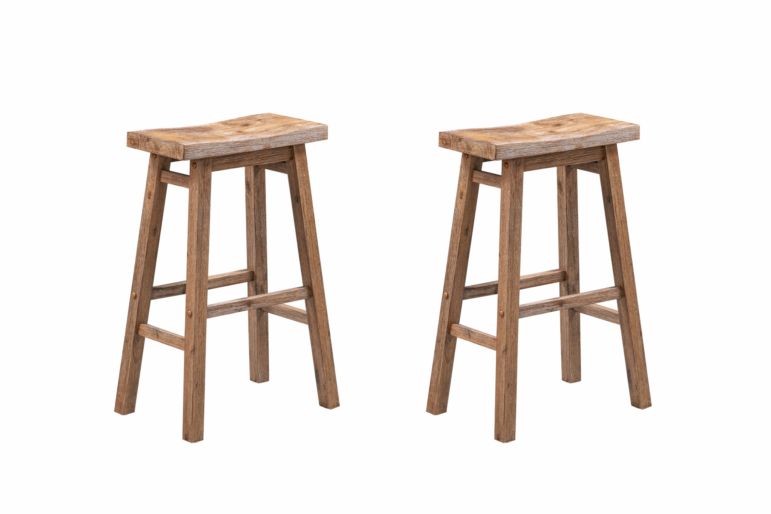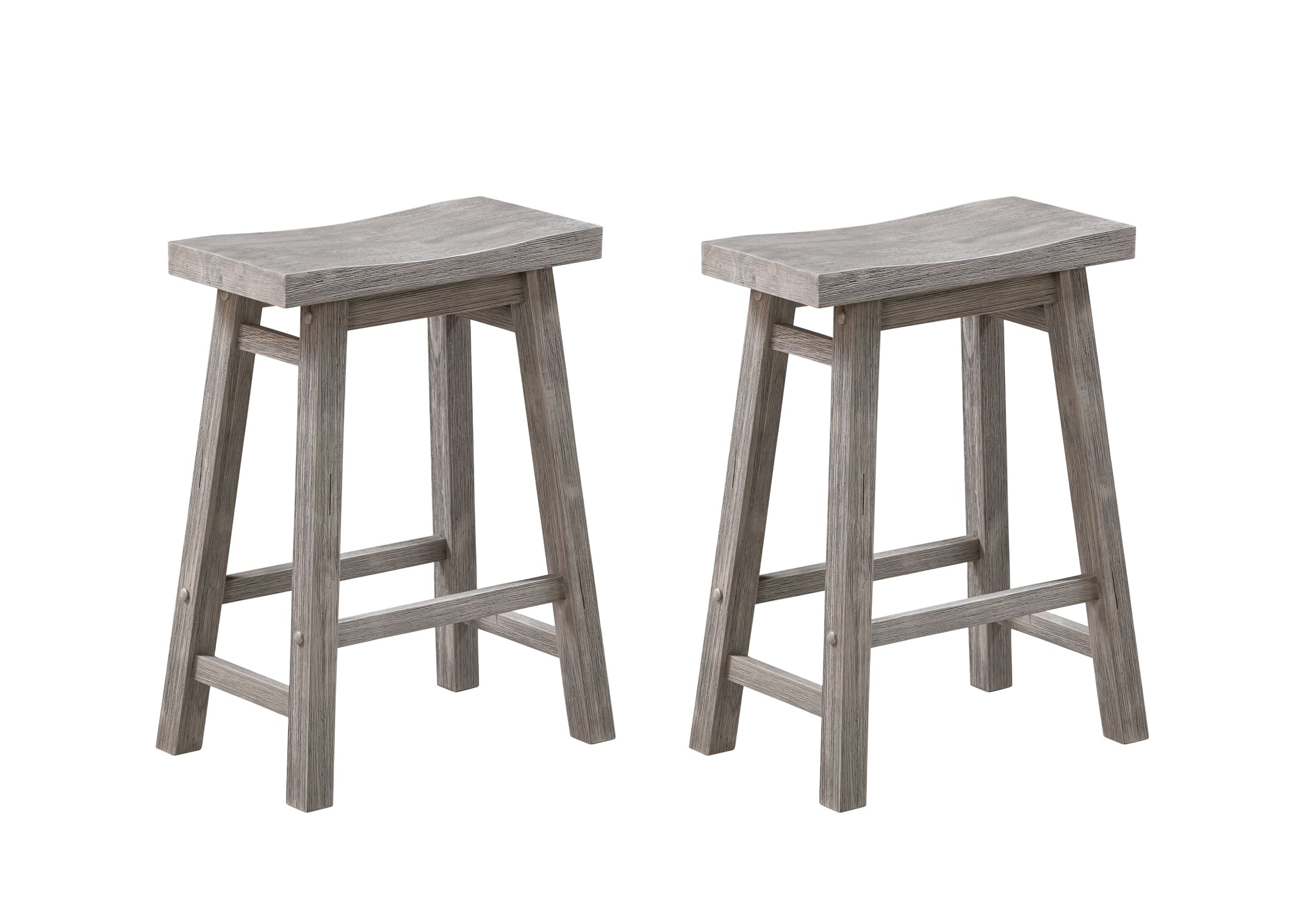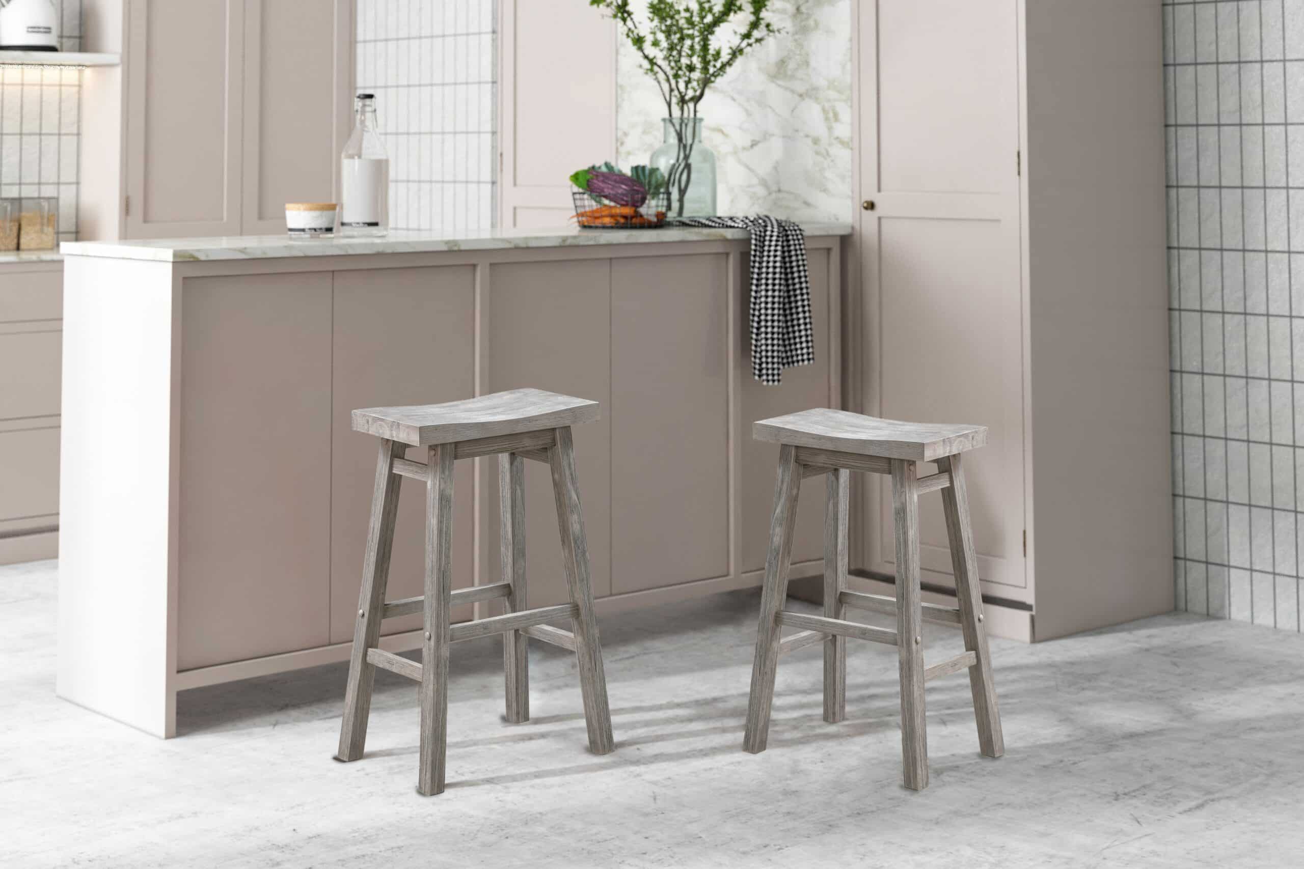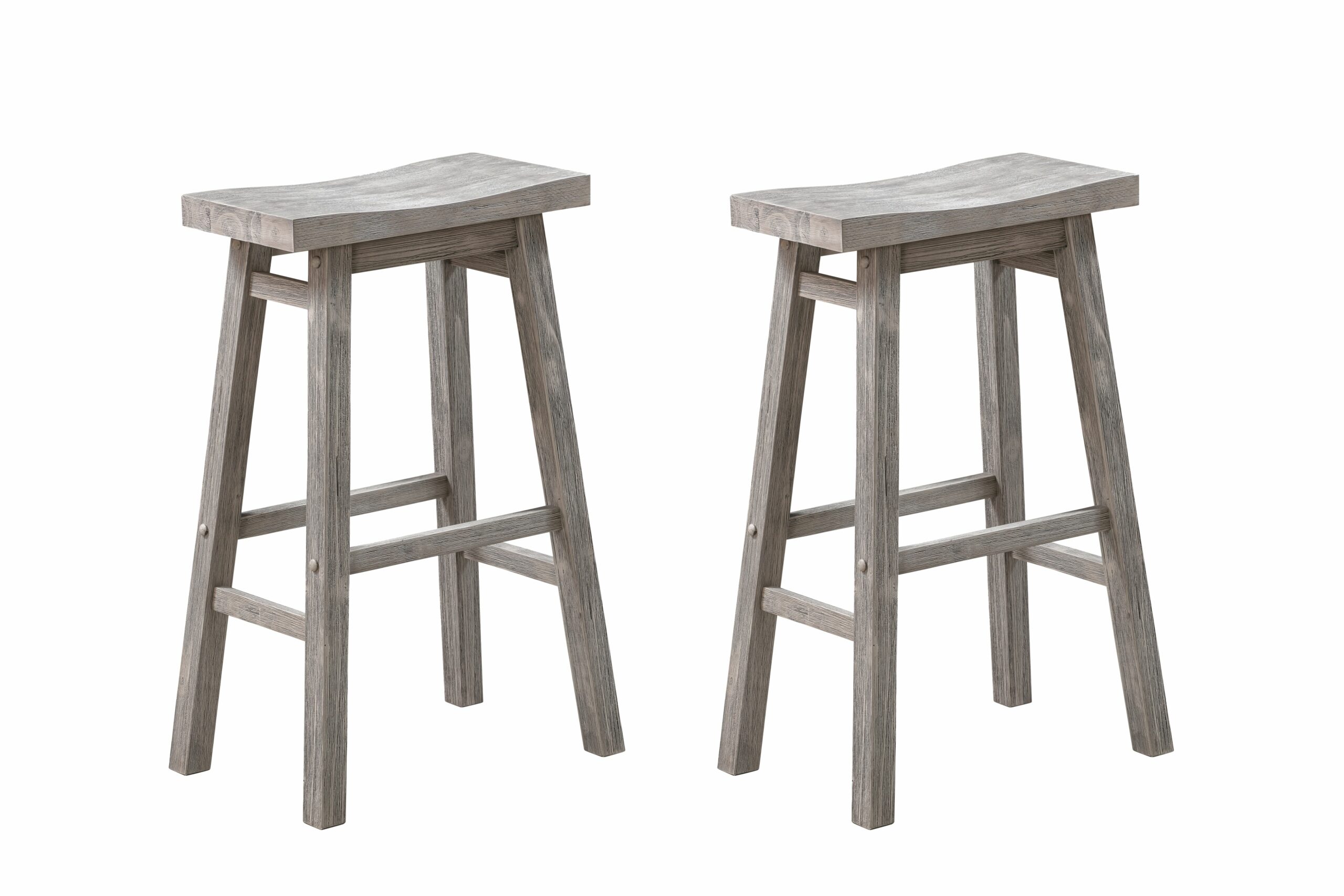 Bring attractive rustic style to your kitchen island with the Sonoma Saddle Counter or Bar Stools, set of 2. Our Sonoma saddle stools are made from solid acacia wood. This environmentally friendly wood is prized for its hardiness and attractive grain. We use a multistep wire-brush finish which enhances the natural beauty of the wood even more. It’s built for long-lasting stability and comfort, thanks to a wide, curved saddle seat and built-in footrests. Choose from our selection of available finish options: Barnwood, Chestnut, and Storm Gray. Seat height available in counter (24 inch) and bar (29 inch). All options are available as a set of 2.