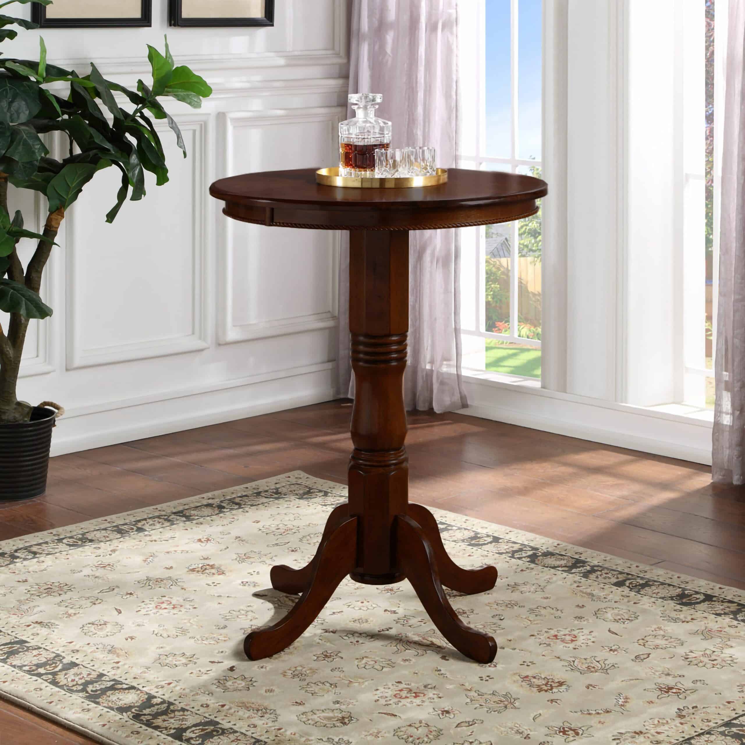 The Spectator Pub Table is a smart addition to a game room, den, or rec area. Its simple yet elegant design pairs easily with any style decor, from traditional to farmhouse and beyond. The intricately carved apron ends in three empire legs which offer additional stability on your floors. This wooden pub table pairs perfectly with Boraam’s wide selection of 29-inch barstools. The Spectator Pub Table is available in three finishes: Cherry, Cappuccino, and Fruitwood. Choose your favorite at checkout.