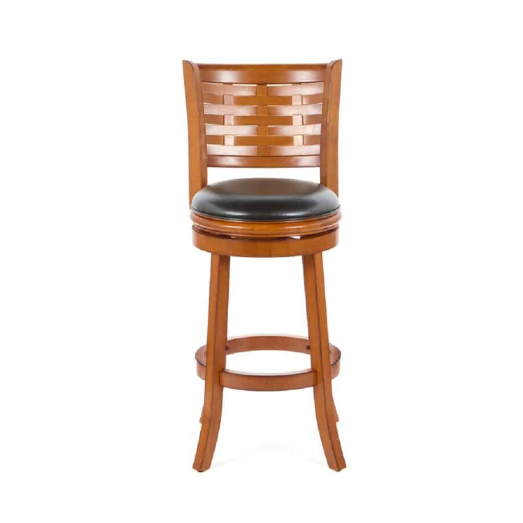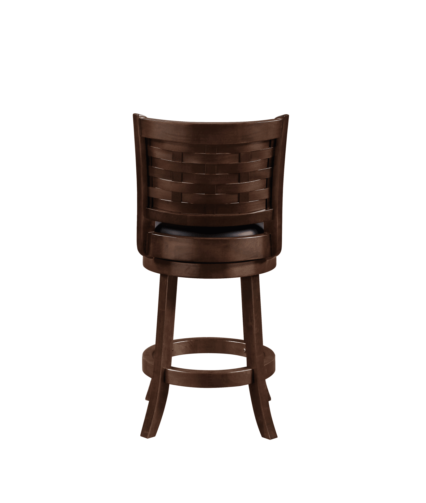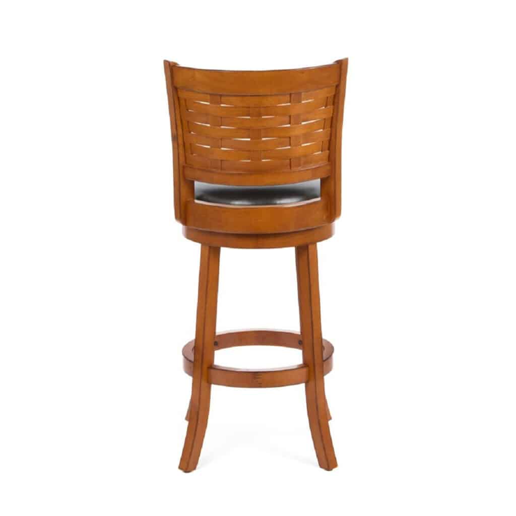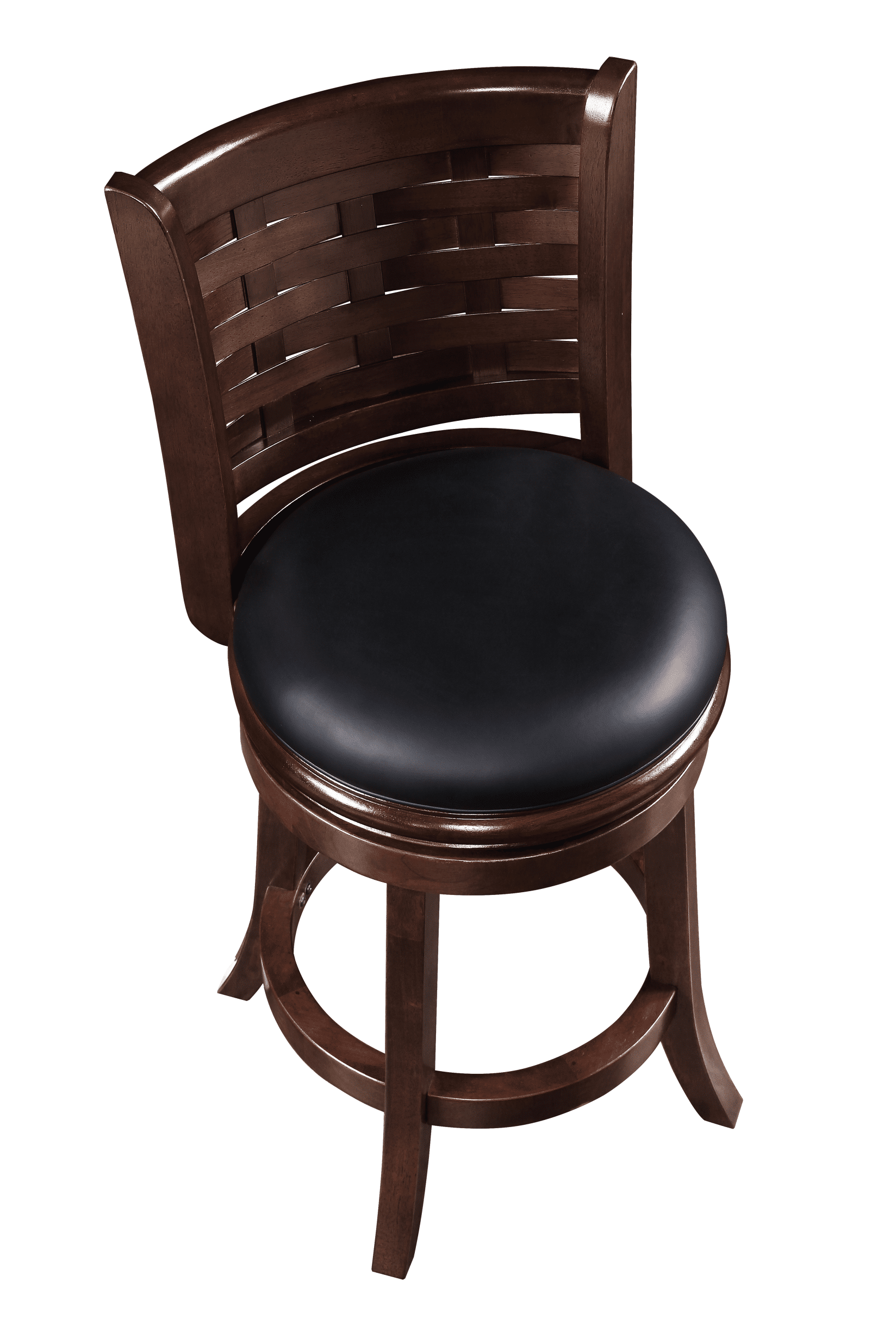 Seek out a style update with Boraam’s Sumatra Swivel Bar Stool. Offering a unique take on traditional design, this stool features a woven wood backrest crafted from rubberwood. The wood frame pairs with black faux leather upholstery (easy to wipe clean in case of spills or crumbs). A full 360-degree swivel offers you a full range of motion, while the steel ball-bearing swivel plate provides increased durability. Performance tested by leading testing facilities for your peace of mind. The Sumatra’s effortless style looks at home in any kitchen, basement, game room, or home bar. Customize it even further by choosing from the available color and height options.
