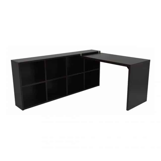 The Techny Collection Matisse and Claude Desk Combo blends useful storage with flexible productivity. Double V-cut method used when veneering provides smooth rounded edges and prevents premature wear. Ready To Assemble construction (RTA): all tools are included making assembly easy. Camlock construction means screw holes are not visible once assembled. Two people can sit at the workstation; one on each side. Must attach to bookcase or shelf in order to function properly.