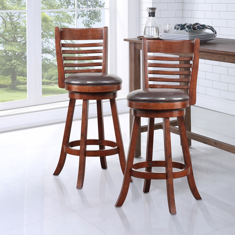 Tall, dark, and handsome, the Tierra Swivel Stool Set of 2 brings classic craftsmanship and traditional good looks to your home. This ladderback swivel stool also comes in both counter and bar height – simply choose the height that works for your home bar, den, or eat-in kitchen area!