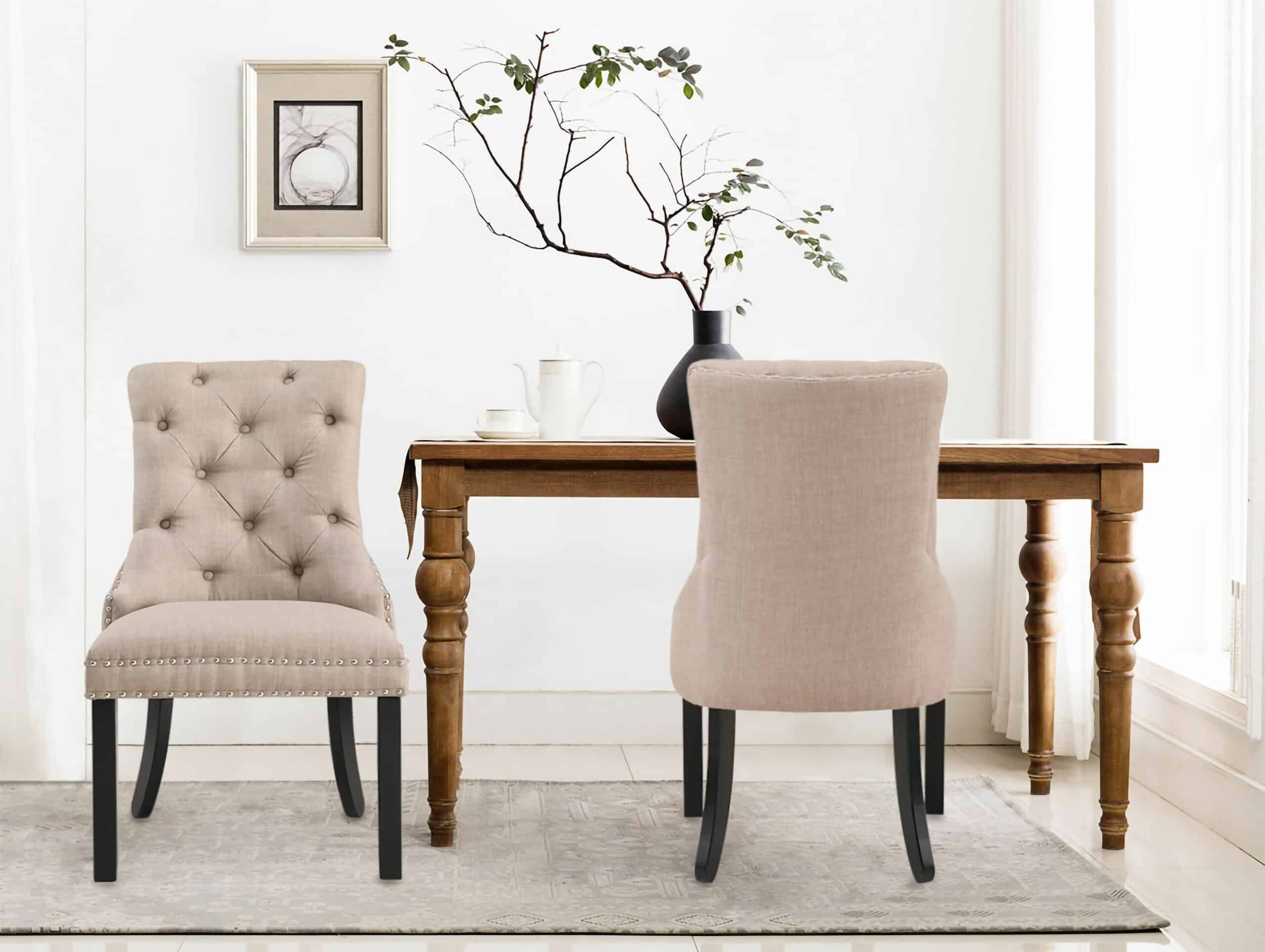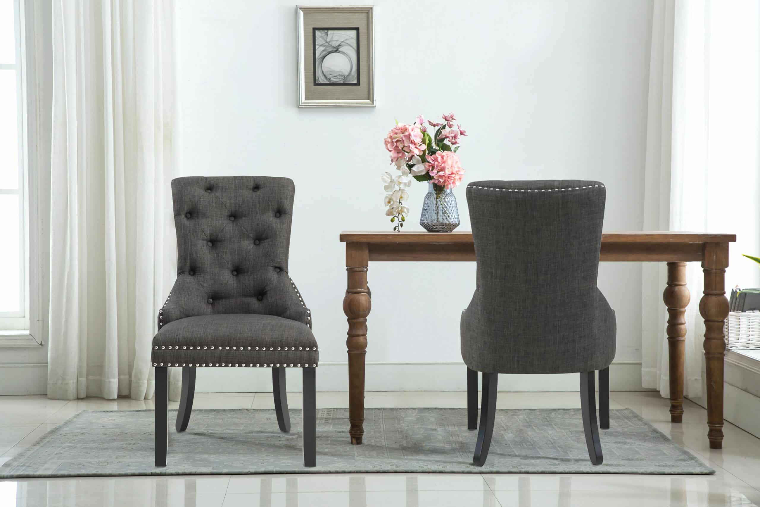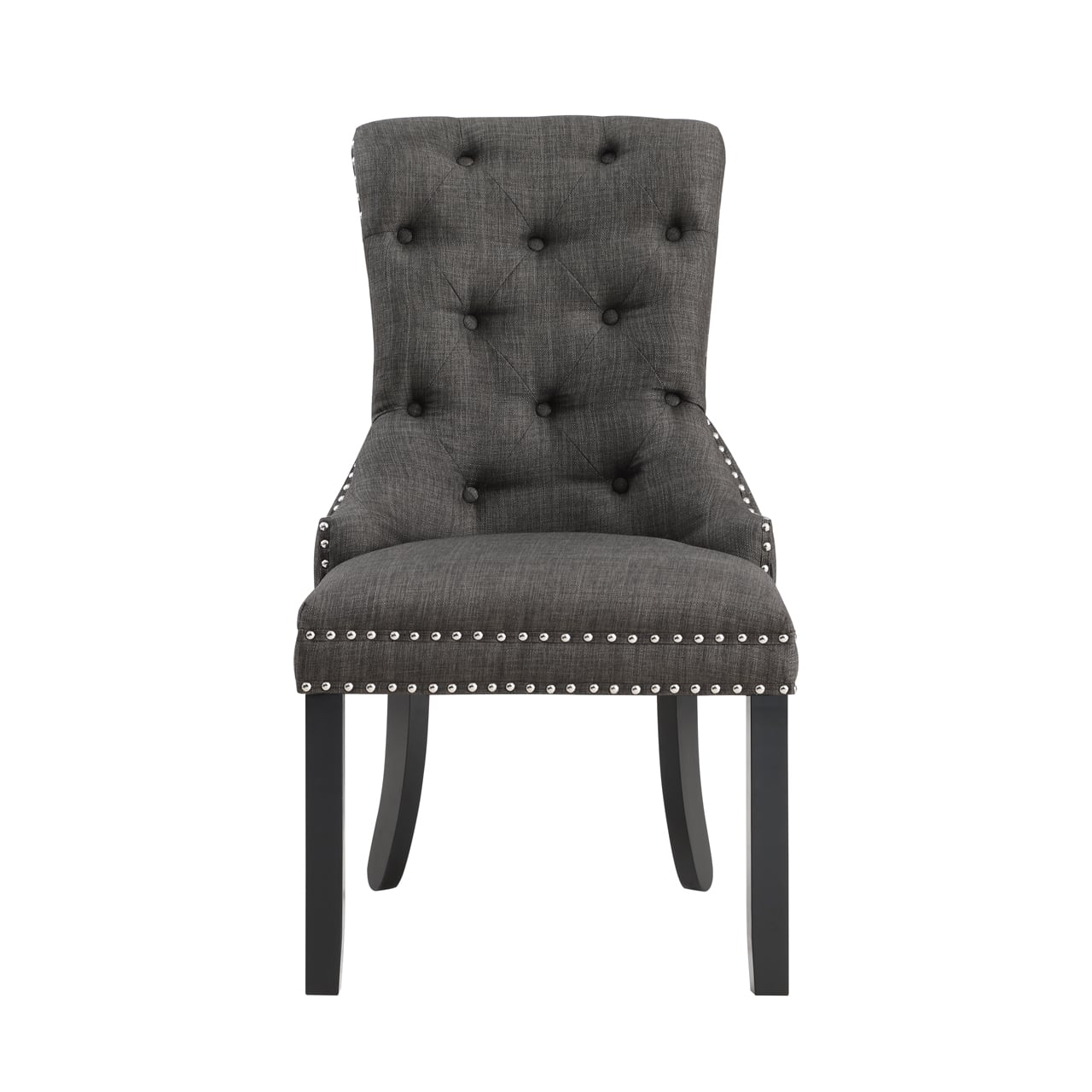 You can’t go wrong with the Tufted Dining Chair at your table. Upholstered and lightly padded, this chair creates a cozy and inviting atmosphere for intimate family meals and larger social gatherings. Thanks to the comfortable design of each chair, guests will linger over their last bite. Chairs feature decorative button tufting and nailhead trim. Choose from Beige or Dark Gray color options.