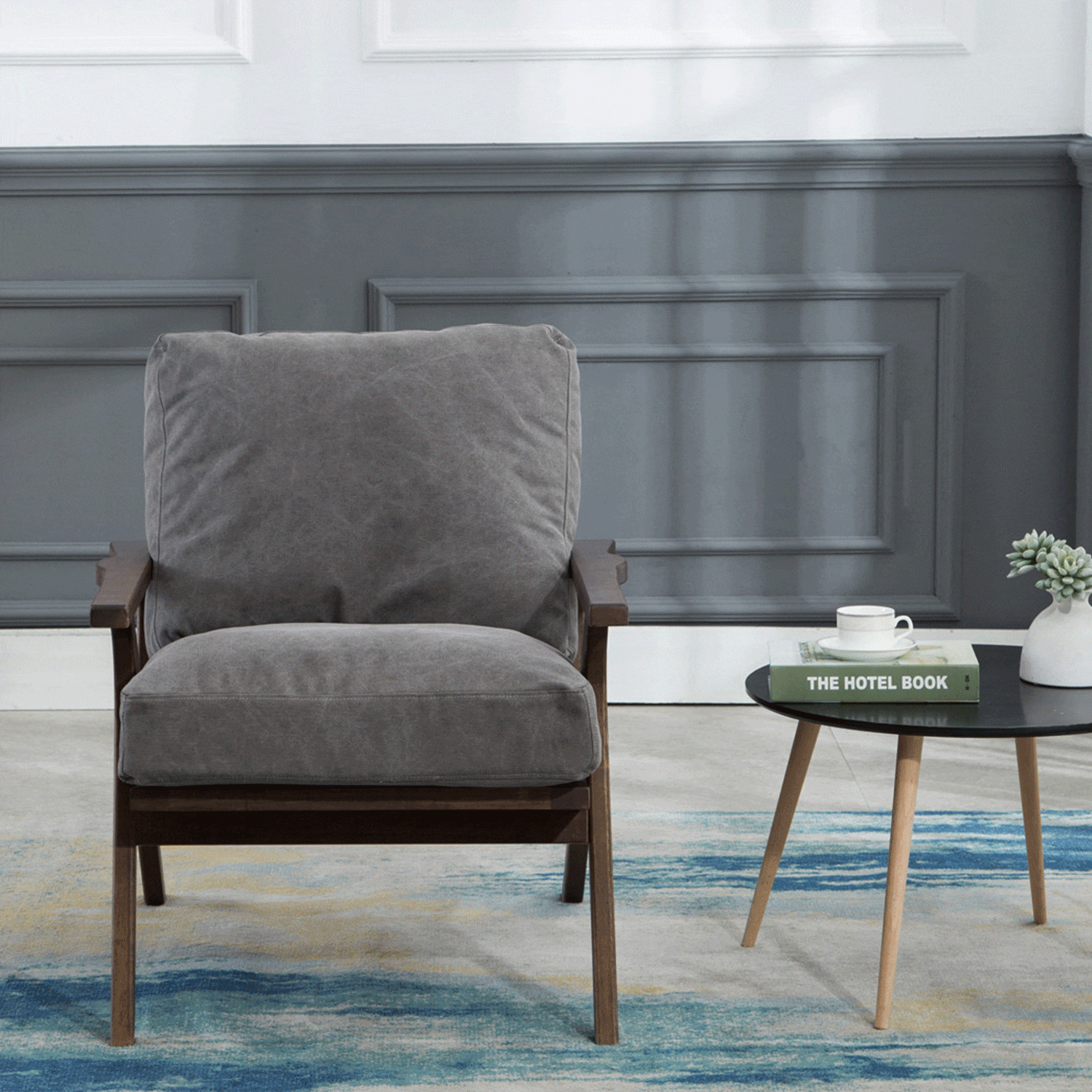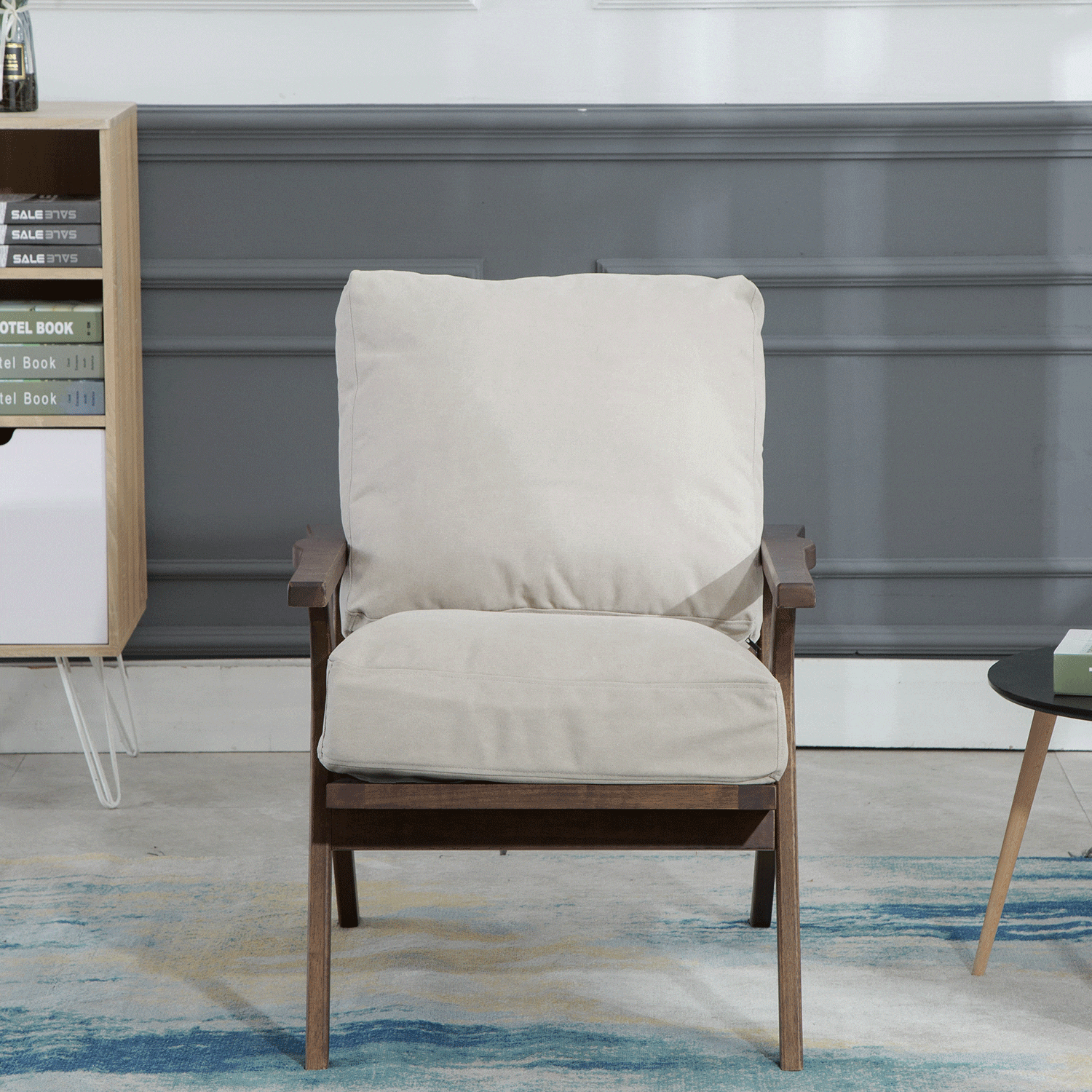 - Constructed with rubber wood, PU sponge, and polyester